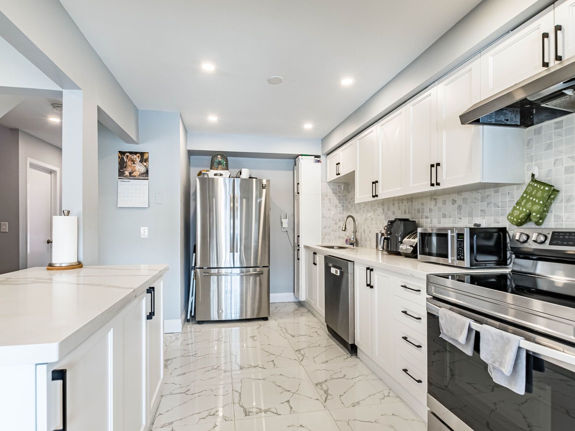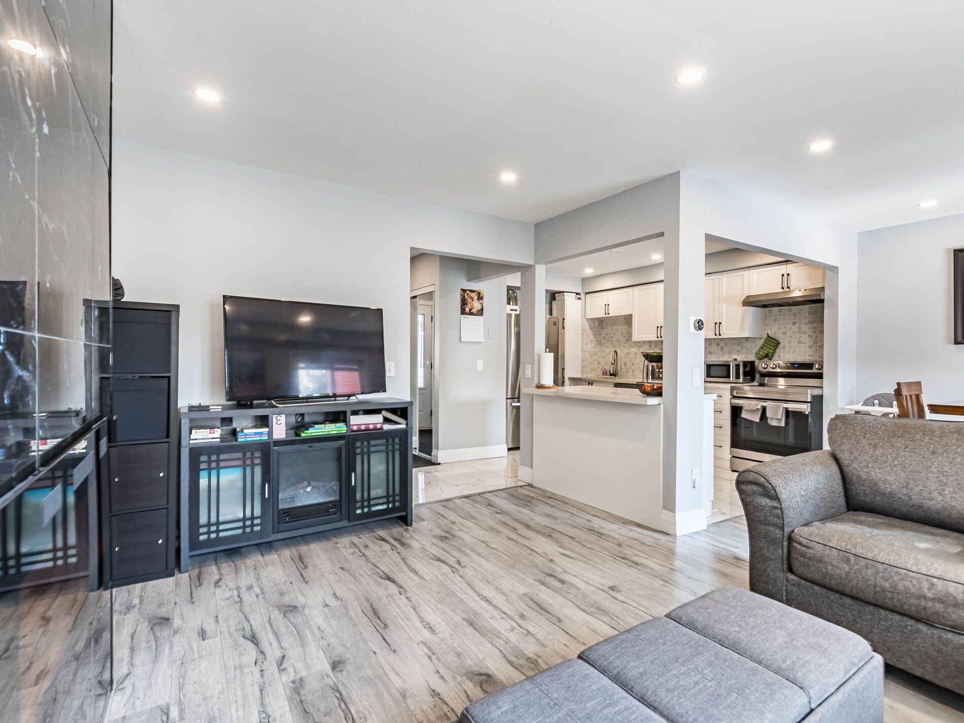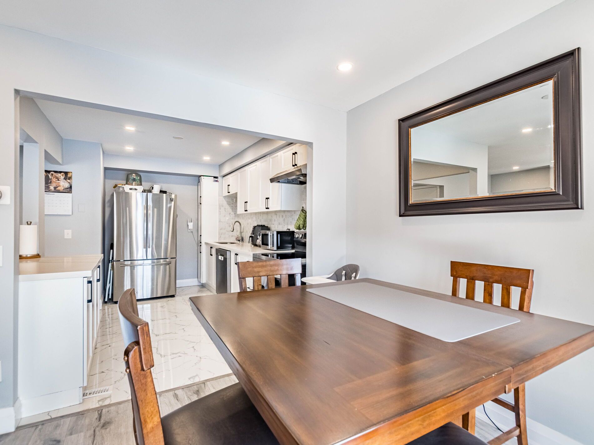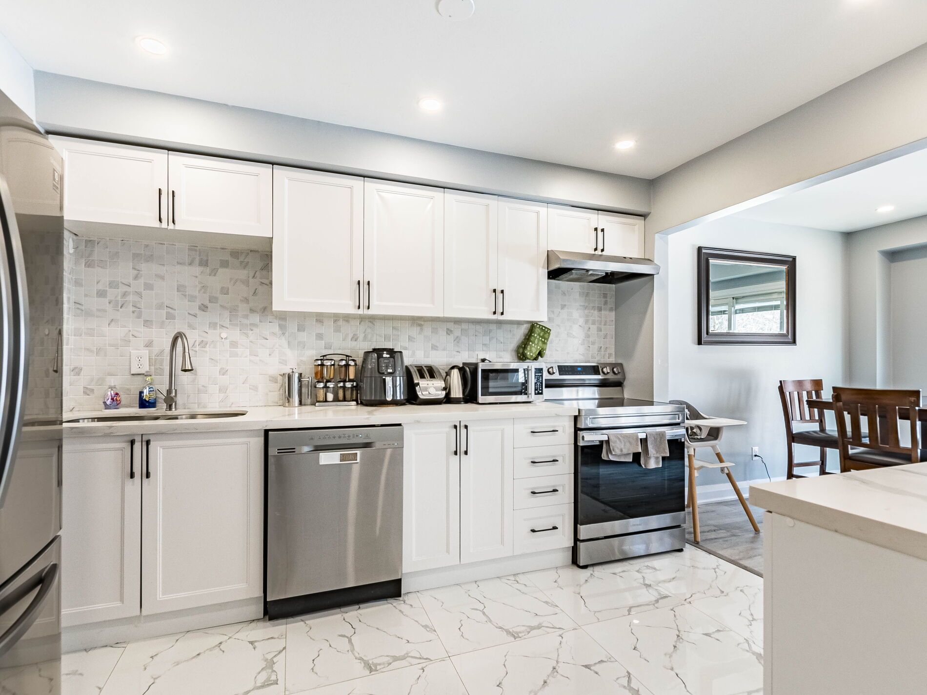 Welcome to this beautifully upgraded freehold townhome located in the peaceful river oaks neighborhood. Featuring an open-concept layout with 3 bedrooms and 3 bathrooms, this home sits on a deep lot and has been freshly painted with pot lights throughout. Enjoy a brand-new kitchen with walkout to the yard, complete with countertops, cabinets, backsplash, and stainless steel appliances. The home also includes a fully finished basement.