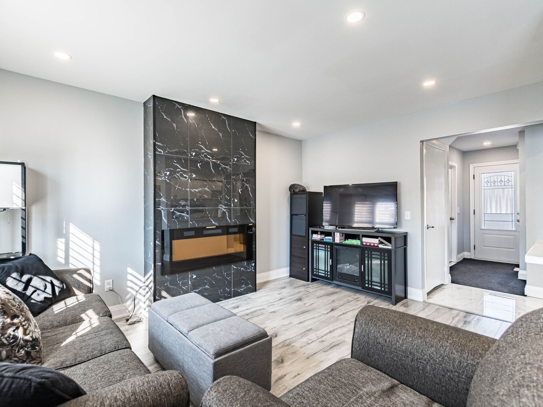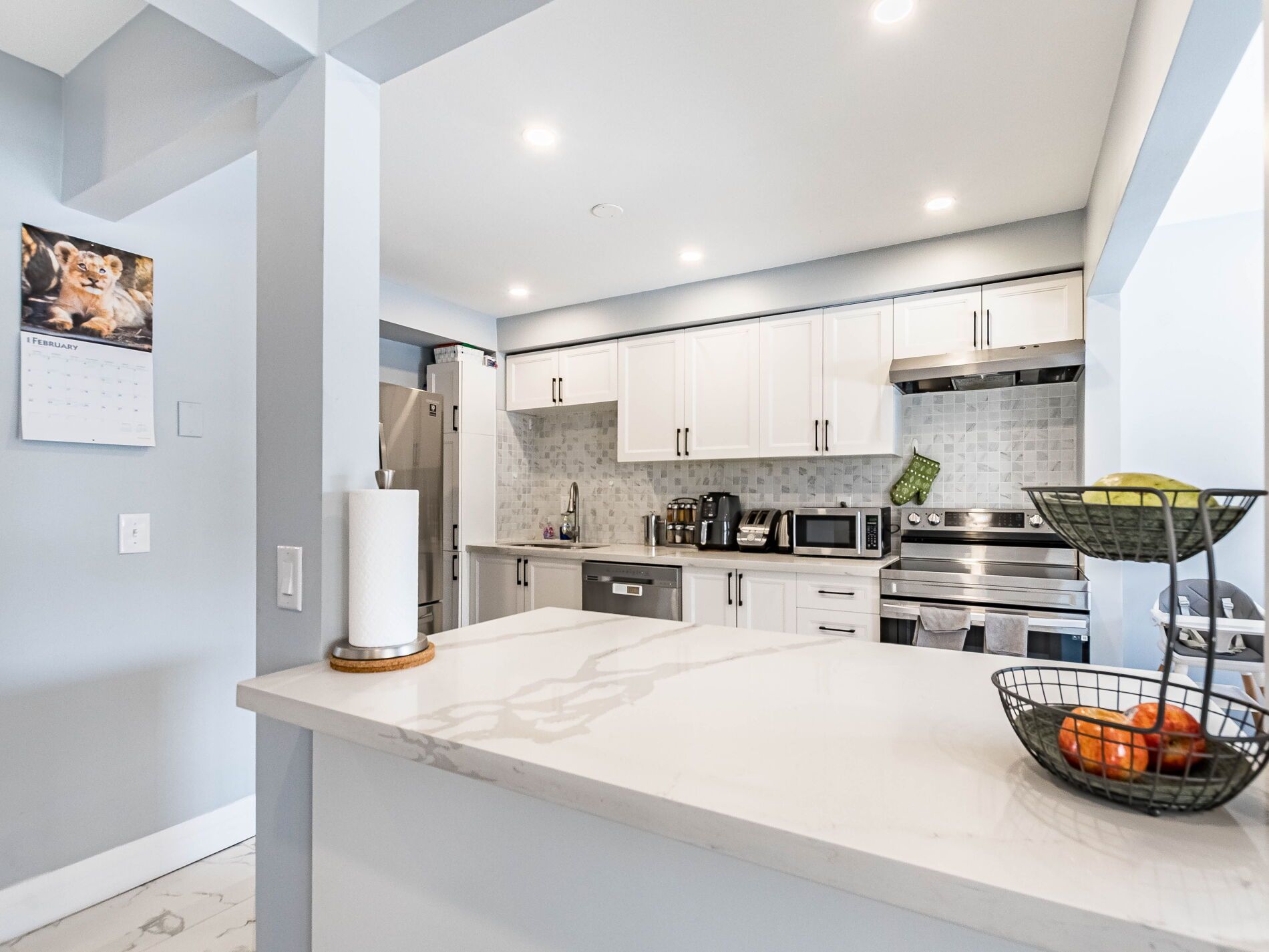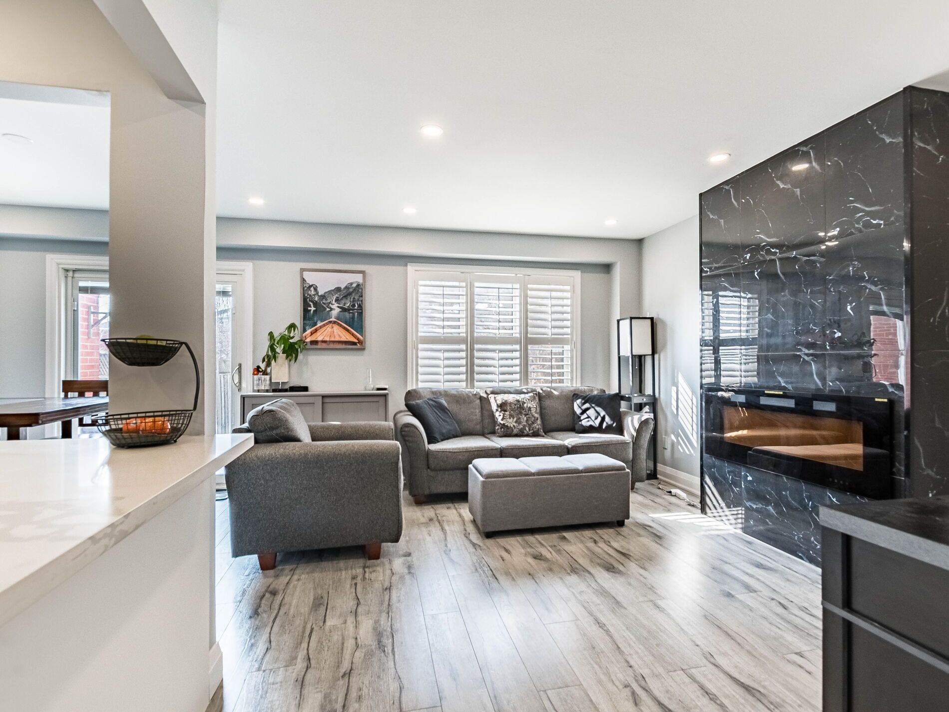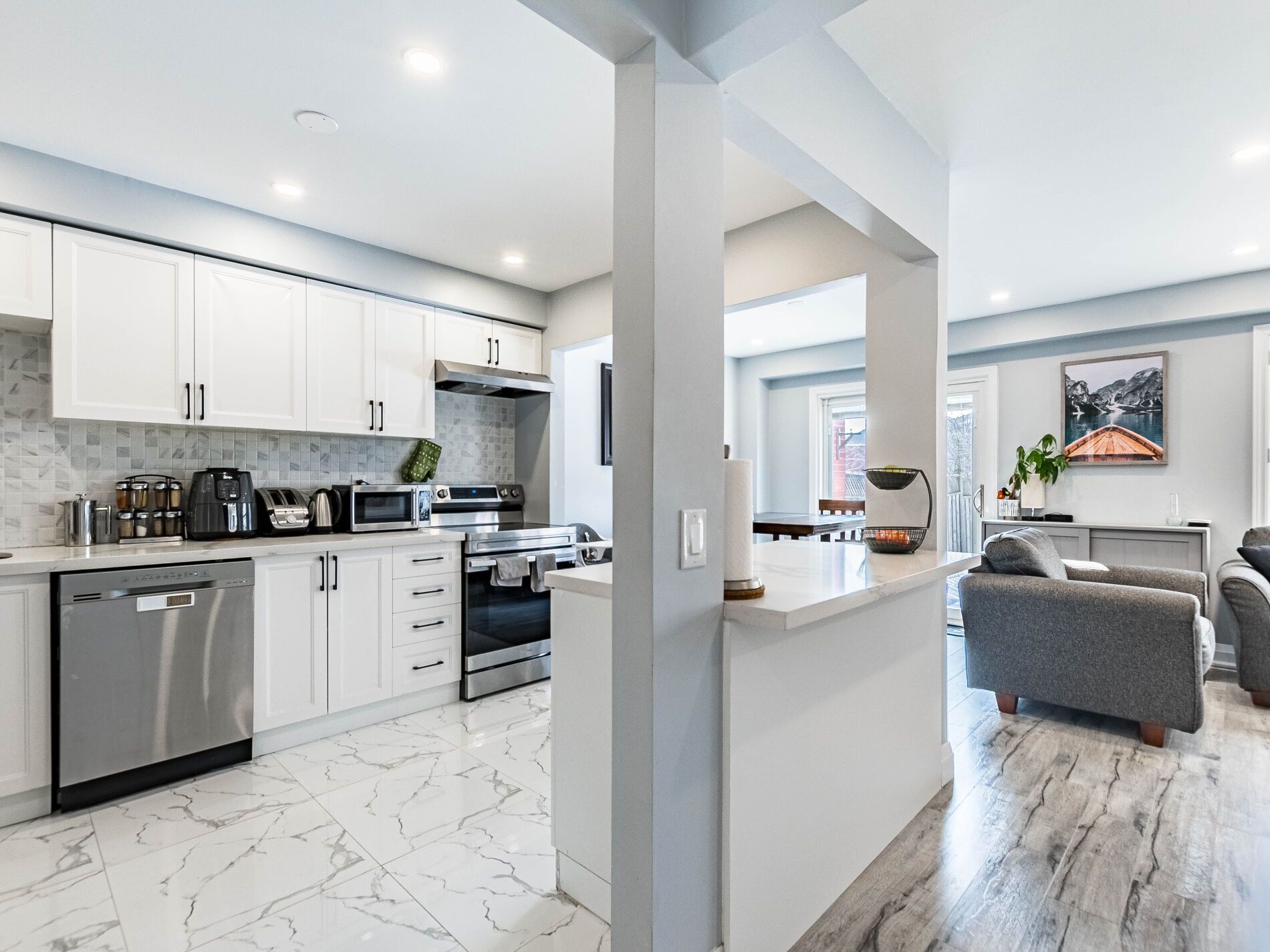 Welcome to this beautifully upgraded freehold townhome located in the peaceful river oaks neighborhood. Featuring an open-concept layout with 3 bedrooms and 3 bathrooms, this home sits on a deep lot and has been freshly painted with pot lights throughout. Enjoy a brand-new kitchen with walkout to the yard, complete with countertops, cabinets, backsplash, and stainless steel appliances. The home also includes a fully finished basement.
