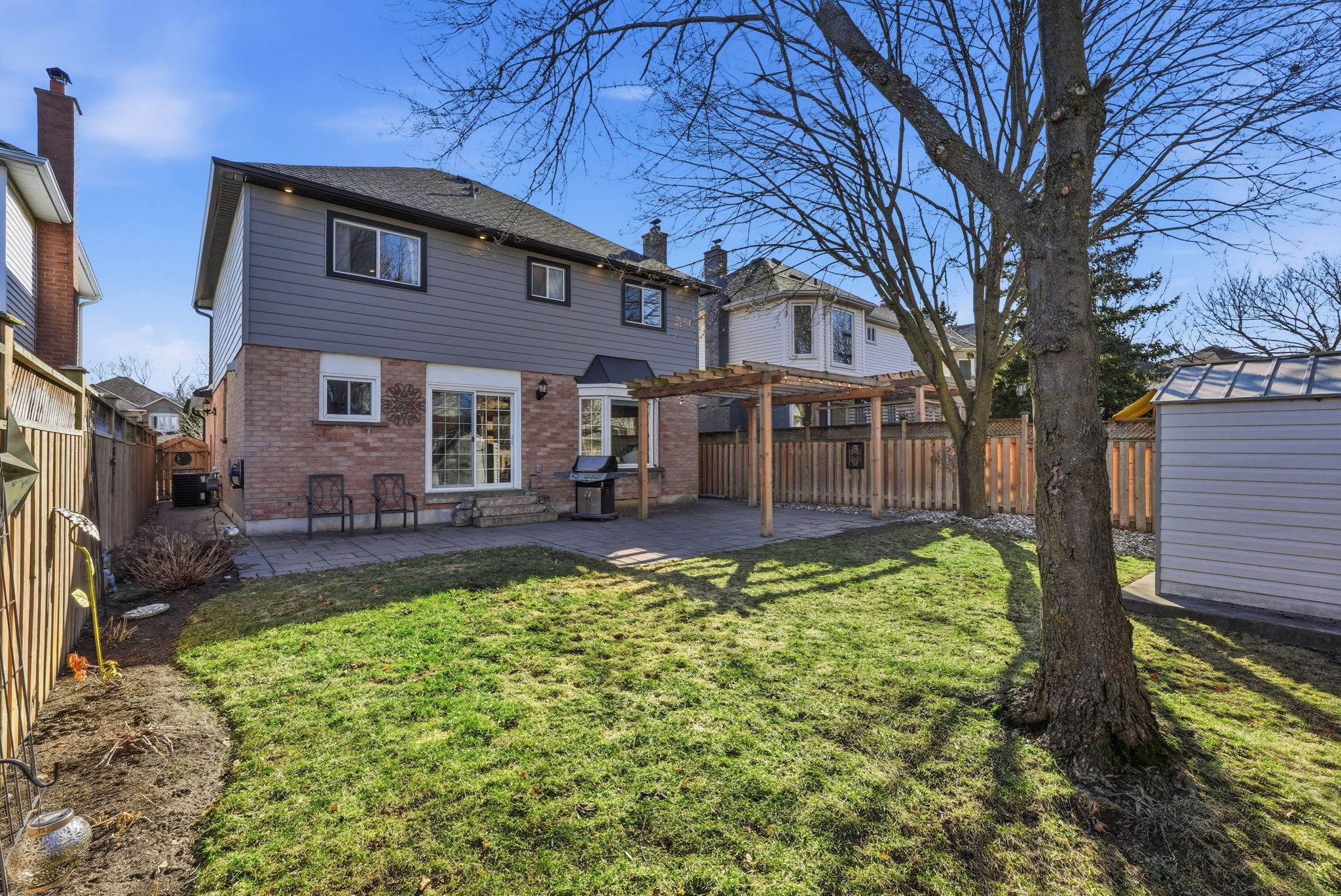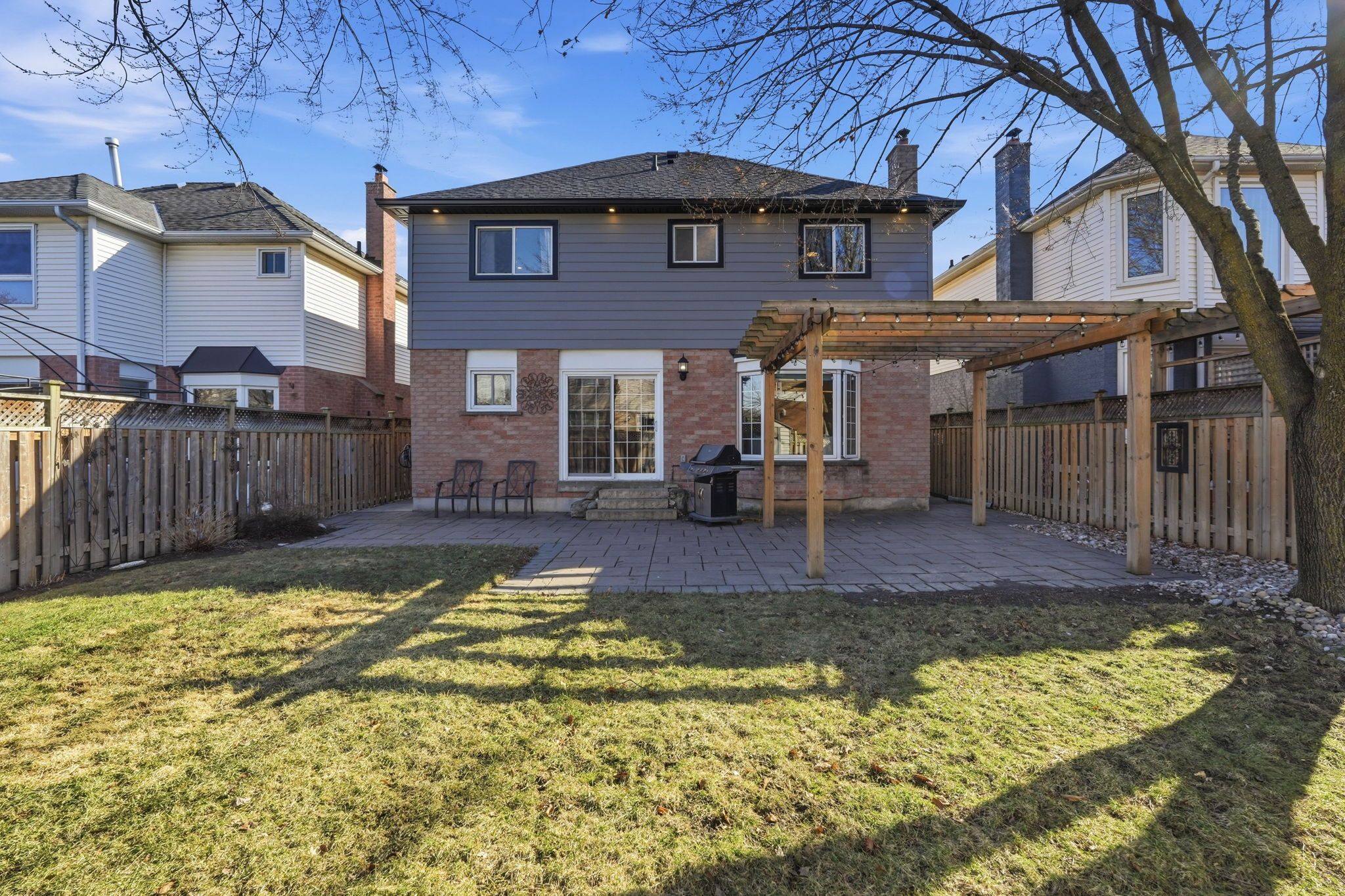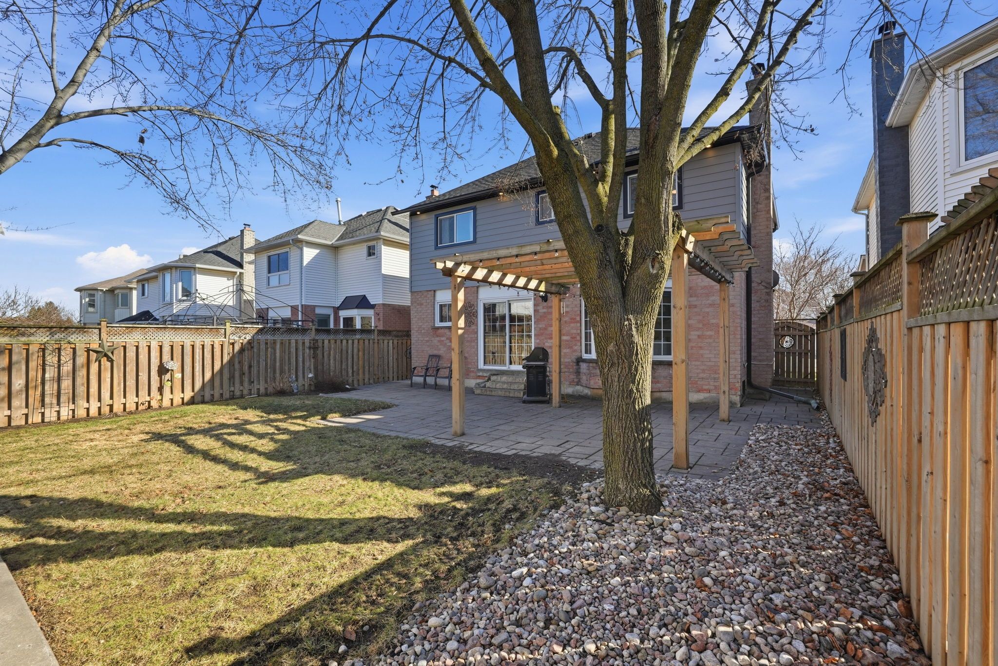 • Private landscaped backyard with a tumbled stone patio for outdoor fun.