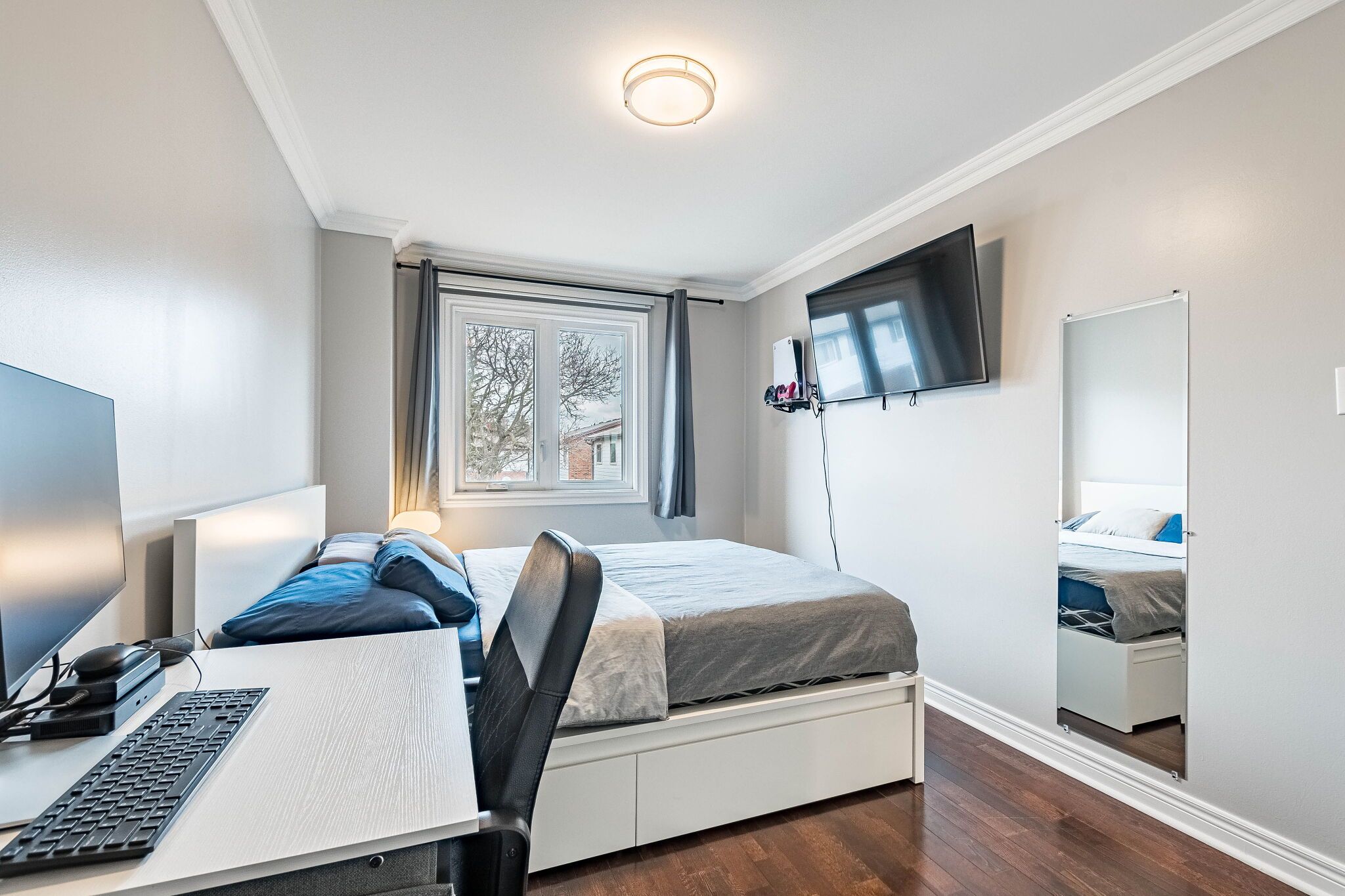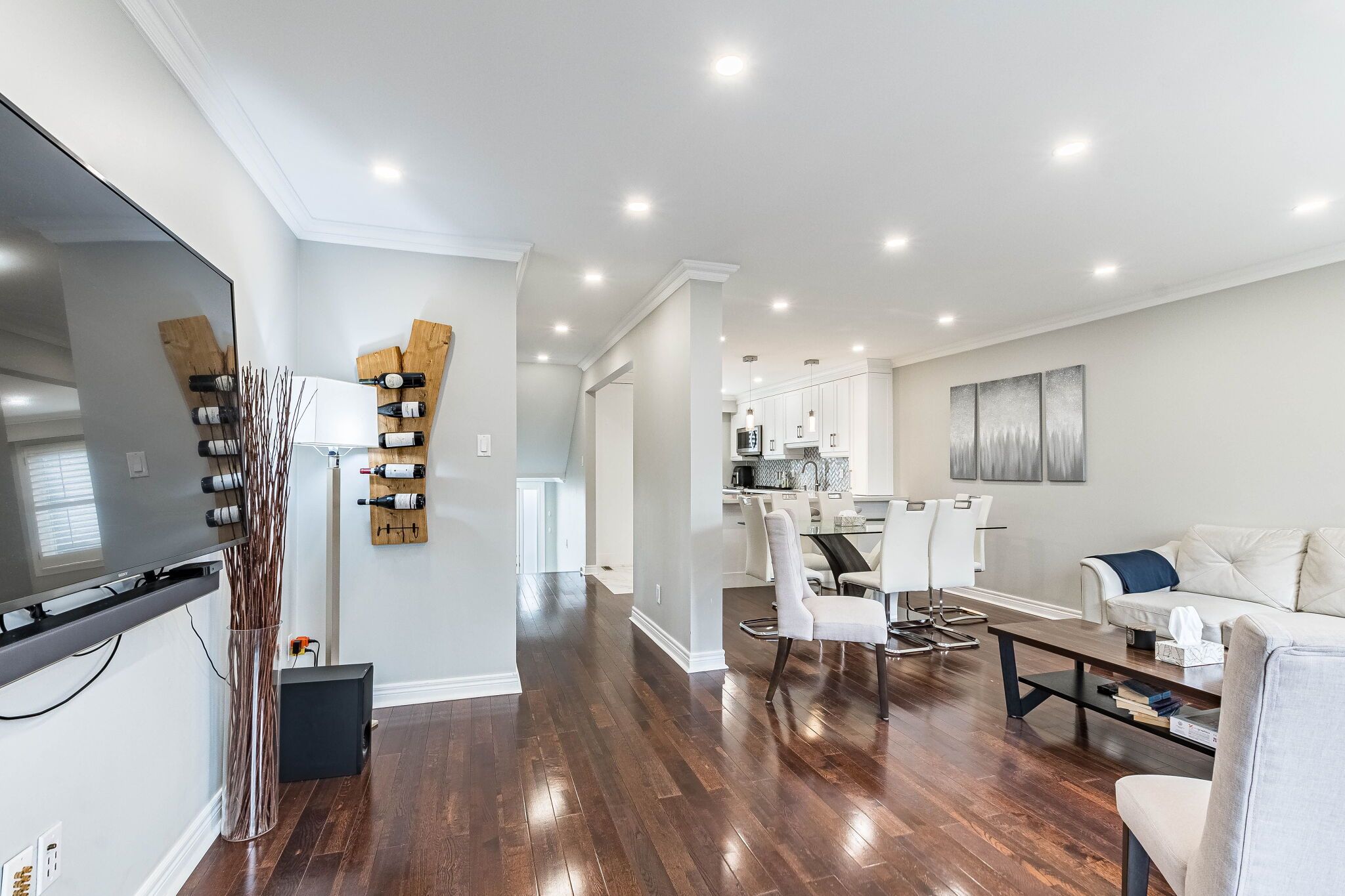 Your stunning executive townhome suite awaits! Desirable end-unit more like a semi-detached home! Modern finishes/features throughout, ss appliances, open concept layout & hardwood flooring on main-floor & upstairs. Lots of pot lights on main floor. Located in highly sought after sheridan homelands neighborhood! Quiet tree lined streets. Home is fronting on quiet vineland rd. Incredible amenities at your fingertips: shops, restos, credit valley hospital, parks, sheridan tennis club, david ramsey outdoor pool & recreation centre. And the list goes on! Outstanding school district: st. Francis of assisi catholic school, homelands sr. Public school, thorn lodge public school, sheridan park public school. Easy access to major arteries such as 403/qew for quick commute to downtown/airport.