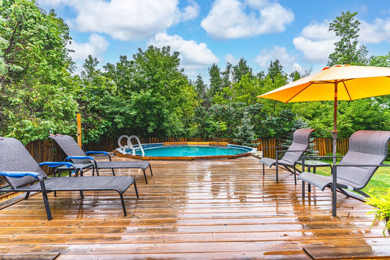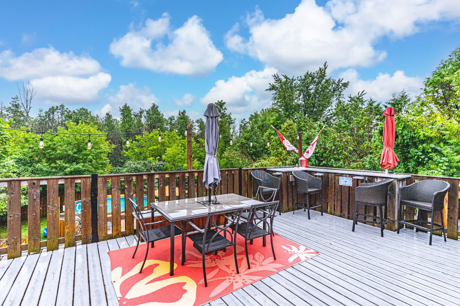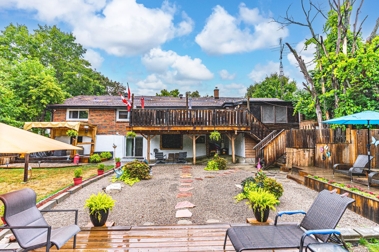 • Spacious backyard with gazebo, deck, patio, and above-ground pool for entertaining.