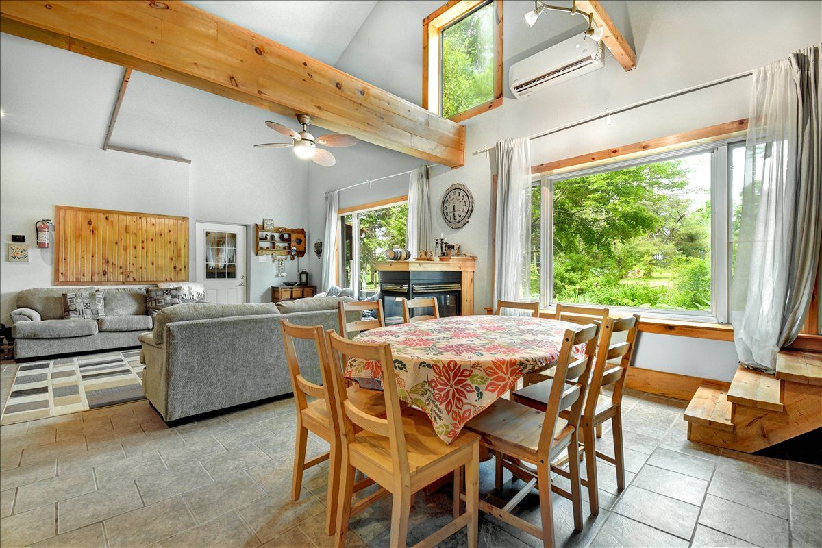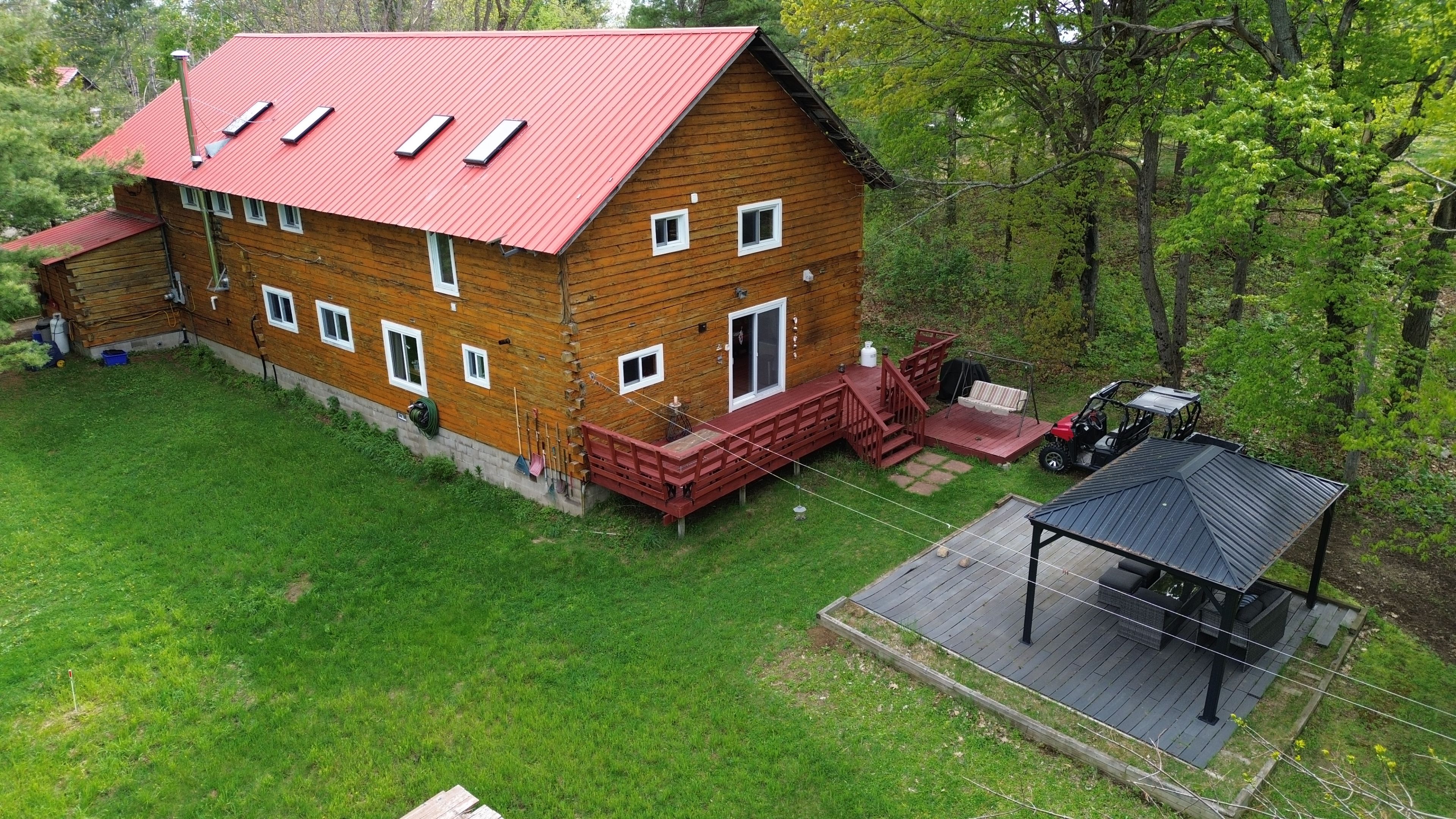 Welcome to this lovely family paradise tucked among the pines! Located south of the hamlet of coe hill, just before end of the ridge road, you'll come across this delightful log/wood home with a red steel roof giving the property its red roof lodge moniker. More-than 4000 sq. Ft., this home hosts to six bedrooms, three bathrooms and ~9 acres of land to explore, this property has a ton of potential. Recent renovations include the creation of an in-law suite or accessory apartment, all new flooring (2021), new septic (2021), new furnace (2021), second kitchen (2021), third bathroom (2022), second laundry (2022), ductless mini hvacs (2022), two extra bedrooms (2022), updated with smart home capabilities, and the don't forget the back-up solar panel system (2022)! Spacious and inviting - and with cathedral ceilings & skylights throughout to keep things light, bright, and airy - this home comes with all of the bells and whistles to make rural living comfortable and enjoyable. Whether you're entertaining on the back deck, having fun with the kids on the playset, or taking your meditation/yoga out to the traditional mongol yurt, the red roof lodge has a little something for everyone and every occasion. Enjoy hiking? Backing the property are hundreds of acres of crown land with multiple trails that are not easily accessed by the public. A "rural comfort", there are multiple sheds/barns for storage or animals, a cedar sauna, and two new hardtop gazebos. A "'techy' comfort", the property benefits from full wifi coverage, and electrical run to each of the outbuildings (yurt & gazebos included!), so you never have to feel disconnected from the world while out in your own remote getaway spot. If you are planning a big event over for the holidays, the accessory apartment quickly reconnects to the rest of the house when the extended family come visit. Peace, tranquility, and adventure can be found here at 2449 the ridge rd - come see for yourself all that this home has to offer.