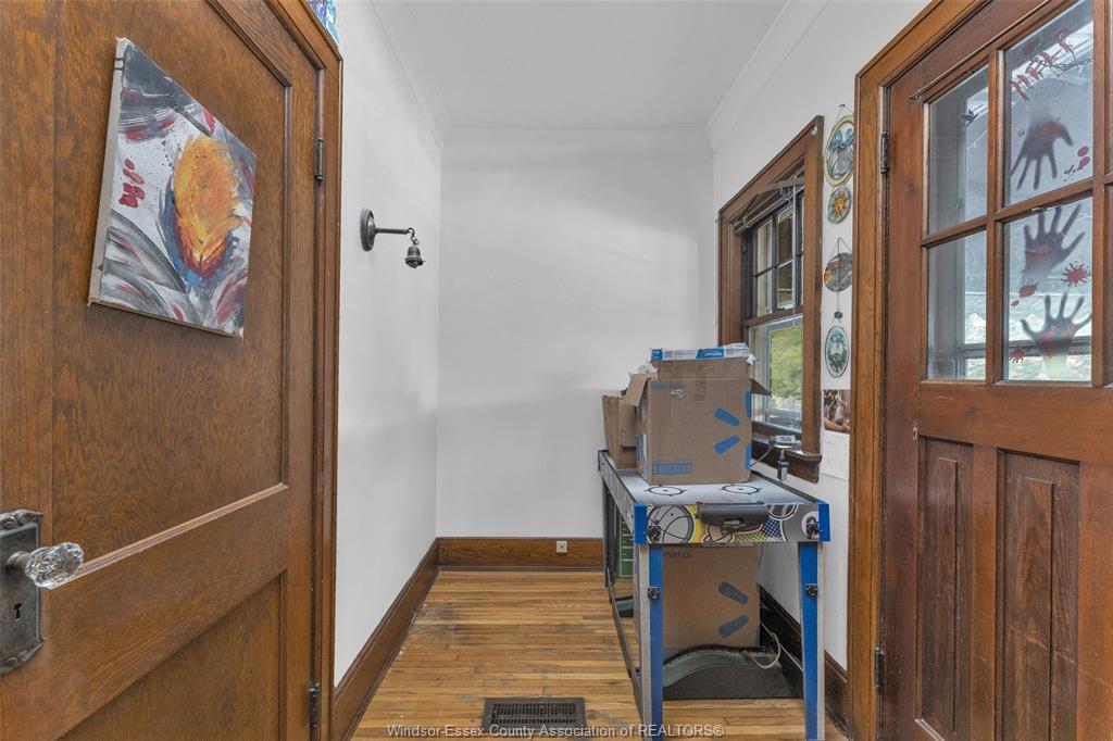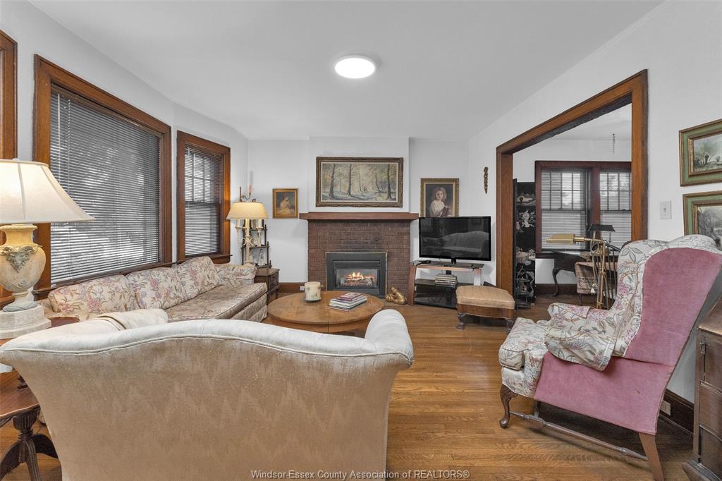 Attention investors. Spacious 2 storey all brick duplex featuring two large units. Walking distance to university of windsor ,public transit, waterfront and downtown. Minutes from usa border crossings. Lower level is vacant and ready for immediate occupancy. Live in one unit, rent the other. Each unit boasts original hardwood and oak trim, complete with separate entrances, living room with fireplace, dining room, full bath, kitchen, 2 bedrooms and a 3rd rear room offering plenty of sunlight with multiple uses, bedroom, den, office. Unique to this duplex is separate basements gas and electric meters, utility and laundry, and large open unfinished space for multi uses. Relax on covered porch on main and balcony on upper level. Rear parking in alley or garage. Upper level is tenanted with long term tenants who would like to stay.