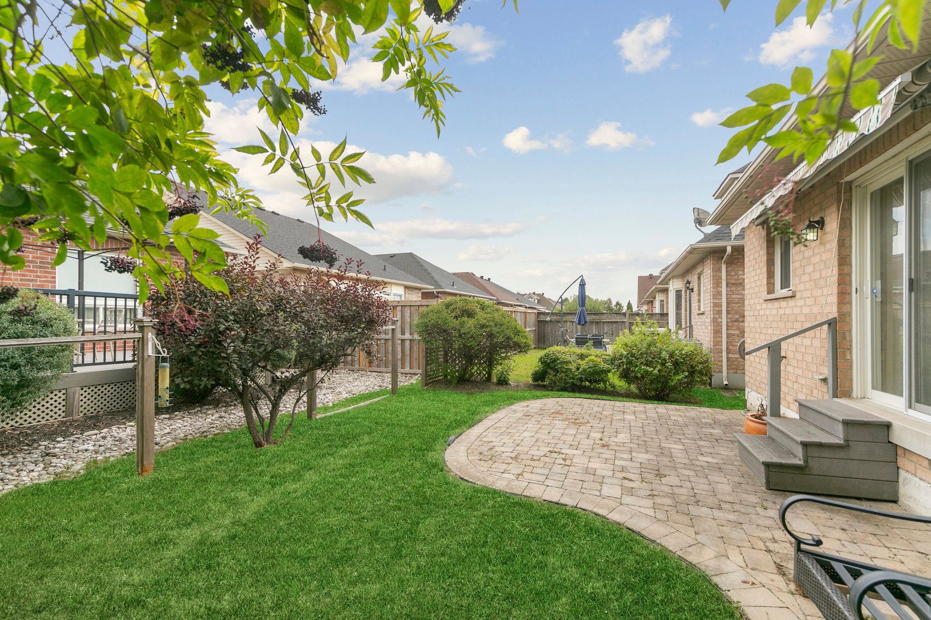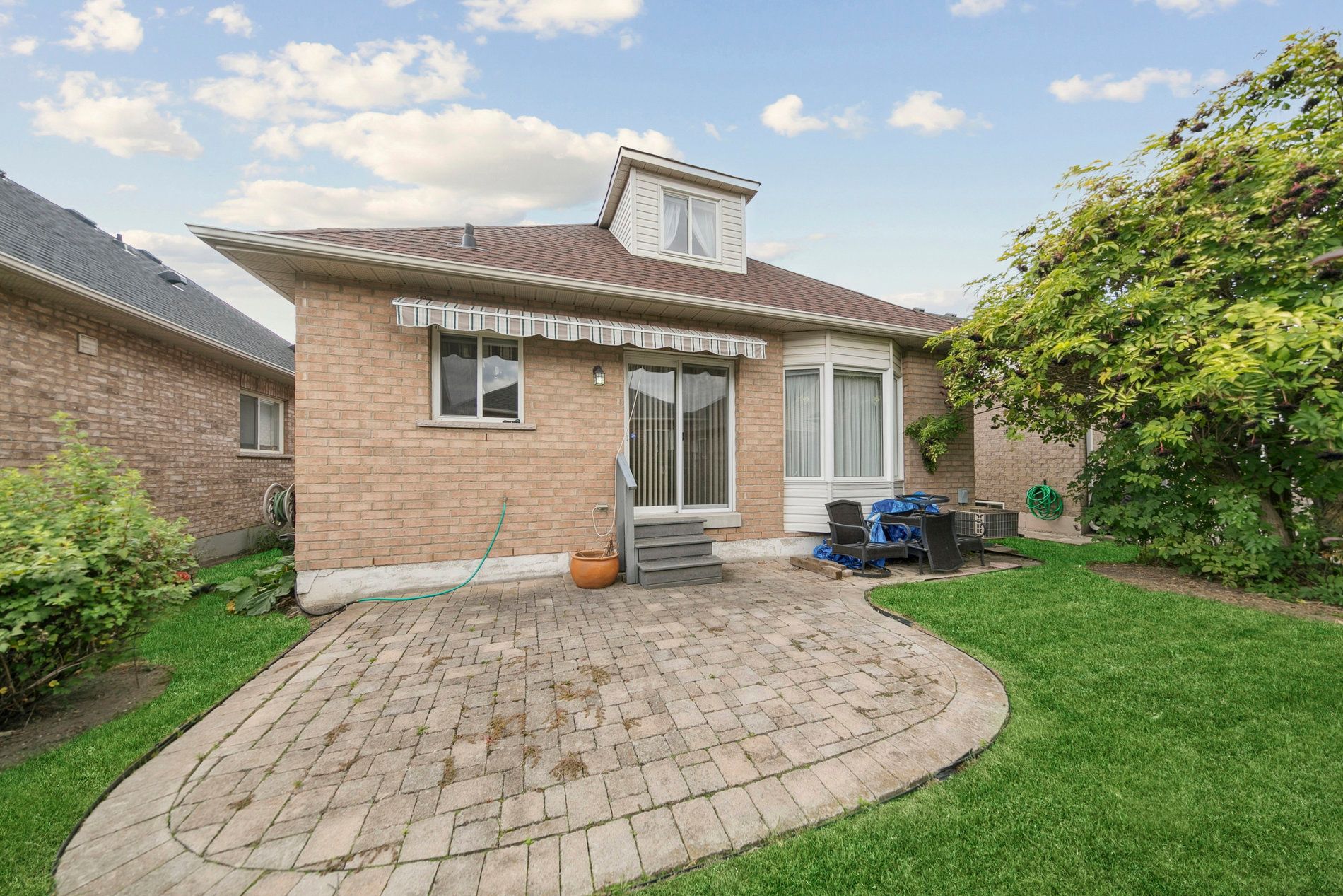• Private backyard patio with an awning for relaxing mornings and afternoons.