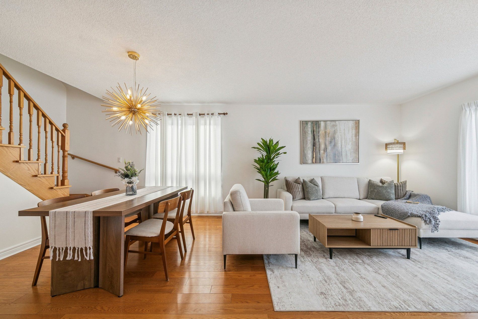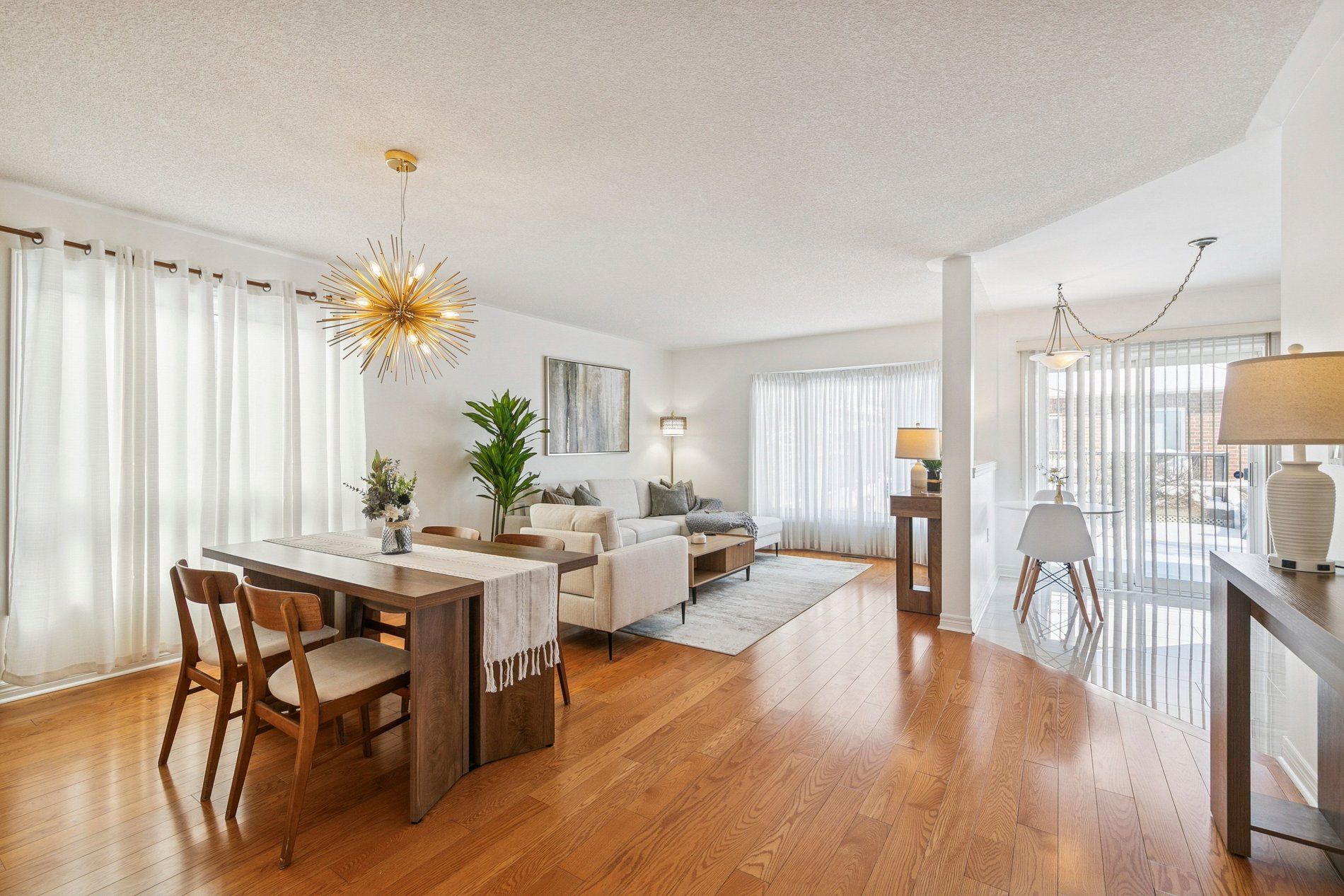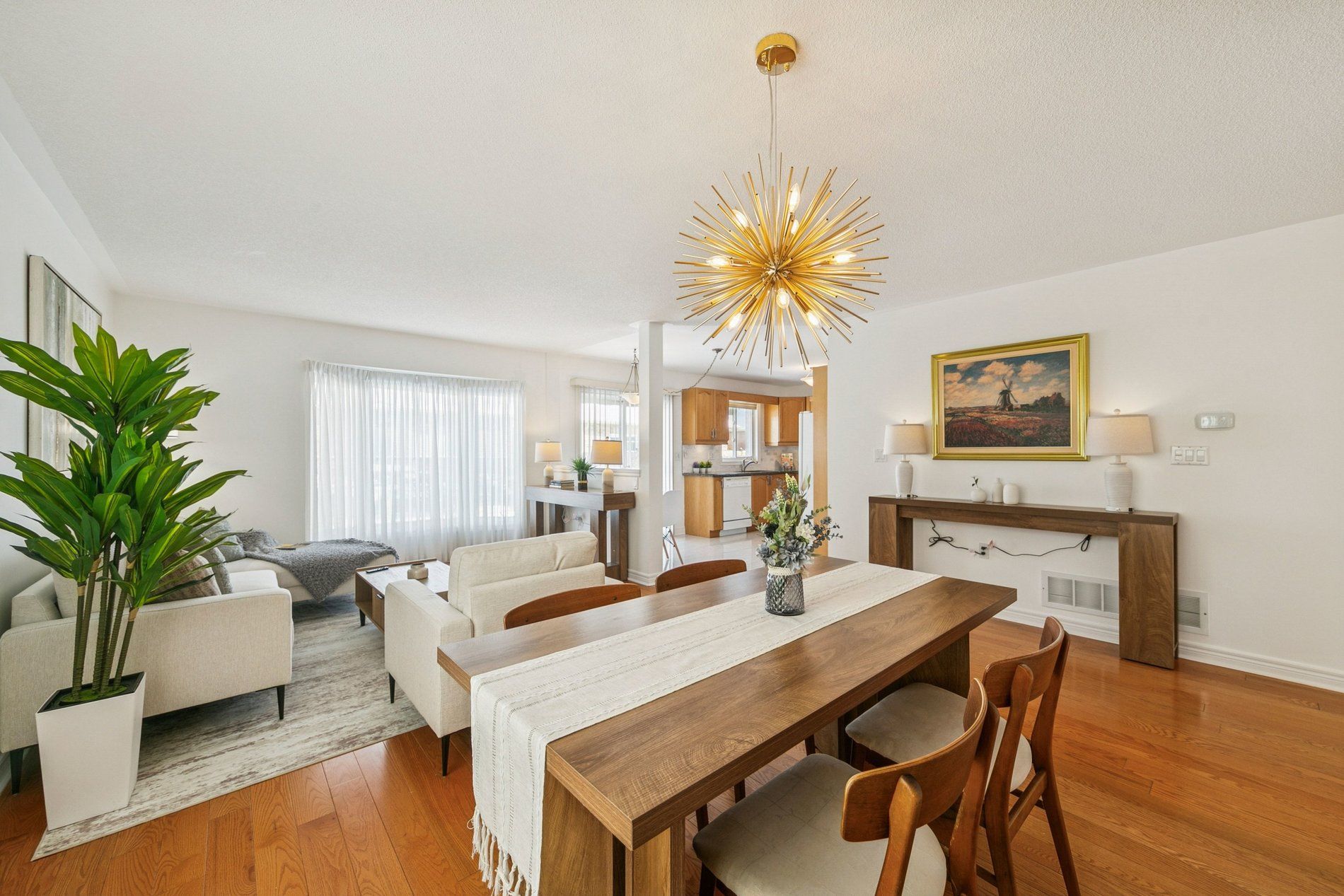 • Bright, open-concept living area with hardwood flooring and elegant design.