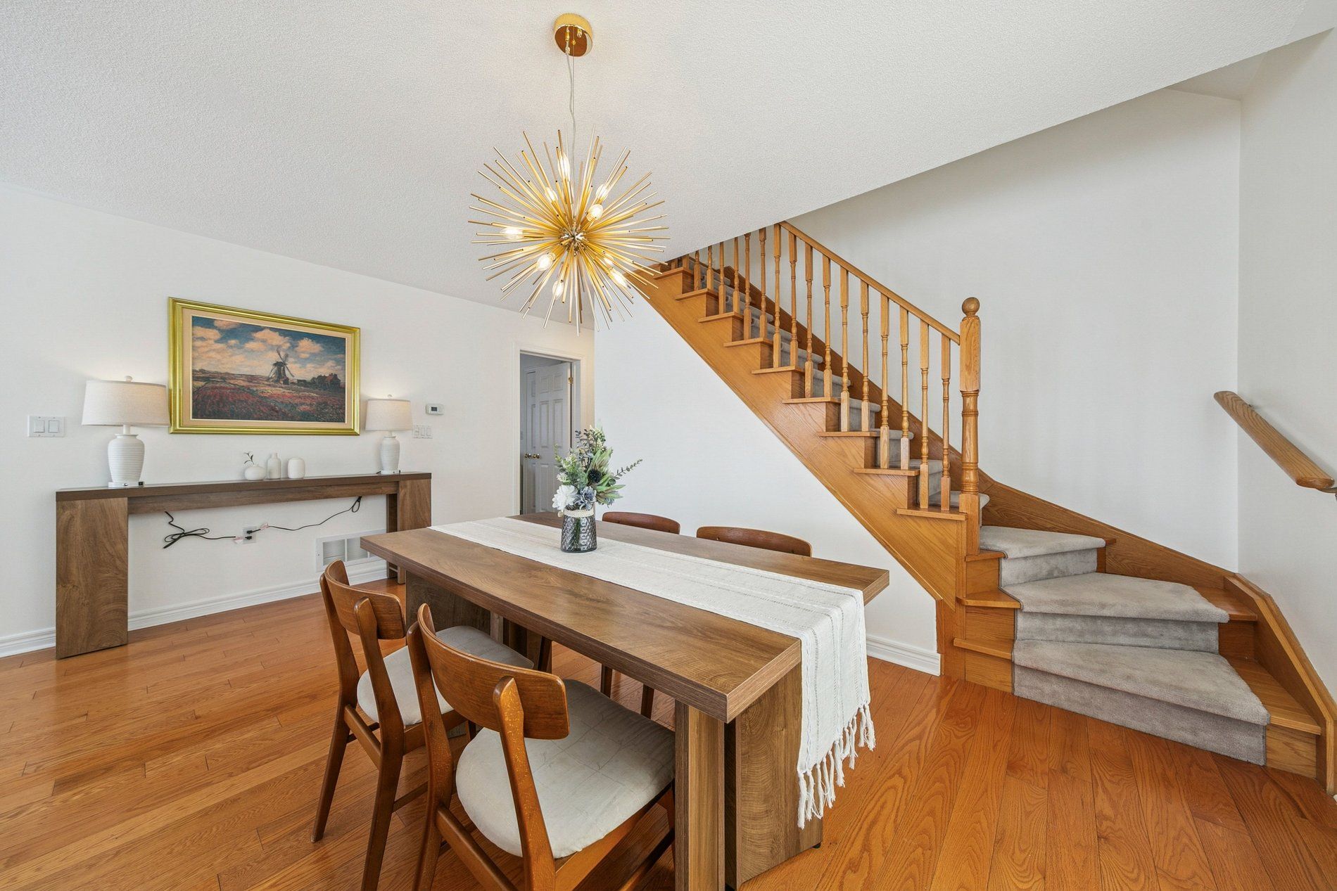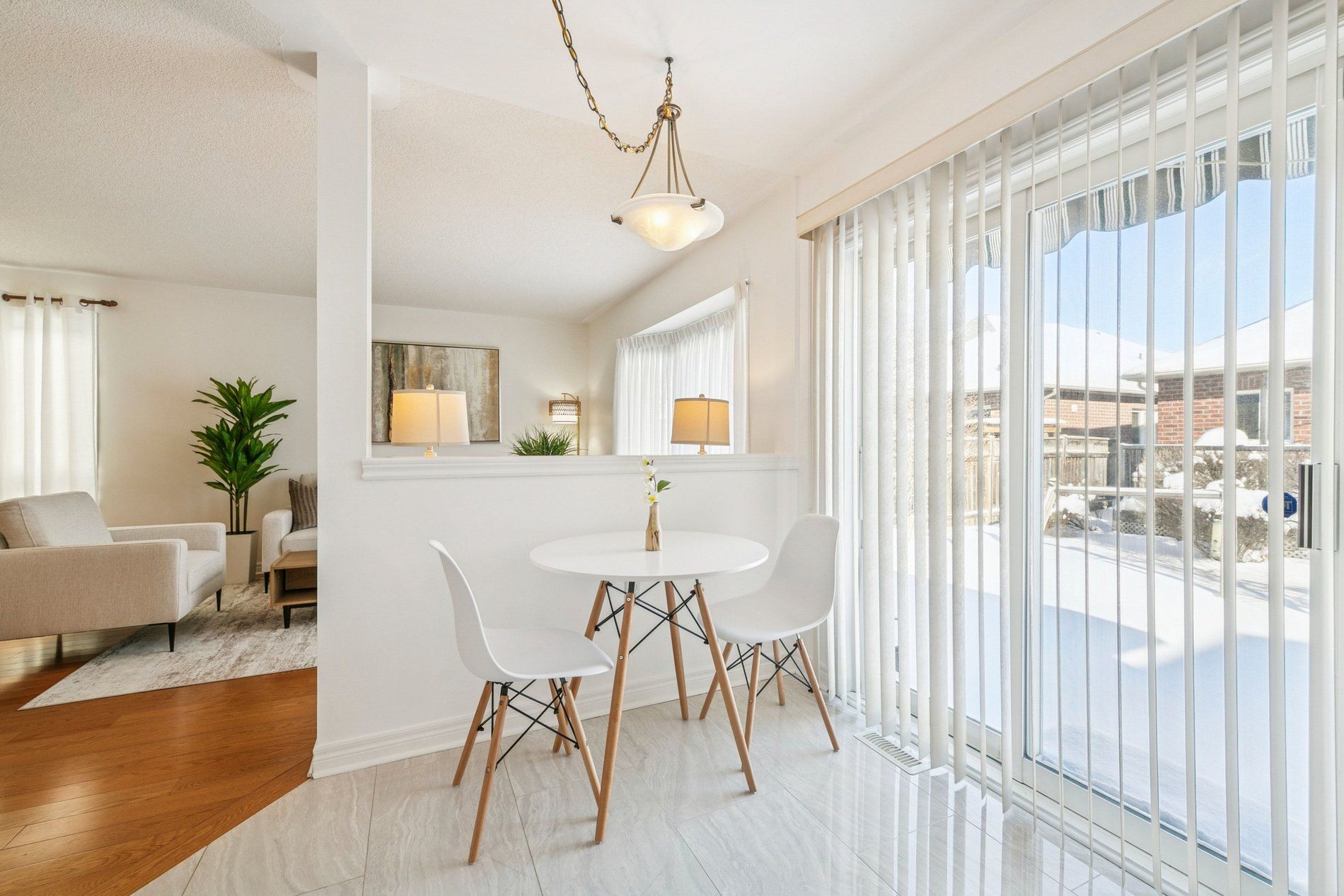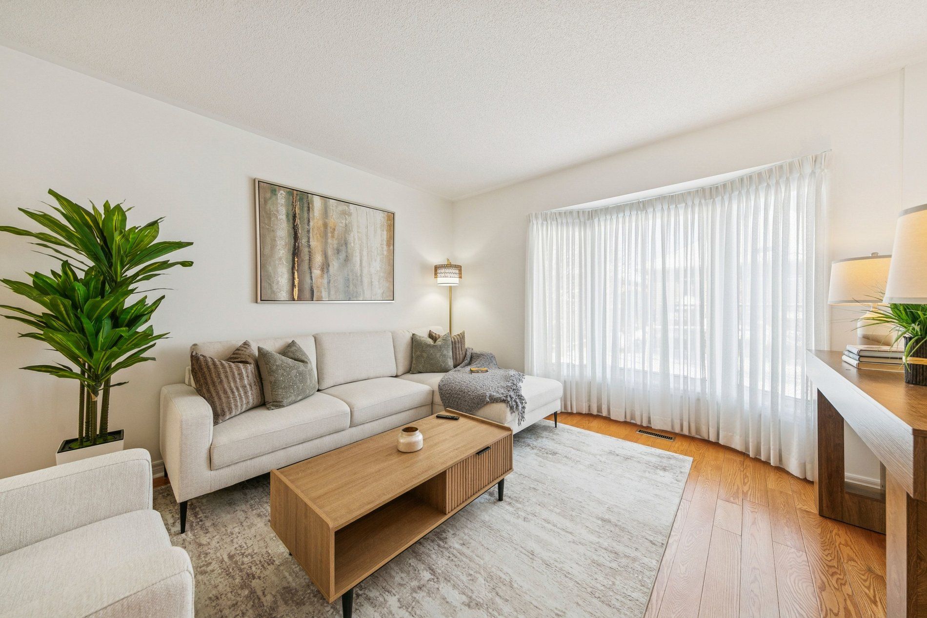 • Bright, open-concept living area with hardwood flooring and elegant design.