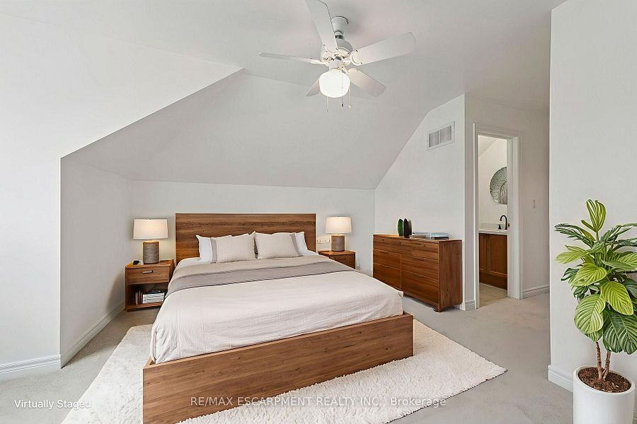 Downsize without compromise in sought-after drury park, milton. Welcome to an adult lifestyle community where downsizing meets effortless living. This beautifully maintained detached bungaloft offers the perfect balance of low-maintenance comfort, elegant design, and functional space. Set on a generous 37' x 91' lot, this 3-bedroom, 2. 5-bath home is ideal for retirees, empty nesters, or anyone seeking a peaceful lifestyle close to everything you need. From the welcoming front porch to the bright, open-concept interior, every detail invites you to relax and enjoy. With approximately 1,450 sq ft above grade, this thoughtfully designed bungaloft provides ample room for full-sized furnishings perfect for those transitioning from a larger home. The sun-filled living and dining area features rich hardwood flooring creating a warm and inviting atmosphere. The kitchen is both stylish and practical, complete with granite countertops, custom tile backsplash, and durable tile flooring. Step outside to your private backyard patio complete with an awning and a perfect retreat for morning coffee or afternoon reading. Main-floor living at its finest, the spacious primary suite offers a walk-in closet and a 4-piece ensuite with quartz countertops. A second main-floor bedroom provides flexibility for guests, a home office and has a 3-piece bath adjacent to it. Upstairs, the versatile loft-level bedroom with its own 2 piece ensuite and w/i closet creates a private guest suite or a peaceful getaway for visiting family. A convenient laundry room is on the main level and there is great potential to finish the large full-sized basement. Located just minutes from downtown milton, you'll enjoy easy access to shopping, dining, amenities, and quick connections to highway 401. Recent updates: freshly painted in chantilly lace/carpeting in bedrooms/furnace/ bathroom countertops all done in 2025, roof 2019
