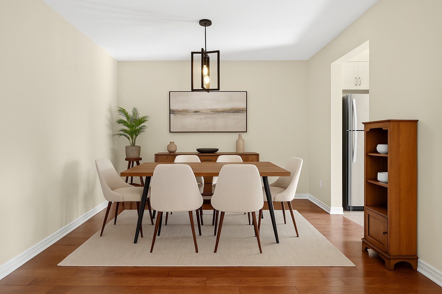 Welcome home to this beautifully maintained minto-built greenwich model townhome offering 1,818 sq ft of well-designed living space on a quiet, family-friendly crescent. This 3-bedroom, 2. 5-bathroom home features upgraded hardwood flooring and railings on the main level, along with upgraded ceramic tile in the entryway, kitchen, and all bathrooms for added style and durability. Enjoy a large formal living room and a separate dining area perfect for entertaining. The gallery-style kitchen includes stainless steel appliances, ample counter and cupboard space, and a bright eating area with access to the fully fenced backyard-ideal for relaxation or outdoor gatherings. Upstairs, the spacious primary bedroom boasts a walk-in closet and a 4-piece ensuite with a soaker tub and separate shower, complemented by two additional generously sized bedrooms, a 4-piece main family bathroom, and a linen closet. The finished lower level offers a large recreation room with an oversized window, a laundry room, and plenty of storage in the unfinished area-perfect for a playroom, office, or home gym. Additional features include a single-car garage with inside entry and parking for two more vehicles in the shared driveway. Located minutes from top-rated schools, barrhaven marketplace, costco, chapman mills, public transit, parks, trails, and the walter baker recreation complex, this move-in-ready home combines comfort, convenience, and community. Please note: photos have been virtually staged to showcase the potential of the space.