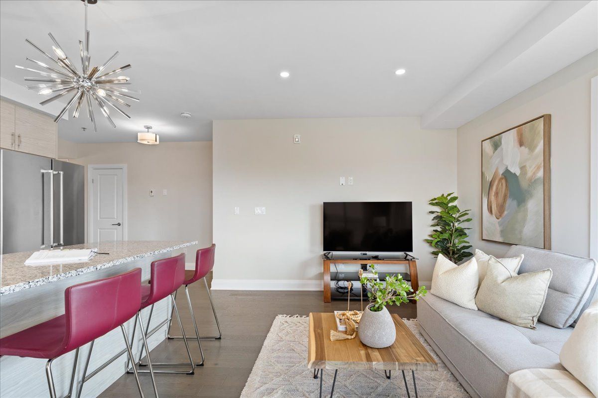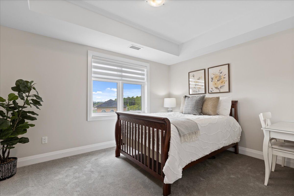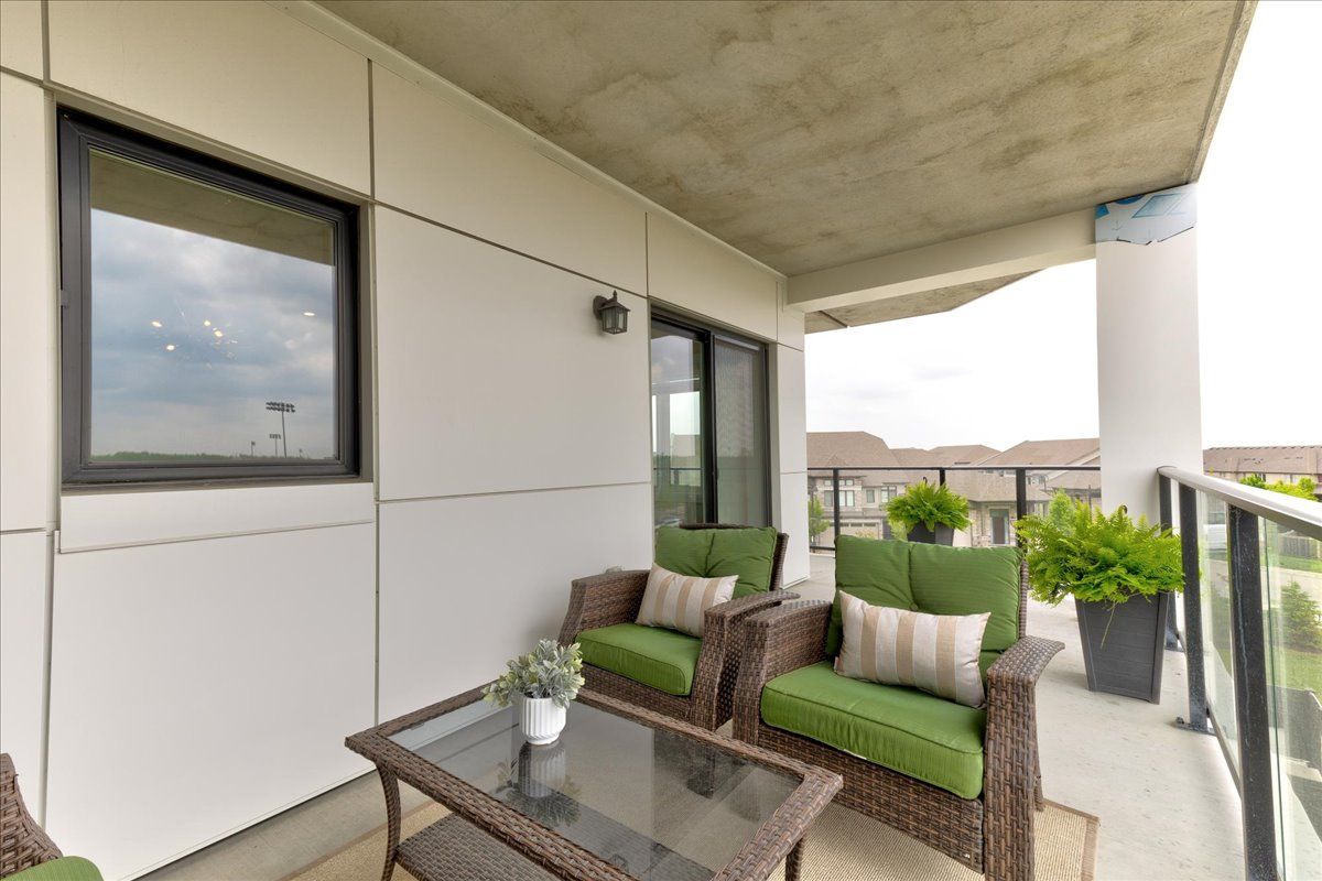 Beautiful 2-bedroom, 2-bath executive condo located in the highly sought-after carriage crossing neighbourhood. This bright corner unit, just 4 years old, enjoys west-facing exposure with no direct neighbouring views, allowing for plenty of natural light throughout the day. The modern open-concept kitchen features quartz countertops, a stylish herringbone backsplash, under-cabinet lighting, a large island, stainless steel appliances, and plenty of storage-perfect for everyday cooking or entertaining guests. The sun-filled living area offers engineered hardwood flooring, upgraded lighting, and direct access to an expansive wraparound balcony. With two separate seating areas and wide open panoramic views, it's an ideal spot to unwind with a drink after a long day. The spacious primary bedroom includes two closets and a private ensuite featuring a spa-inspired glass shower with built-in bench. The second bedroom is generously sized and filled with natural light, making it perfect for guests, a home office, or additional living space. Both bathrooms are finished with granite countertops and upgraded fixtures. This unit also includes a convenient drive-in underground parking space with a large private storage locker located directly in front, making access simple and practical. Additional features include in-suite laundry, water heater, and water softener. Residents enjoy access to an incredible rooftop terrace complete with planter gardens, comfortable seating areas, a fire table, communal bbq, and stunning views-a wonderful place to gather with friends or relax outdoors. Fantastic location close to rim park, grey silo golf club, blackberry, scenic walking and biking trails, brown's social house, conestoga mall, and the st. Jacobs farmers' market. Experience the ease and comfort of condo living in one of waterloo's most desirable communities.