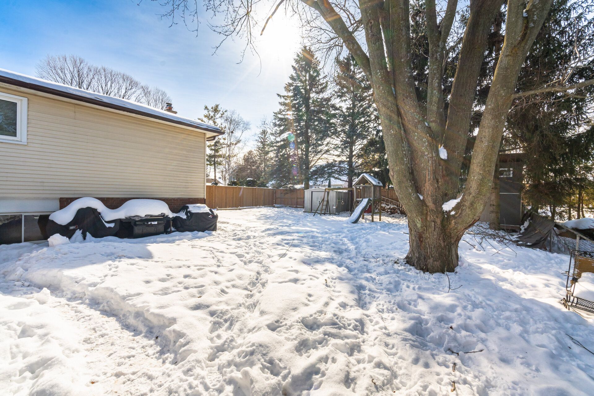 Welcome to 245 queen street, a solid brick backsplit located in a quiet, established residential neighbourhood in rockwood. Set on a generous lot measuring approximately 66 ft by 132 ft, this home offers a comfortable sense of space and a layout designed to support everyday living over multiple levels. The main level features a sunken living room with hardwood flooring, large windows, and a walkout to the yard, creating a natural gathering space with a strong connection to the outdoors. The kitchen and dining area are open to one another, supporting both daily routines and relaxed meals. The upper level brings together three bedrooms and a four-piece bathroom. A few steps down from the main level, the lower level offers a welcoming recreation or family room with a wood-burning fireplace, a fourth bedroom, and a three-piece bathroom with laundry. A further basement level provides additional utility, storage, or workshop space. An attached two-car garage, private driveway, and level lot add everyday convenience, while the surrounding streetscape reflects long-term ownership and established residential character. Municipal services are in place, and the setting feels settled and well cared for. Rockwood is appreciated for its strong sense of community, access to local schools and amenities, nearby parks and trails, and proximity to the eramosa river, all while remaining within commuting distance of guelph, milton, and surrounding areas. This is a well-located home offering space, flexibility, and long-term livability in an established rockwood neighbourhood. Book your showing and start building new memories in this welcoming rockwood home.