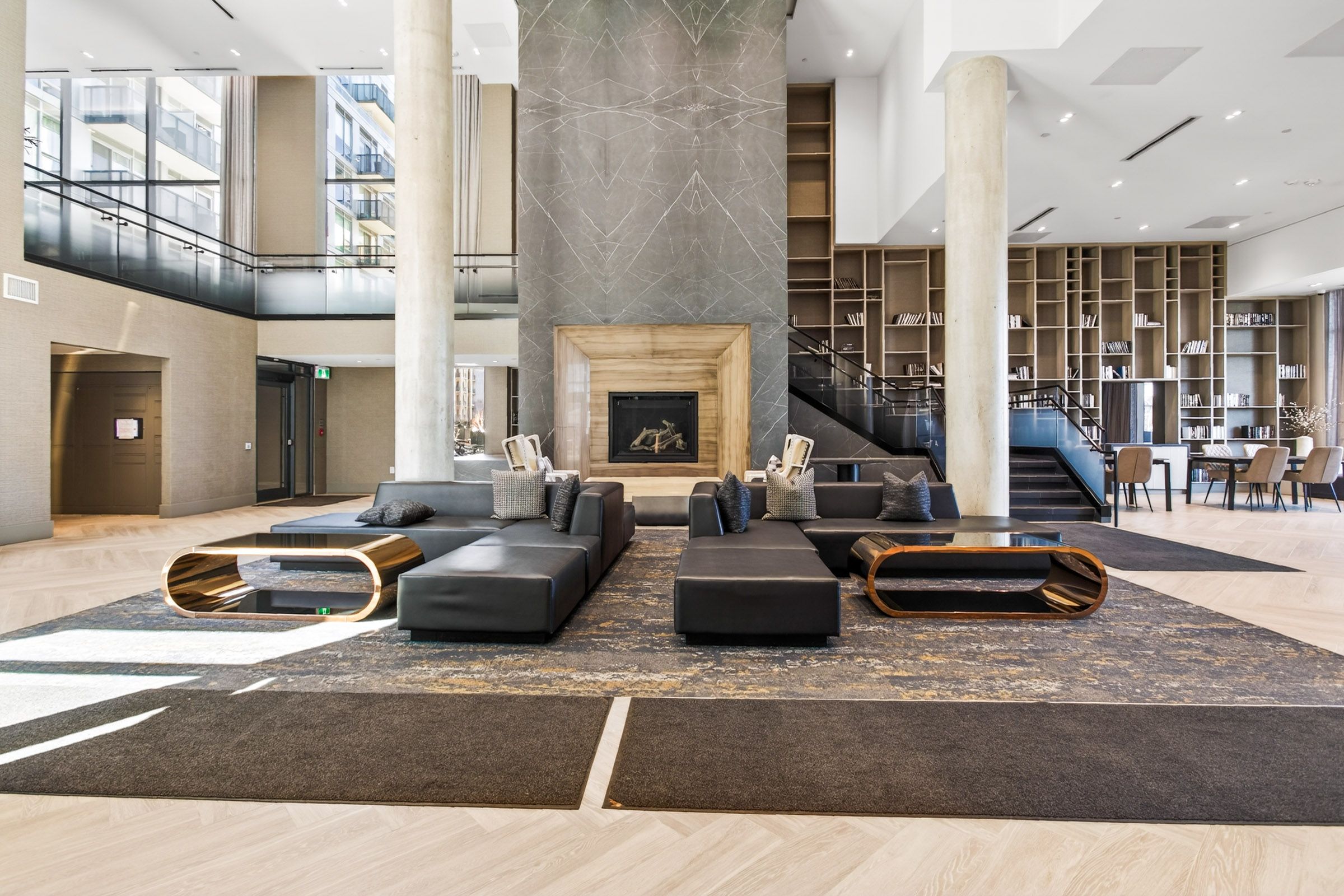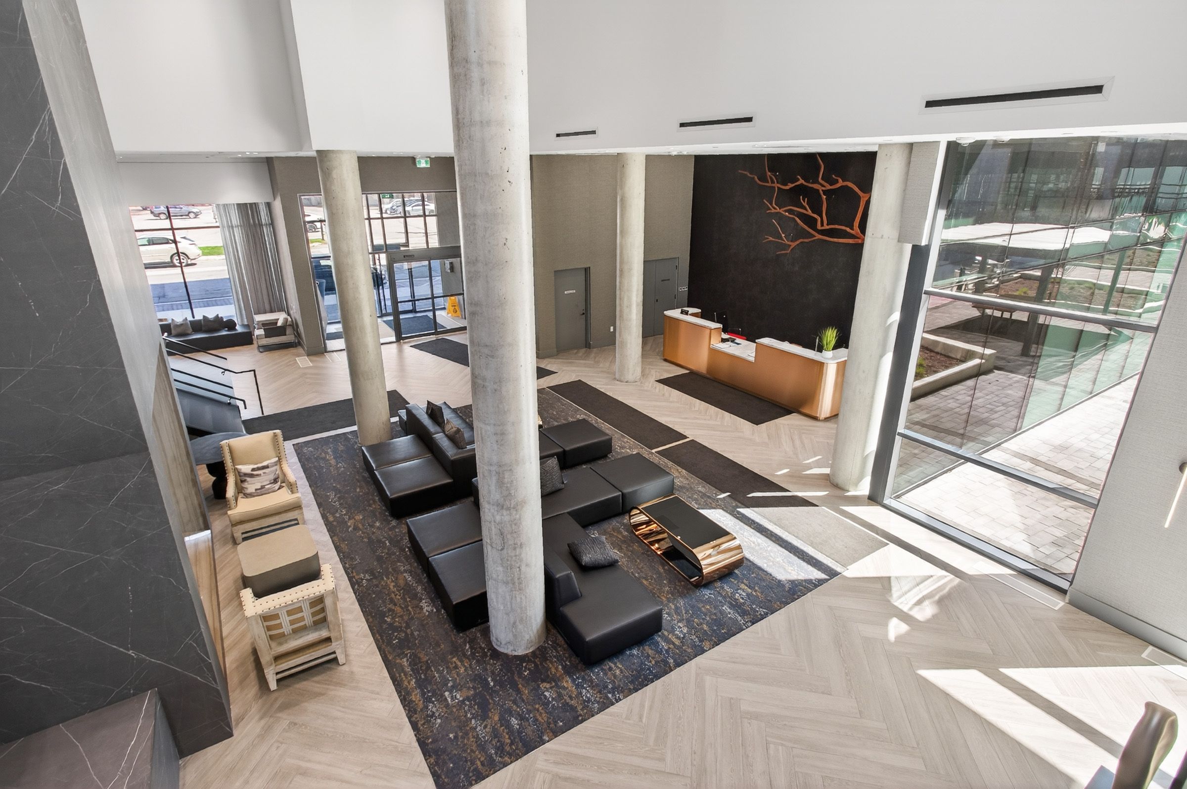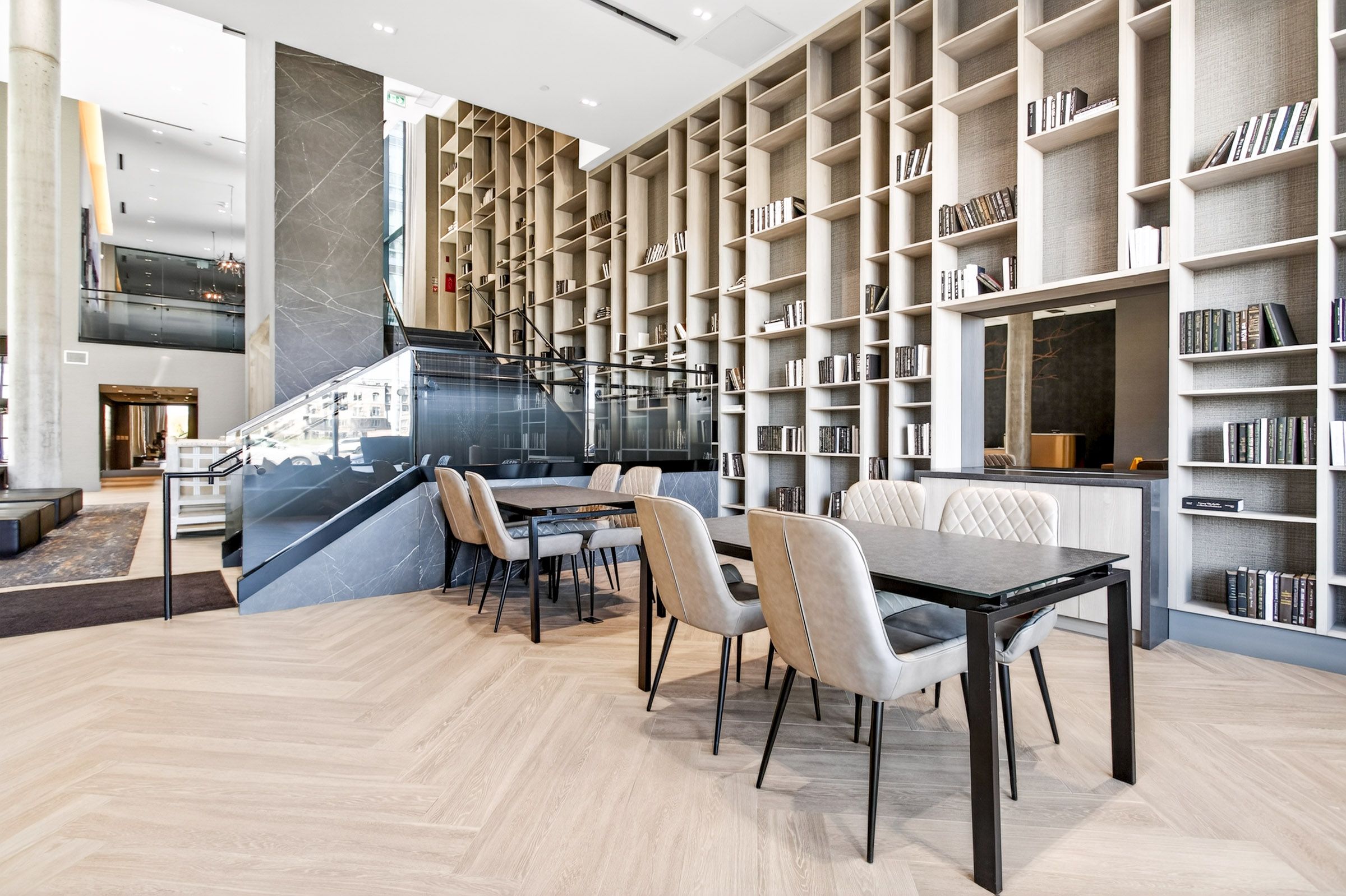 Fully furnished. Experience an unparalleled resort-style lifestyle at the branch condos, one of oakville's premier luxury communities. By living here, you gain access to an extraordinary collection of upscale amenities designed for wellness and recreation, including a stunning indoor pool with a hot tub and in-pool loungers, a state-of-the-art fitness center with yoga and steam rooms, and a versatile upper lobby featuring a media lounge, billiards and an elegant bistro. This bright and spacious one bedroom plus den suite features 9-foot ceilings and floor-to-ceiling windows. An open-concept layout that maximizes natural light. The gourmet kitchen is well-appointed with tall cabinetry, quartz counters, custom-paneled appliances, and a center island breakfast bar. The generous den offers complete flexibility, serving as the perfect professional home office or a comfortable guest space for visitors. Step out onto your expansive private balcony to enjoy fresh air and open skies. For added convenience, the unit includes in-suite laundrey a dedicated underground parking space and a storage locker. Perfectly situated in the heart of westmount, this location offers incredible connectivity. You are just minutes away from oakville trafalgar memorial hospital, the bronte go station, and major highways including the 407, 403, and qew. Enjoy being steps from shopping, groceries, and the scenic trails of bronte creek provincial park. This suite is offered fully furnished for a seamless move-in experience. Providing exceptional value, the monthly rental fee includes high-speed internet. Amazing value, outstanding amenities, and a prime oakville location-live every day like you're on vacation!
