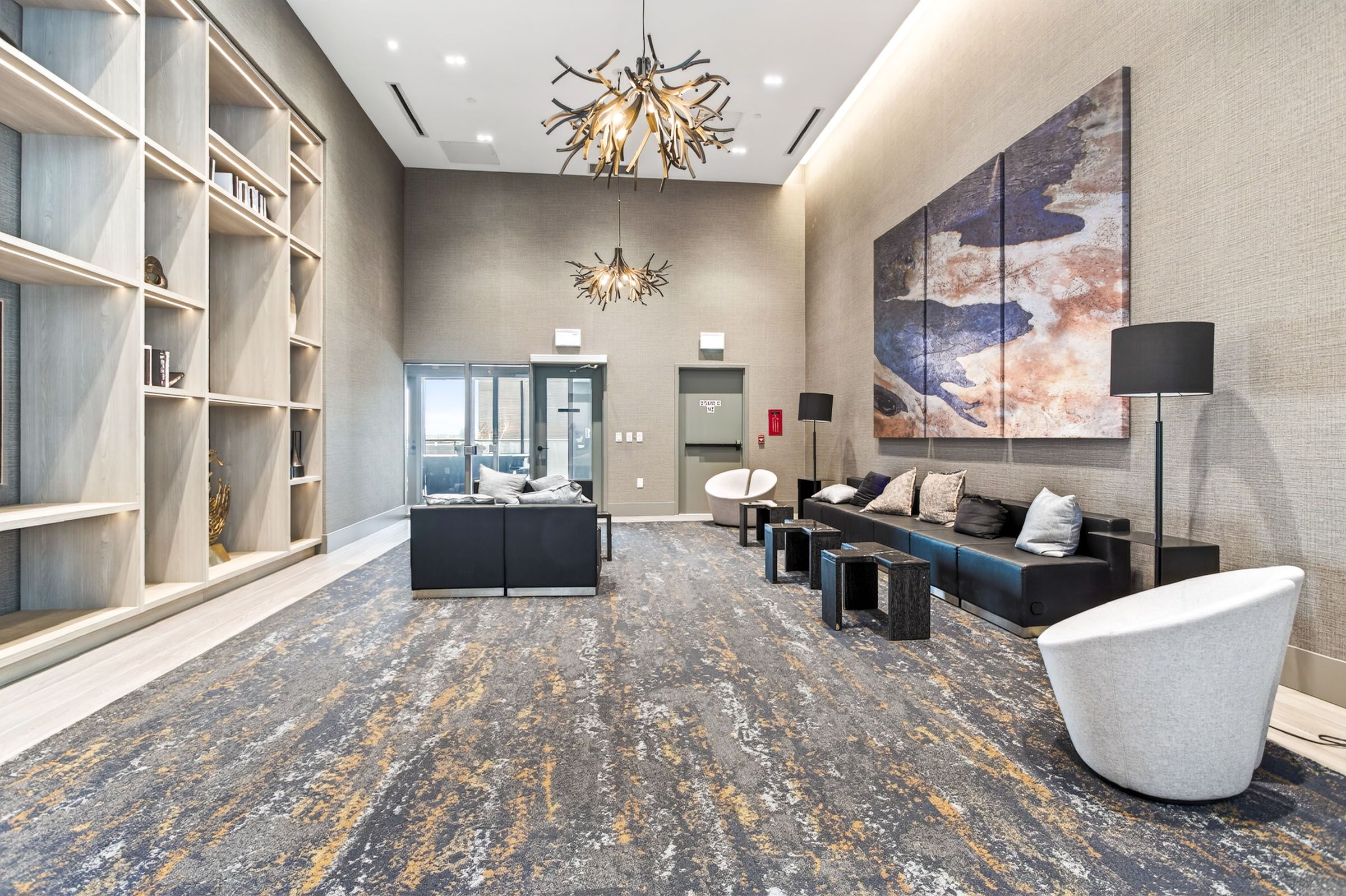 • Bright and spacious layout with 9-foot ceilings and floor-to-ceiling windows.