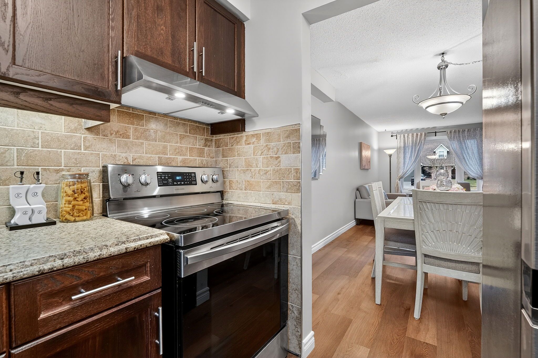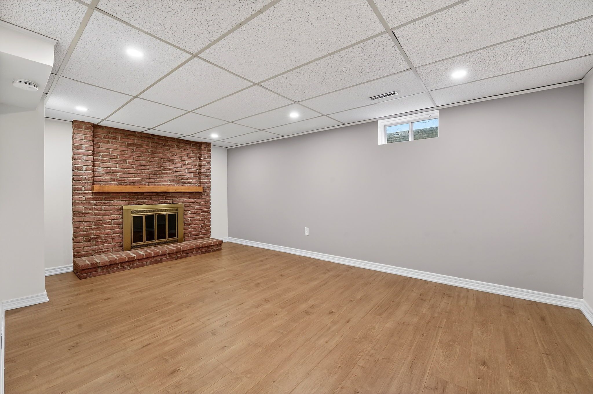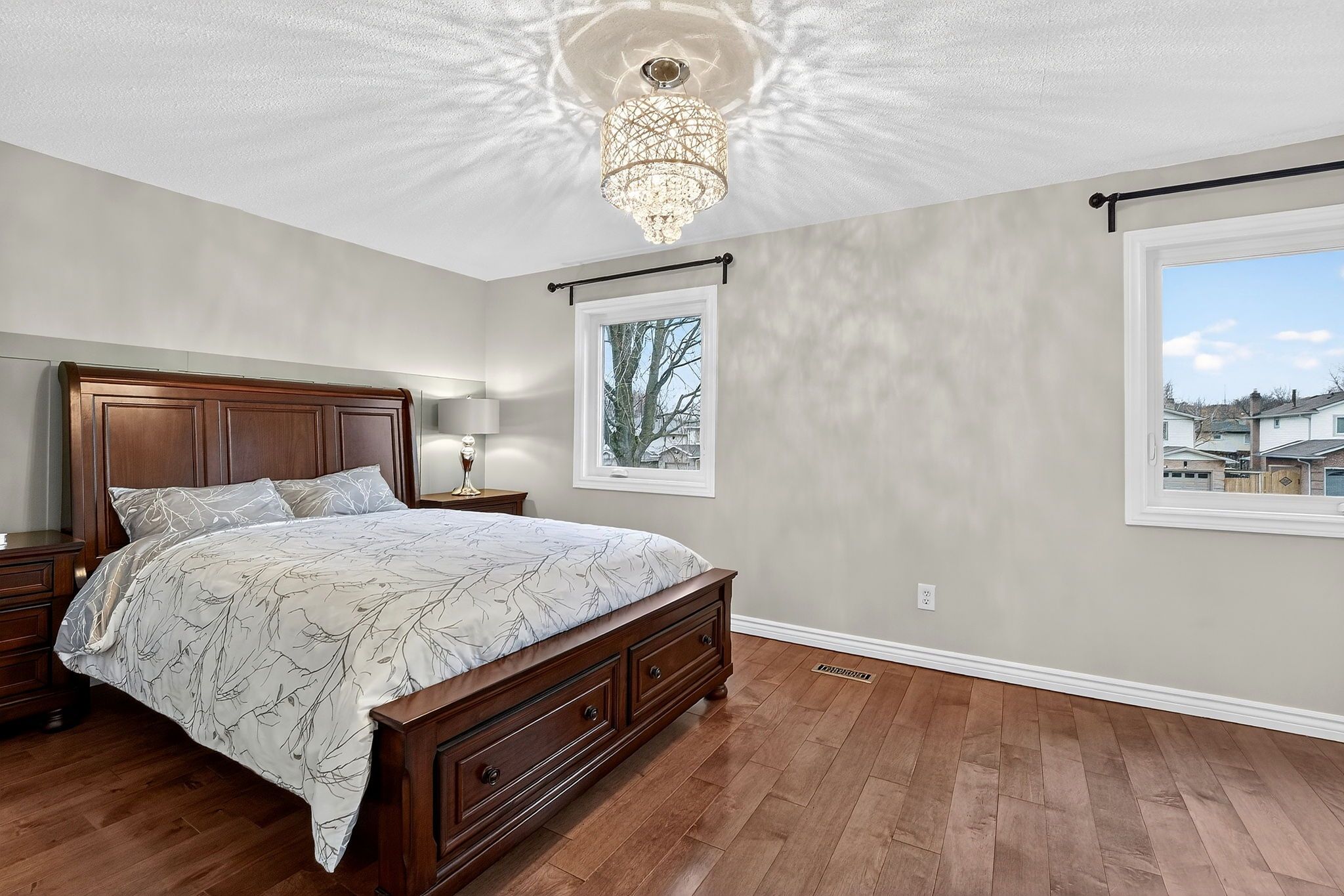This beautifully updated home offers over 1,750 sq. Ft. Of finished living space in the sought-after brant hills neighbourhood, which is perfect for families, those who are downsizing, or first-time buyers. This thoughtfully renovated and freshly painted home offers major updates, including windows, roof, beautifully updated bathrooms, stainless steel kitchen appliances, and professional landscaping. This home blends modern style with everyday functionality. The open-concept main floor features durable luxury vinyl plank flooring and a renovated powder room. The functional kitchen offers a breakfast area with patio door access to the fully fenced backyard, creating a seamless space for indoor-outdoor living. Step outside to a backyard retreat complete with a beautiful large patio area perfect for relaxing, hosting summer bbqs, and entertaining. Upstairs, you'll find hardwood throughout, with three spacious, light-filled bedrooms and the stylishly renovated main bathroom featuring tiled flooring, a tiled shower-tub, modern finishes, and ample storage. The finished basement expands the living space with luxury vinyl flooring, a large family room with fireplace, and a versatile flex area ideal for a home office, home gym, or recreation room. Ideally located close to highways, schools, parks, golf courses, transit, shopping, and everyday amenities in the brant hills community.