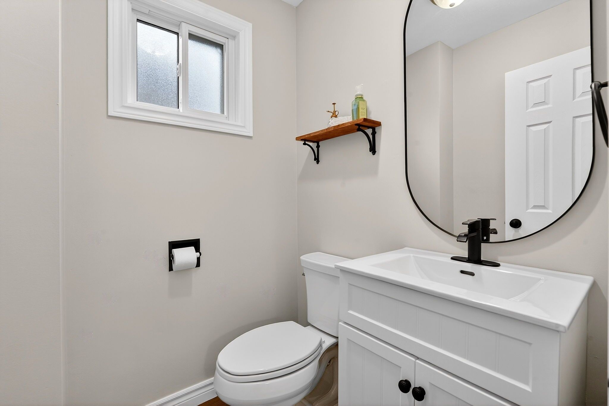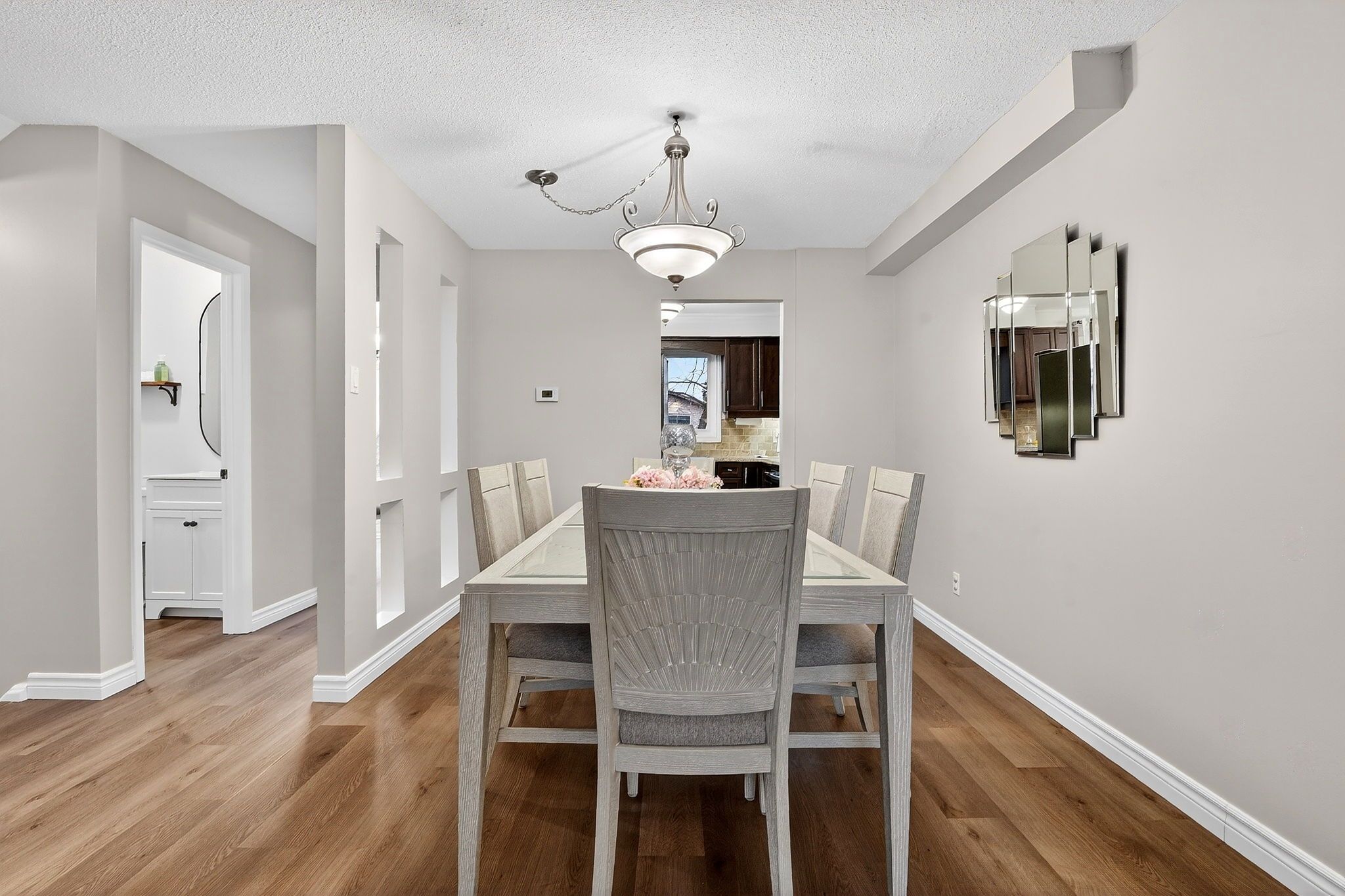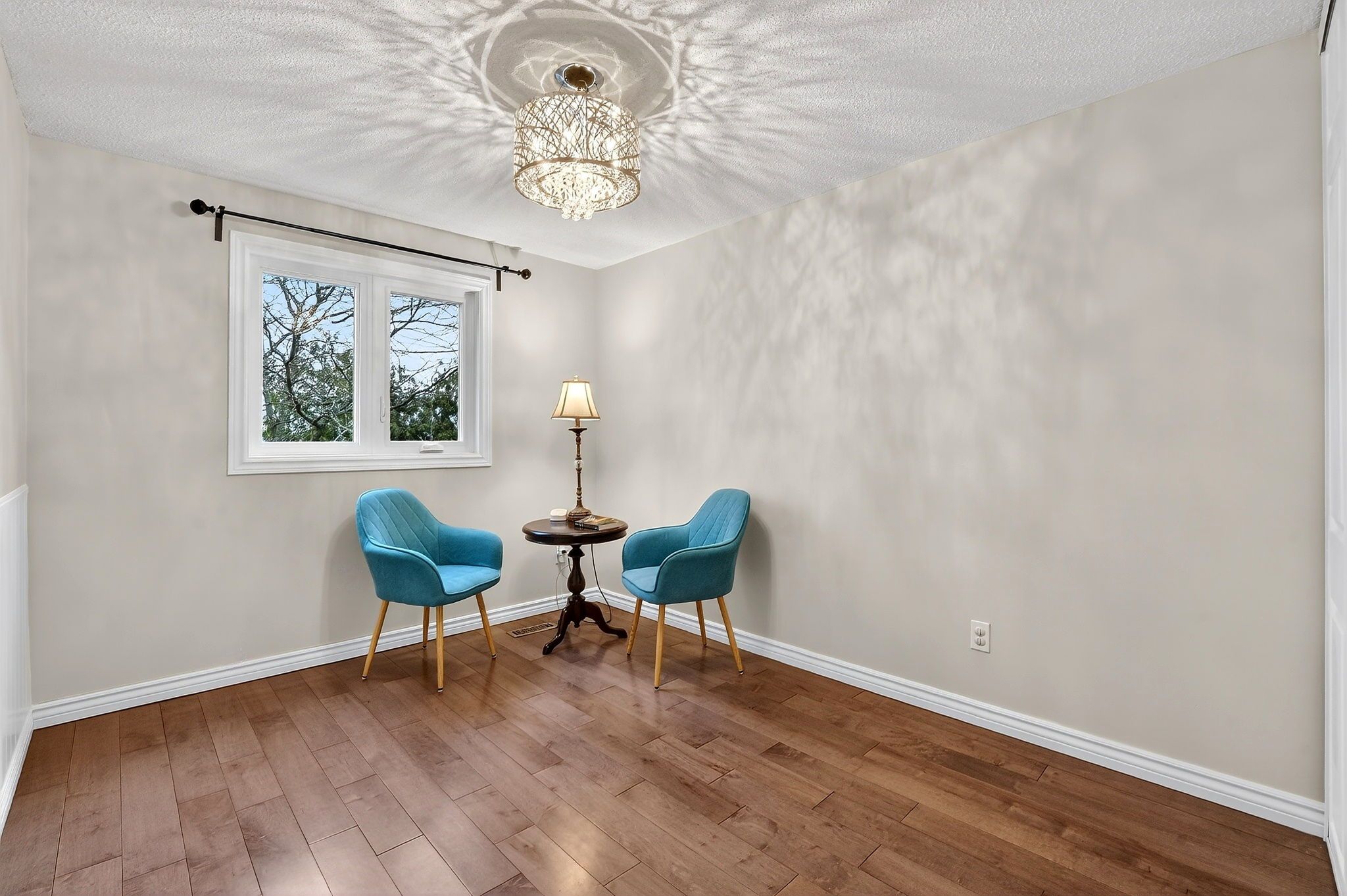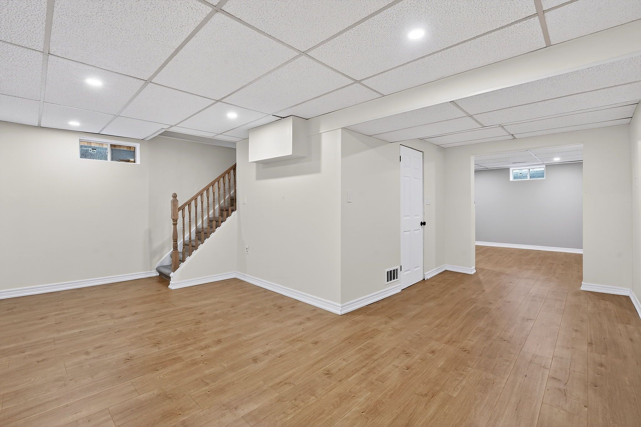 This beautifully updated home offers over 1,750 sq. Ft. Of finished living space in the sought-after brant hills neighbourhood, which is perfect for families, those who are downsizing, or first-time buyers. This thoughtfully renovated and freshly painted home offers major updates, including windows, roof, beautifully updated bathrooms, stainless steel kitchen appliances, and professional landscaping. This home blends modern style with everyday functionality. The open-concept main floor features durable luxury vinyl plank flooring and a renovated powder room. The functional kitchen offers a breakfast area with patio door access to the fully fenced backyard, creating a seamless space for indoor-outdoor living. Step outside to a backyard retreat complete with a beautiful large patio area perfect for relaxing, hosting summer bbqs, and entertaining. Upstairs, you'll find hardwood throughout, with three spacious, light-filled bedrooms and the stylishly renovated main bathroom featuring tiled flooring, a tiled shower-tub, modern finishes, and ample storage. The finished basement expands the living space with luxury vinyl flooring, a large family room with fireplace, and a versatile flex area ideal for a home office, home gym, or recreation room. Ideally located close to highways, schools, parks, golf courses, transit, shopping, and everyday amenities in the brant hills community.