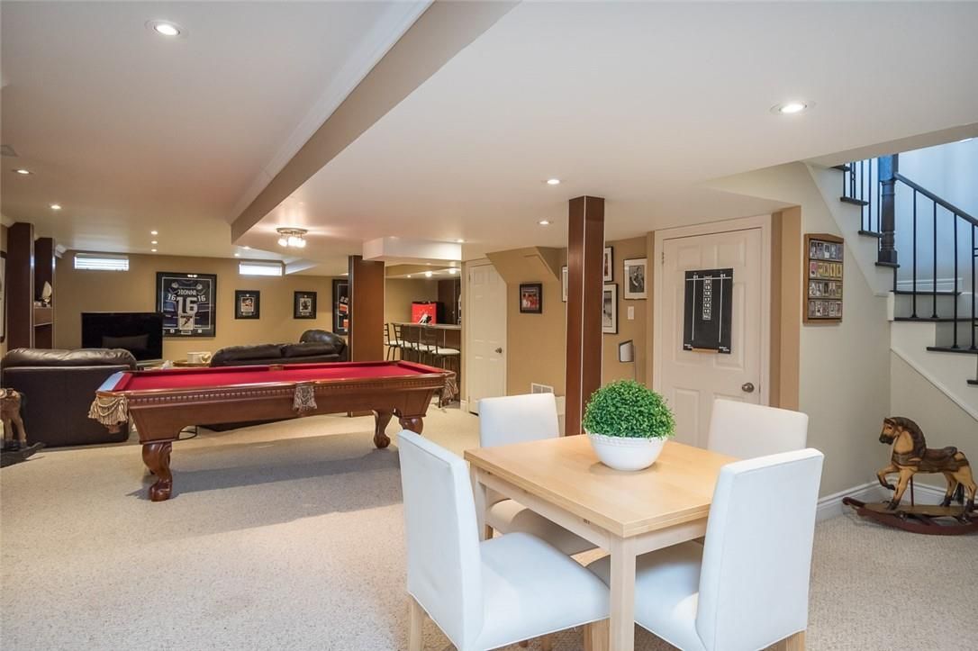 • Finished lower level offers a recreation area and built-in bar.