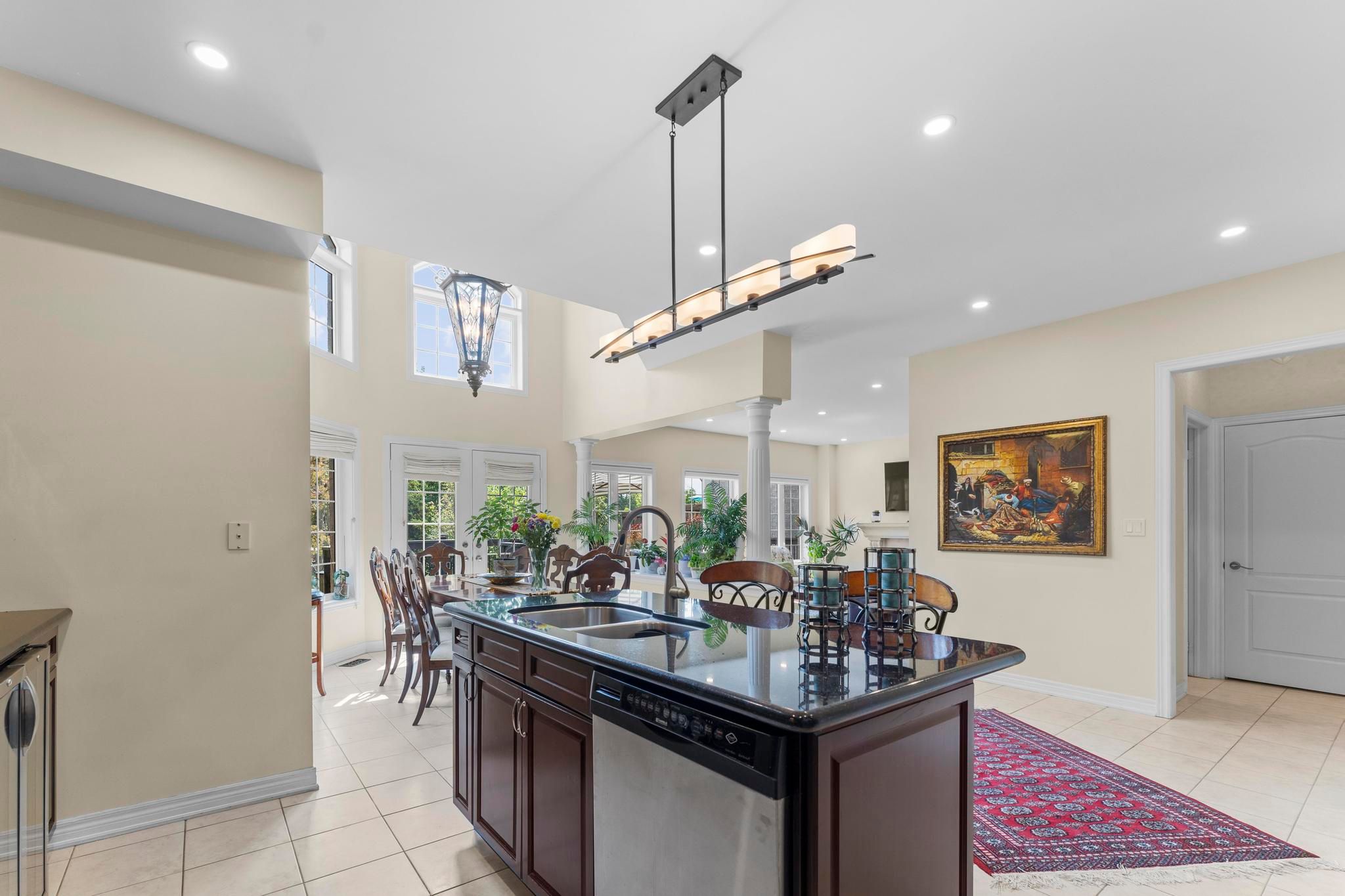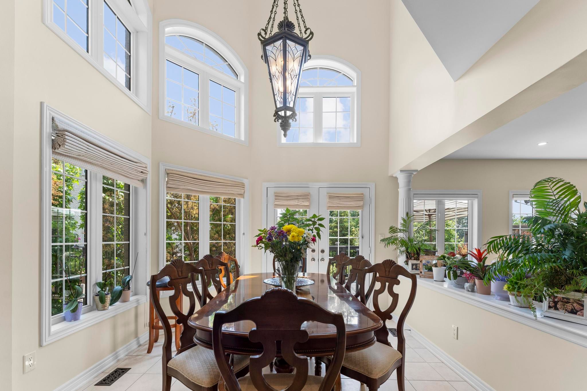 • Open-concept design with soaring ceilings and rich hardwood floors.