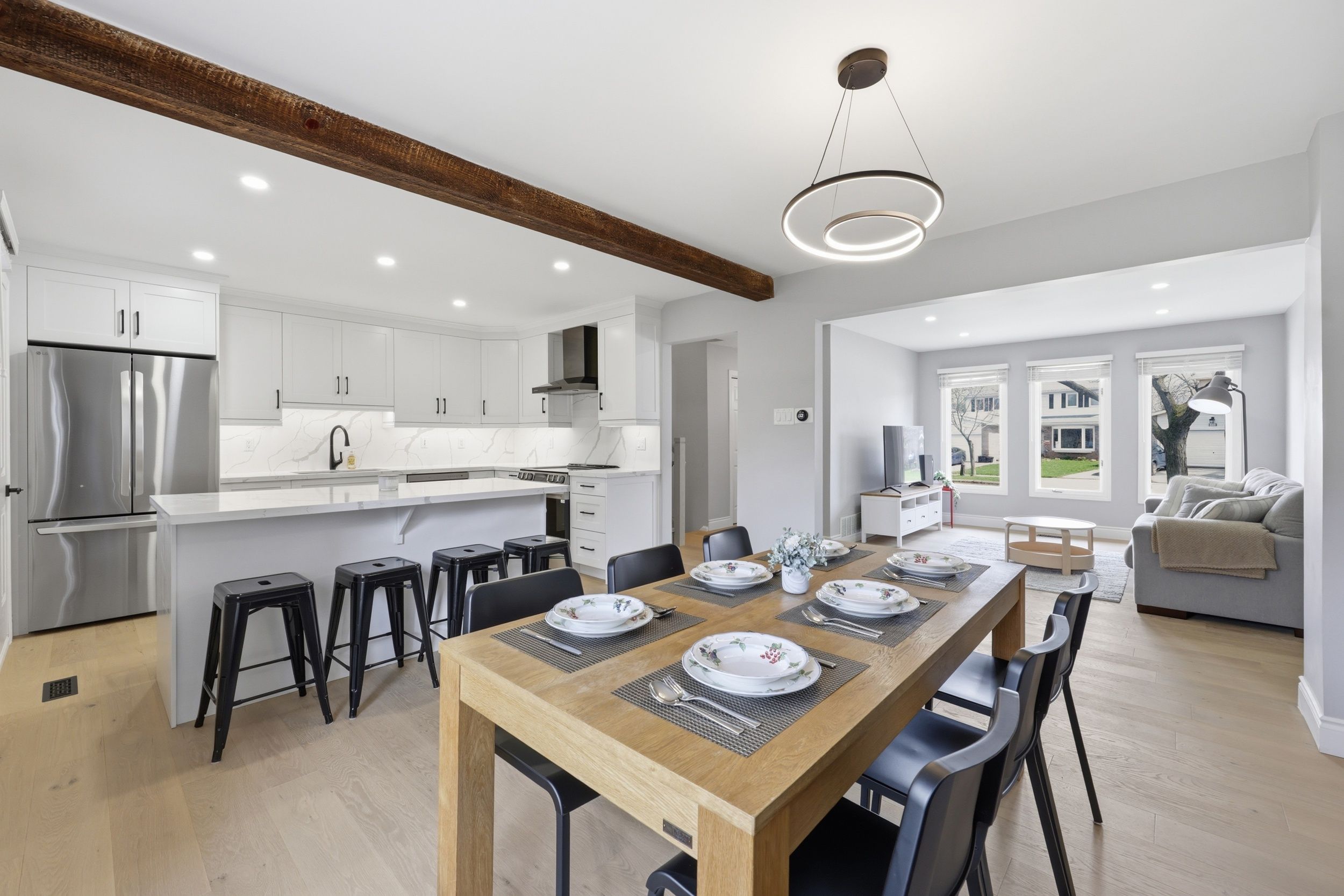 Welcome to 2458 cavendish dr in burlington's highly sought-after brant hills community - a beautifully updated detached 4-level sidesplit set on a generous lot in a quiet, family-friendly neighbourhood. This bright and spacious home offers 3+1 bedrooms and 2+1 bathrooms, ideal for growing families or multi-generational living. Extensively renovated with approximately $130k in upgrades, this home has been updated from top to bottom, inside and out. Improvements include the roof, gutters, exterior siding, flooring, stairs, bathrooms (including an added lower-level bathroom), garage insulation, all appliances, and more - delivering both peace of mind and impressive curb appeal. Inside, enjoy a functional layout with a sun-filled living space, an updated kitchen with ample dining area, and generously sized bedrooms. The finished lower level offers versatile additional living space, perfect for a family room, home office, or guest suite. Step outside to a large private backyard with a deck - ideal for entertaining or relaxing. The double car garage and private double driveway provide ample parking and everyday convenience. Located just minutes to parks, schools, shopping, and all essential amenities, this home offers an exceptional blend of comfort, convenience, and lifestyle in one of burlington's most established neighbourhoods.