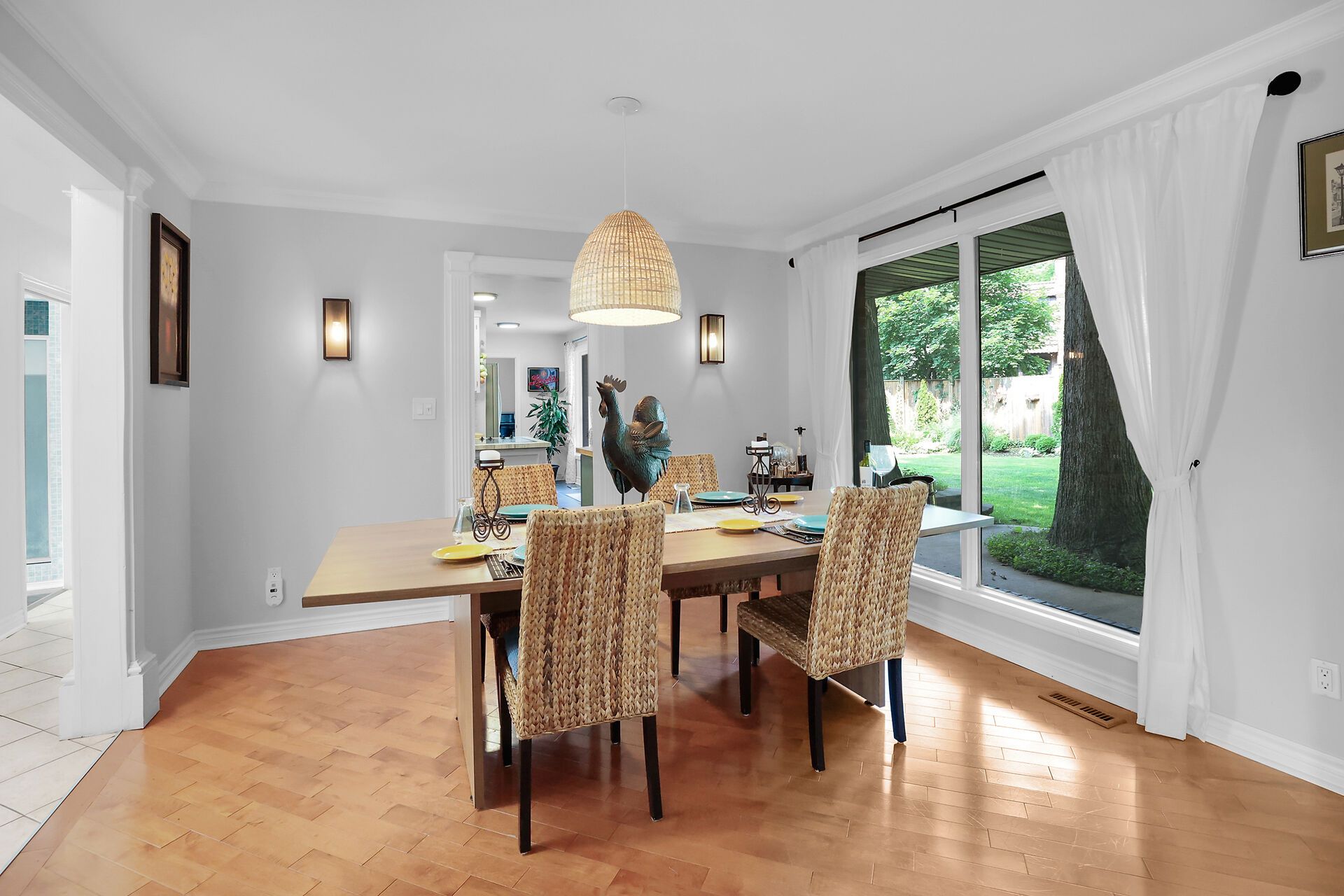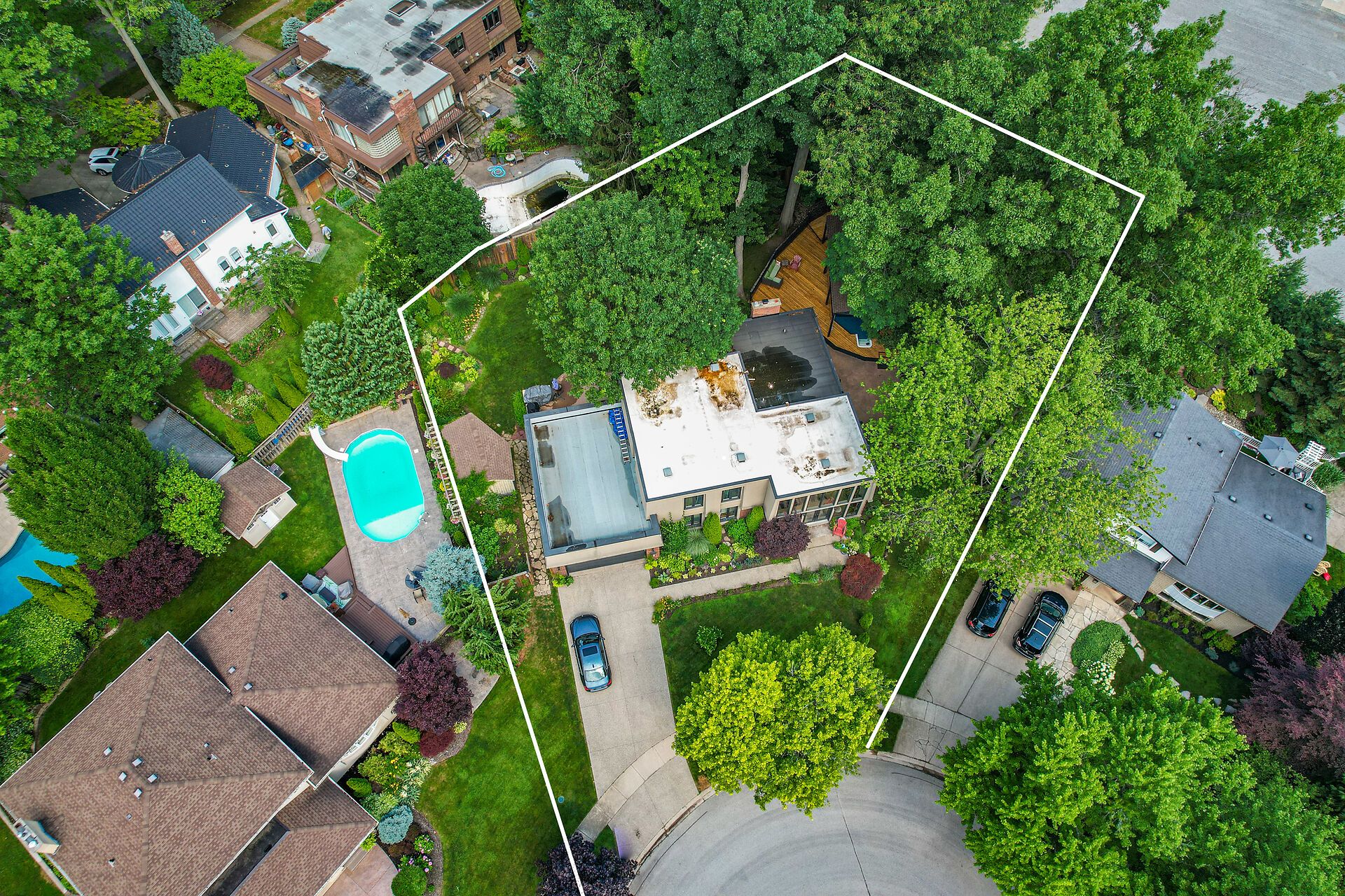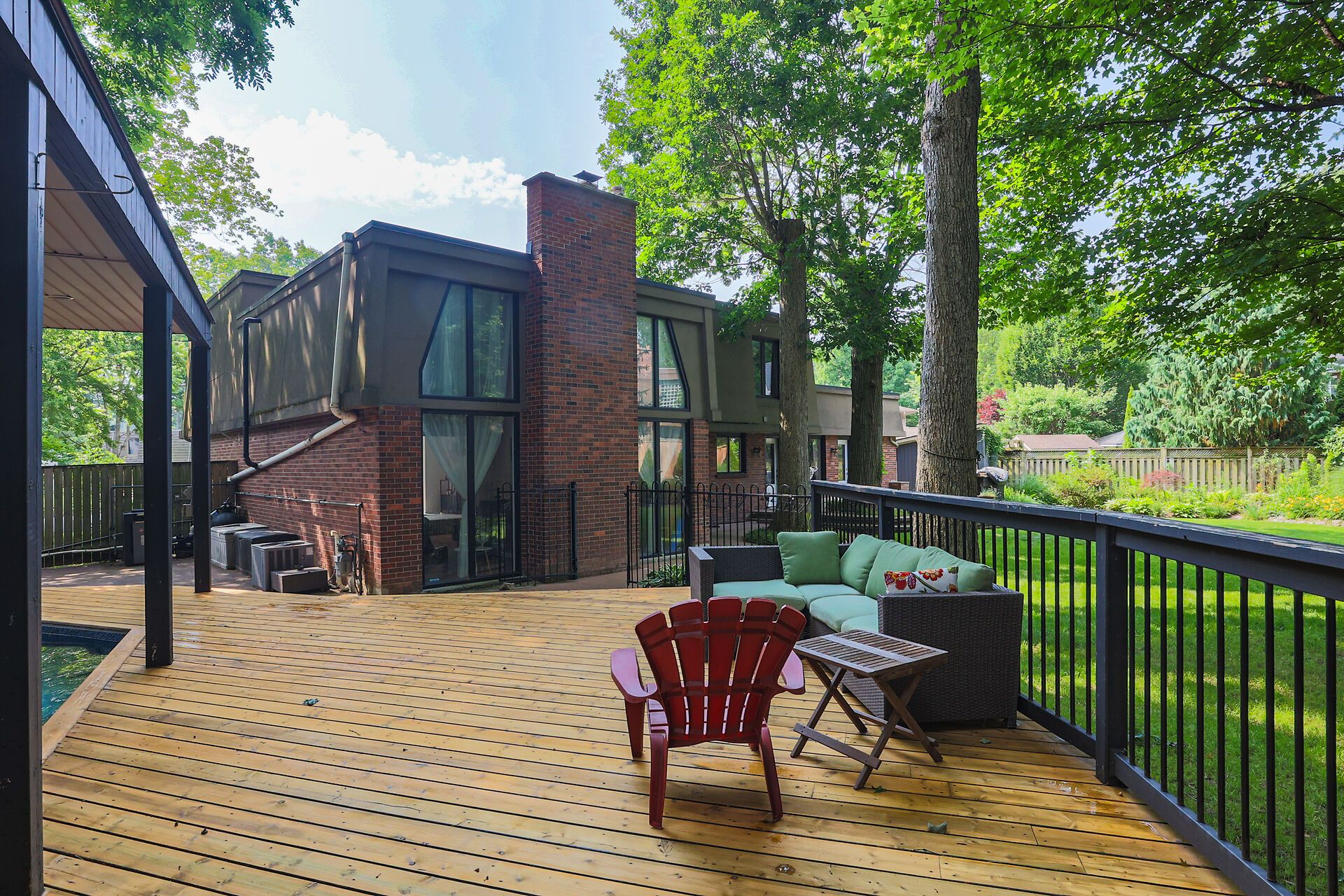 New roof! Welcome to the highly desired north end in rolla woods sitting on the border of niagara falls and niagara on the lake wine country in a quiet mature cul-de-sac. Walking into this home's foyer is breathtaking with the floor to ceiling windows and a winding staircase, natural light emanates and gives life throughout this entire home. This one off contemporary home design sits on a large natural wooded lot not found in many new subdivisions, giving off vibes of small town life with a cottage country feel in an upscale neighbourhood. This beautifully updated 3-bedroom, 3-bathroom home has a very spacious and sprawling open concept on the main floor with amazing light and 360 degree views of the pool area and backyard while offering a blend of functionality, comfort and style throughout. On the main floor you will discover 20 foot vaulted ceilings with a warm and inviting calm interior. The heart of the home features a rare fully functional granite wood-burning fireplace surrounded by the spacious main floor living room, perfect for entertaining and relaxing. Upstairs,you'll find three generously sized bedrooms including a serene primary suite with direct access to the main bath with a gorgeous new large walk-in rain shower. Set in a parklike setting is your private and quiet backyard oasis, almost cottage like, complete with an on-ground pool surrounded by a custom wood deck, ideal for summer entertaining or simply unwinding peacefully. The downstairs has been 100 % completely renovated with a seated wet bar and a cozy gas fireplace, a kids play room or extra storage area and an additional 3rd bathroom with a walk-in shower. The double garage offers plenty of storage and,with 2 points of entry into the home, one being a very generous mud room for extra space and storage that connects directly to the kitchen which can also act as a large pantry. Don't miss this opportunity to own a move-in ready home in the soughtafter north end of niagara falls and wine country.