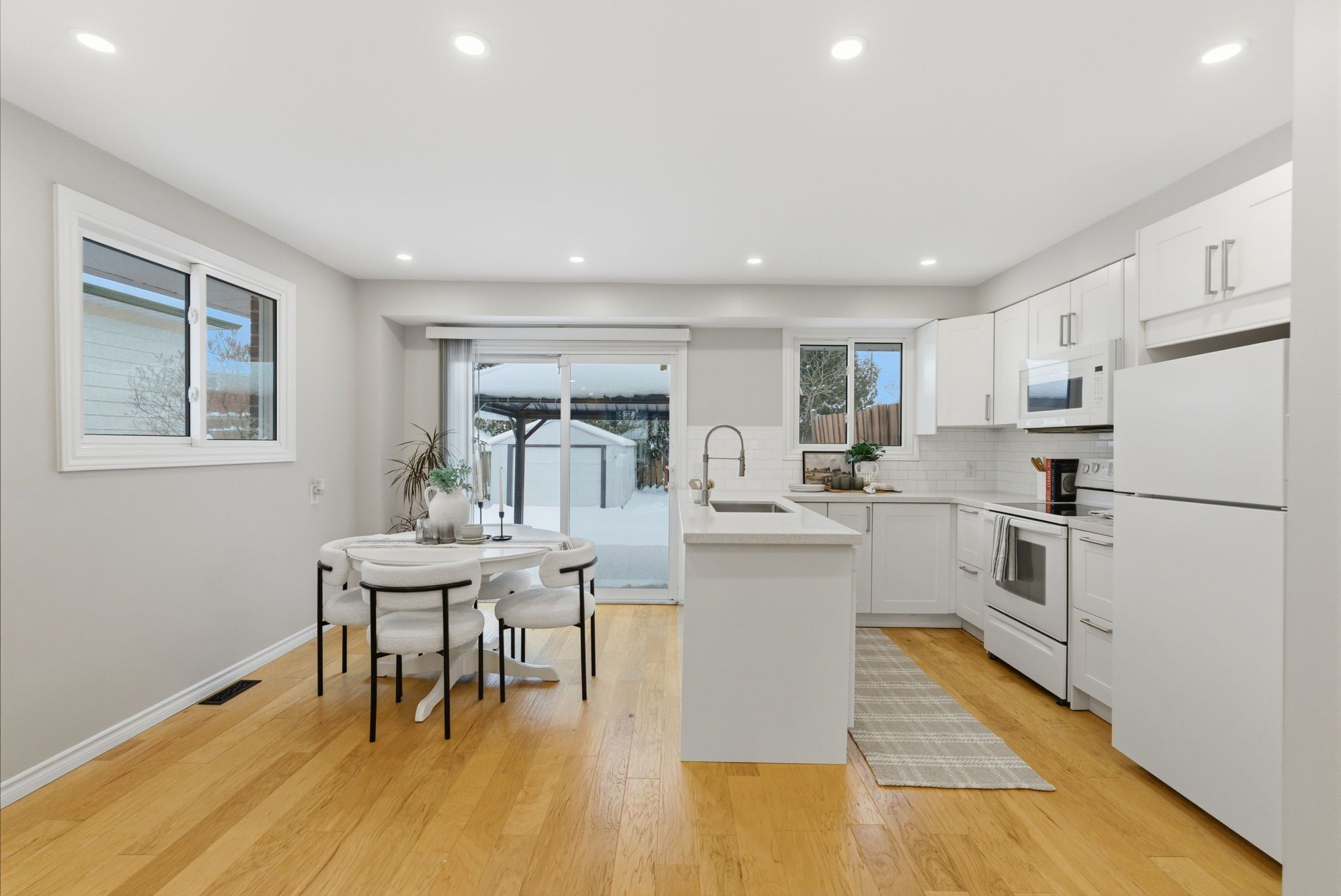 A fantastic opportunity to own a move-in ready home in a great oshawa neighbourhood! Thoughtfully updated and exceptionally well maintained, this home offers the rare combination of modern finishes, functional space and true turnkey living with no renovations required. The main floor has been fully opened up to create a bright, open-concept layout that feels welcoming and spacious. The updated kitchen features quartz countertops and flows seamlessly into the large living and dining area, ideal for both everyday living and entertaining. A walkout from the kitchen leads to the backyard. Large windows bring excellent natural light throughout the main level. Upstairs offers three well-sized bedrooms and a renovated four-piece washroom. The fully finished basement adds valuable living space with a large recreation room and a bonus three-piece bathroom featuring a glass shower, perfect for guests, teens or a home office setup. This home is exceptionally clean, tidy and truly move-in ready- with fresh paint, upgraded modern lighting and a bright, east-facing exposure. Enjoy outdoor living on the deck with gazebo, plus the convenience of a shed and detached one-car garage. The extra-deep lot also allows for ample parking, with a driveway that comfortably fits four vehicles. Mechanical updates include a new air conditioner in 2024, roof approximately 2017, windows updated between 2018 and 2024. A well-priced opportunity in a sought-after area, offering space, style and peace of mind!