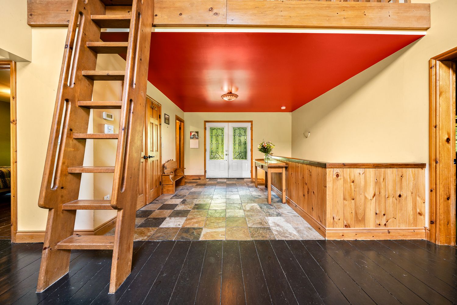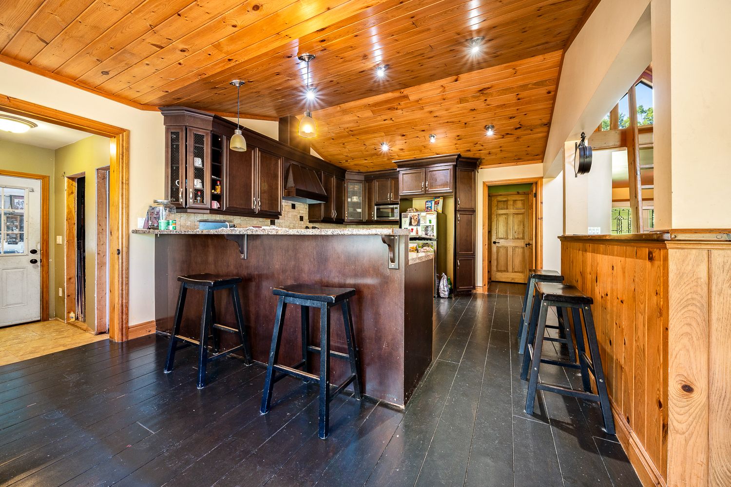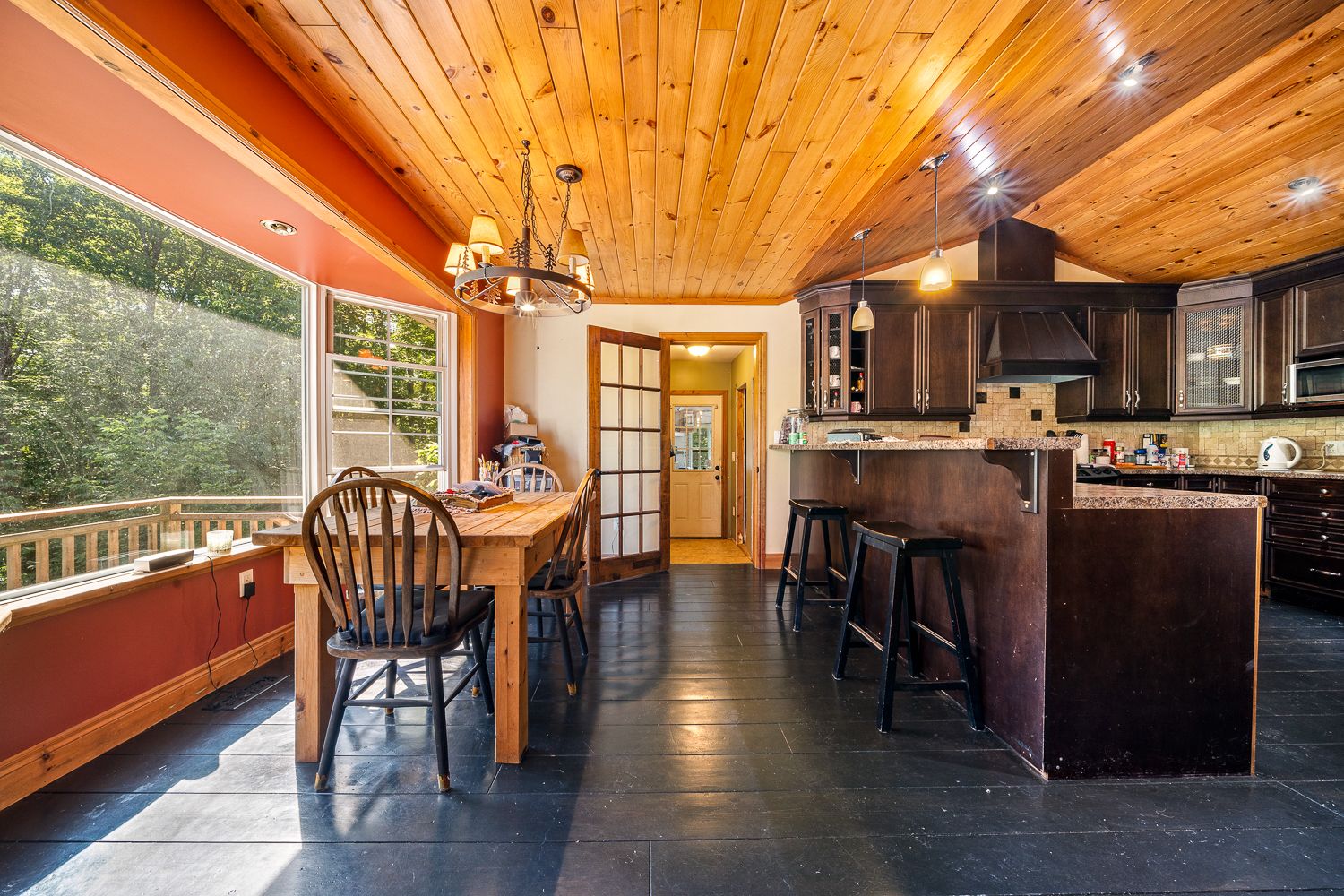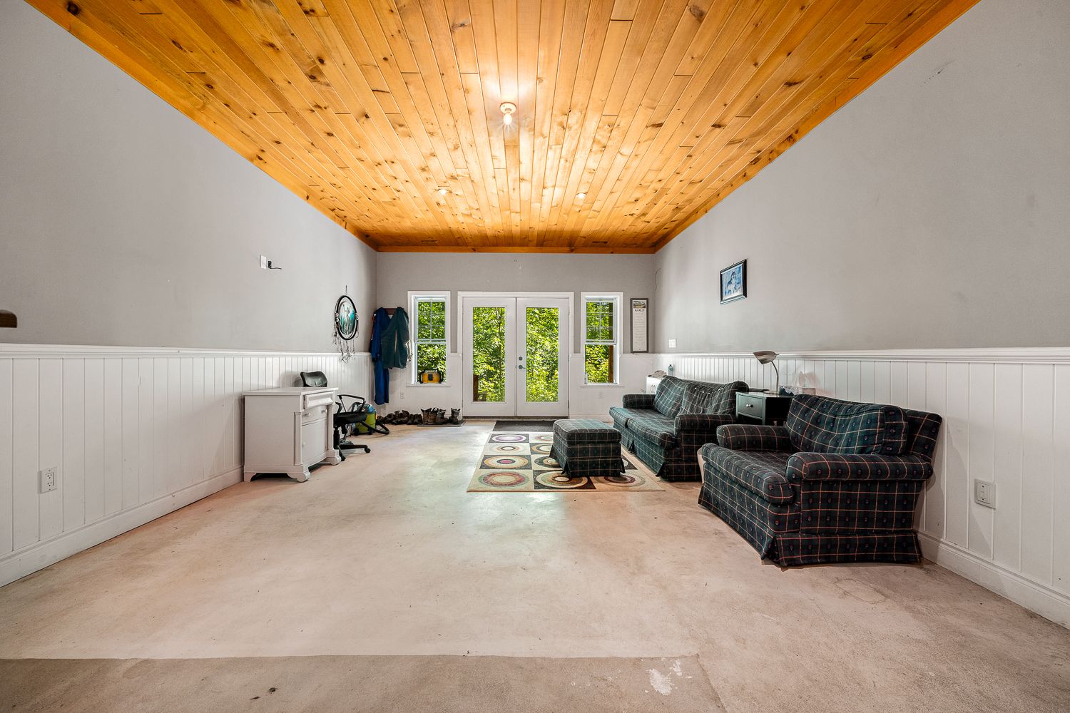 • Main floor features open-concept layout with cathedral ceilings.
