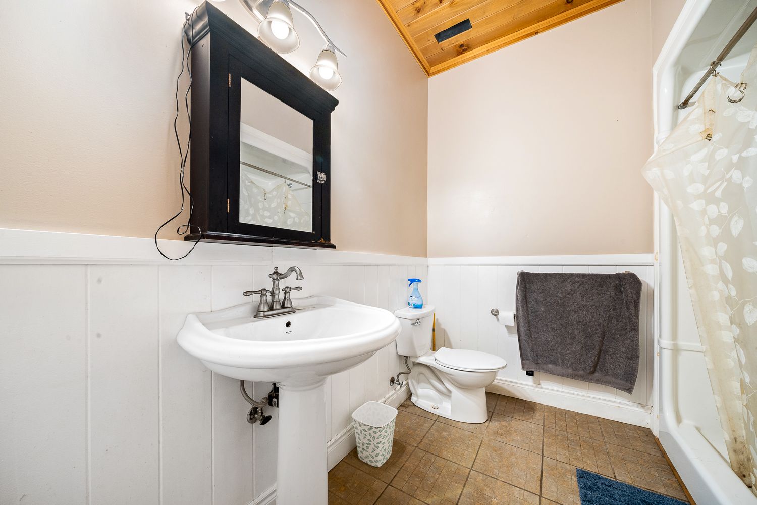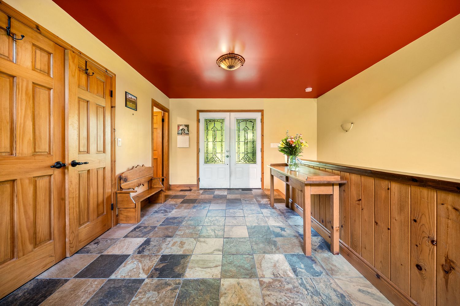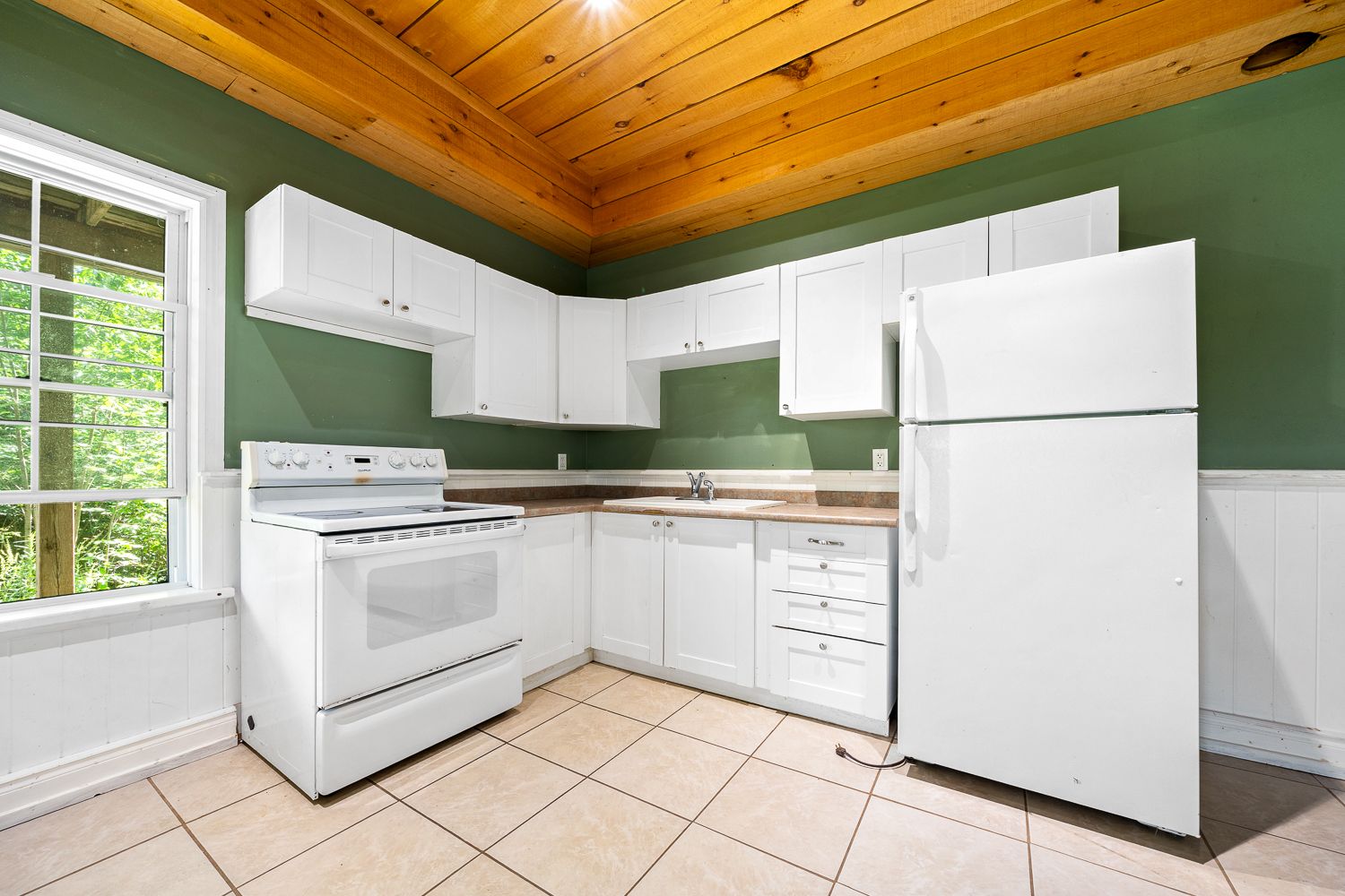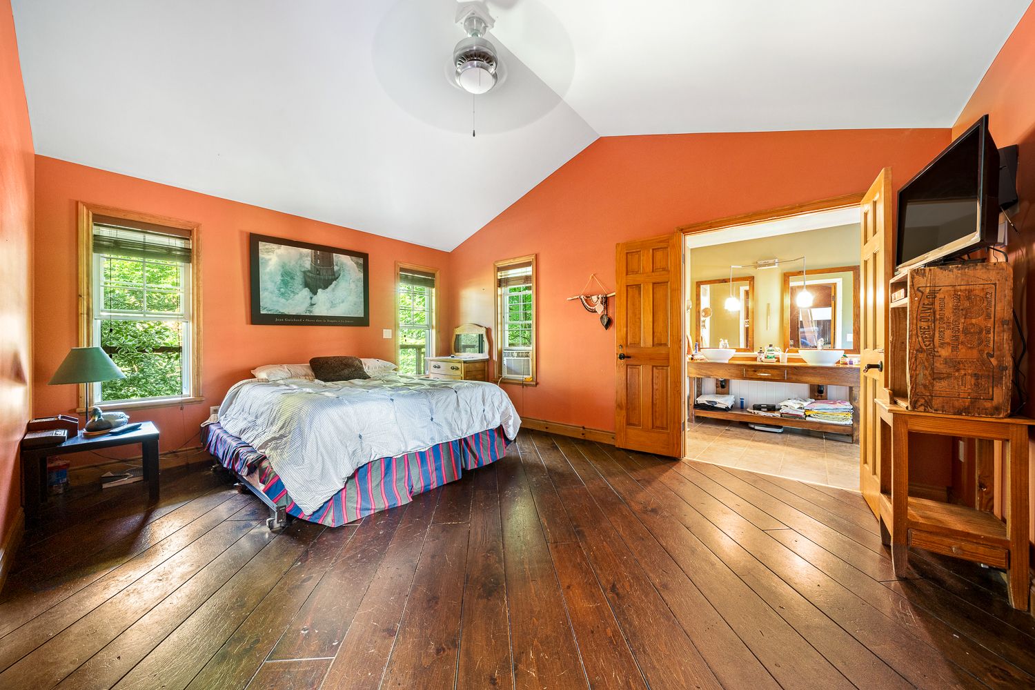 • Main floor features open-concept layout with cathedral ceilings.
