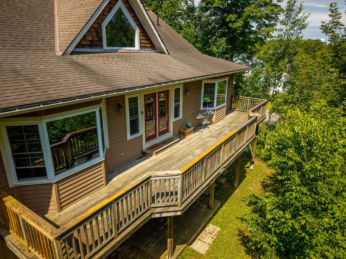 • Expansive decks and large garage with ample parking space.