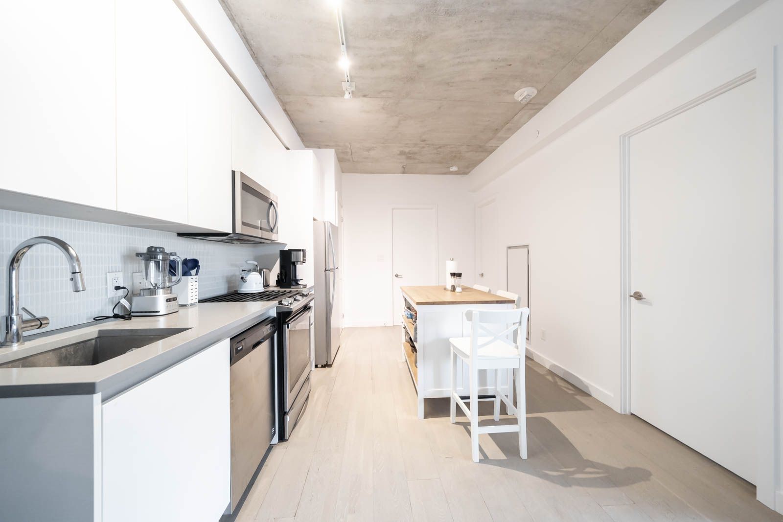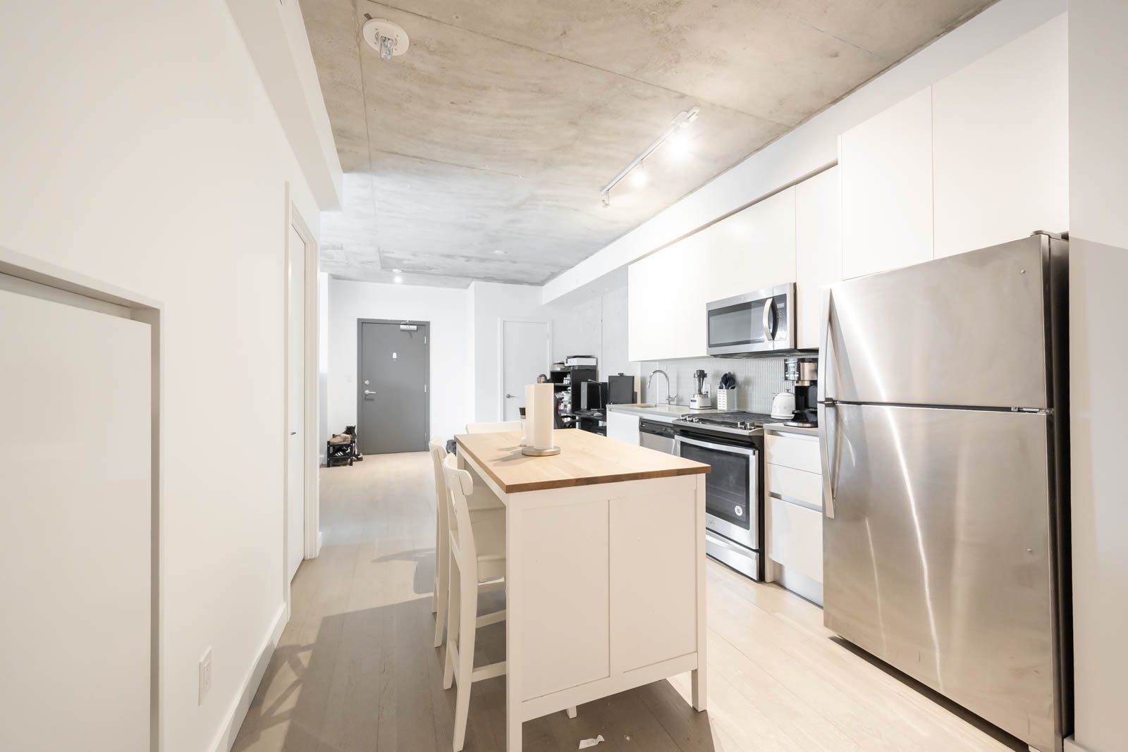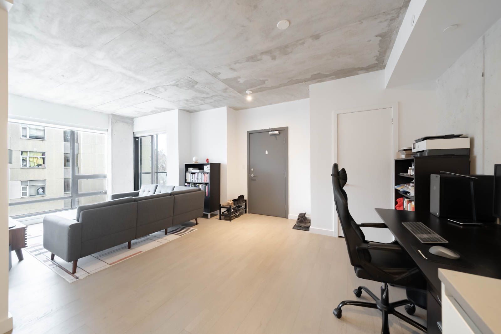 Leslieville loft living! Spacious 2 bedroom loft features a modern kitchen and bathroom, exposed concrete and terrace. Light filled, west facing views of jimmy simpson park. This building includes premium amenities such as bike storage, a party room, a locker, and parking. This is the perfect blend of modern comfort and urban convenience. Boutique shops/cafes everywhere: bonjour brioche, craig's cookies, ed's real scoop, rowe farms, and ttc right at your door. This is your chance to live in one of toronto's most sought-after communities!