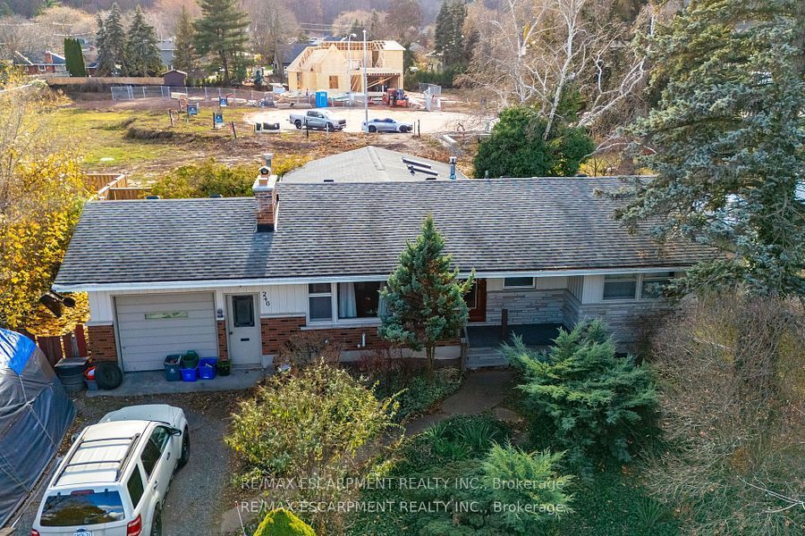 This charming 2-bedroom bungalow, set on just under half an acre of mature, beautifully landscaped grounds in grimsby, on, offers both tranquility and convenience. The home features a spacious family room with a cozy gas potbelly stove and vaulted ceilings, creating a welcoming space for relaxation. The formal living room, complete with a wood-burning fireplace, is perfect for family gatherings and entertaining. Located just minutes from the hospital, qew, and go transit, this property is ideally positioned for easy access to major routes. Its just 30 minutes to the us border, 20 minutes to hamilton, and an hour to downtown toronto. Families will appreciate being close to the new secondary school. Enjoy the privacy of a large lot while still being close to all the amenities and transportation options you need. This is a fantastic opportunity to own a well-maintained home in a desirable location.