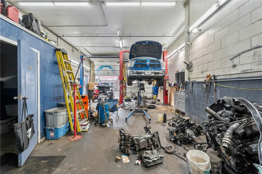 Fantastic opportunity in a busy downtown hamilton location! This versatile building offers excellent visibility and endless potential. Currently set up with a fully equipped mechanic shop and two self-contained apartments. The shop features 3-phase power, two drive-in doors at the front and two at the rear, car lot parking for up to 15 vehicles, two hoists, an additional 20' x 19' tire storage area, and two furnaces for year-round comfort. The property is fully fenced for added security.