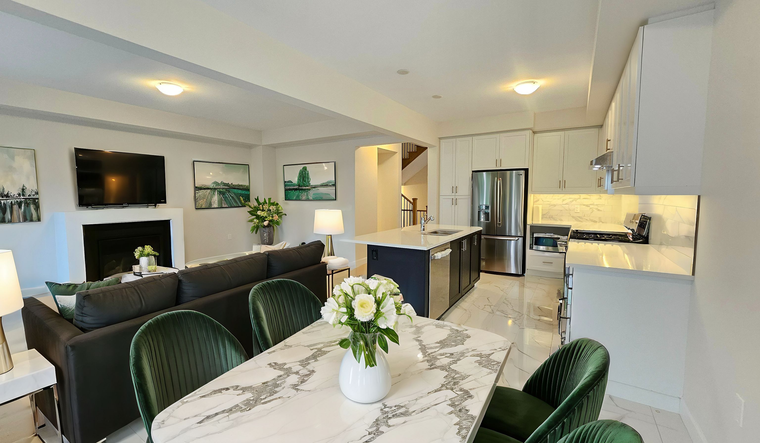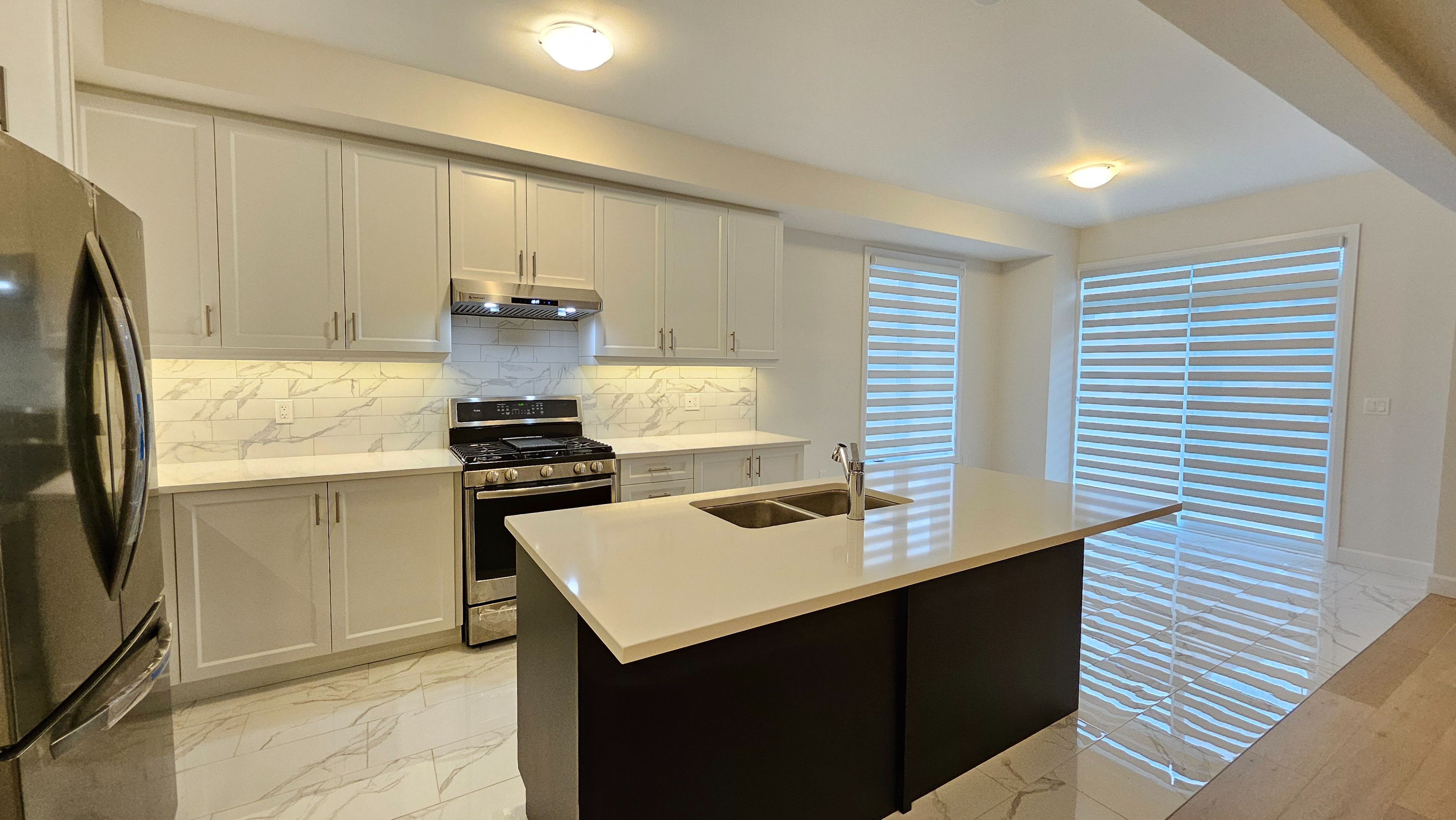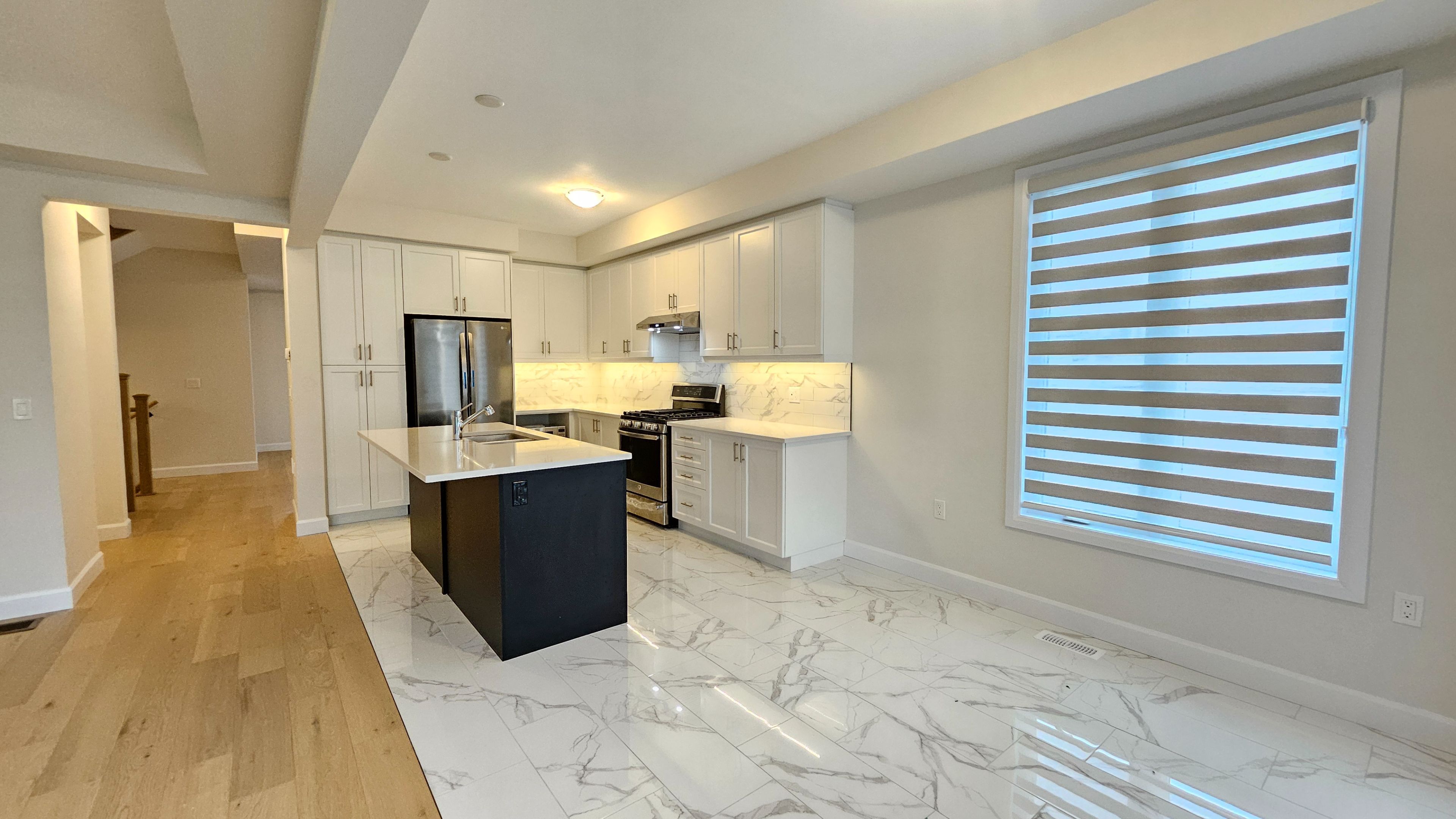• Modern kitchen with quartz countertops and new stainless steel appliances.