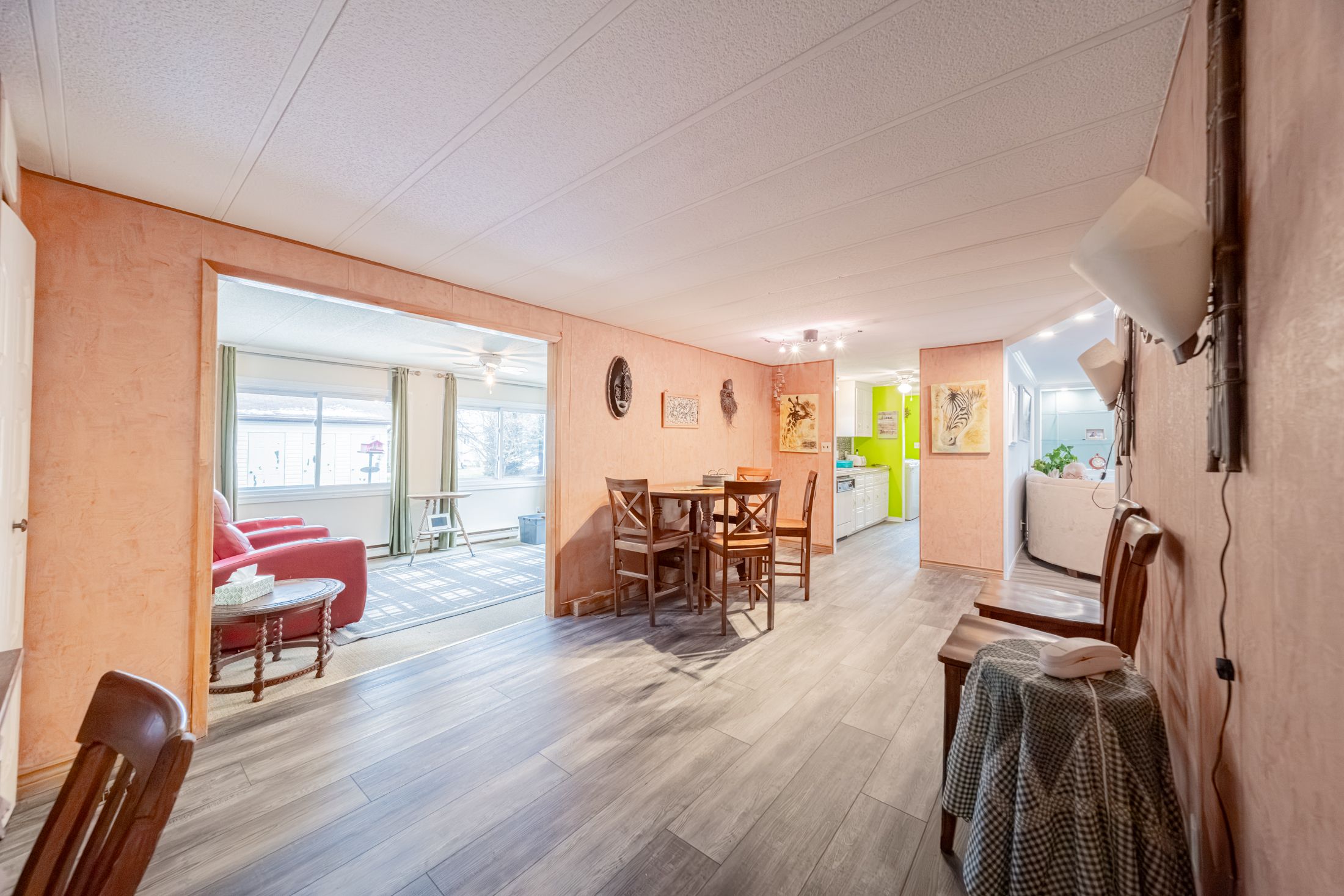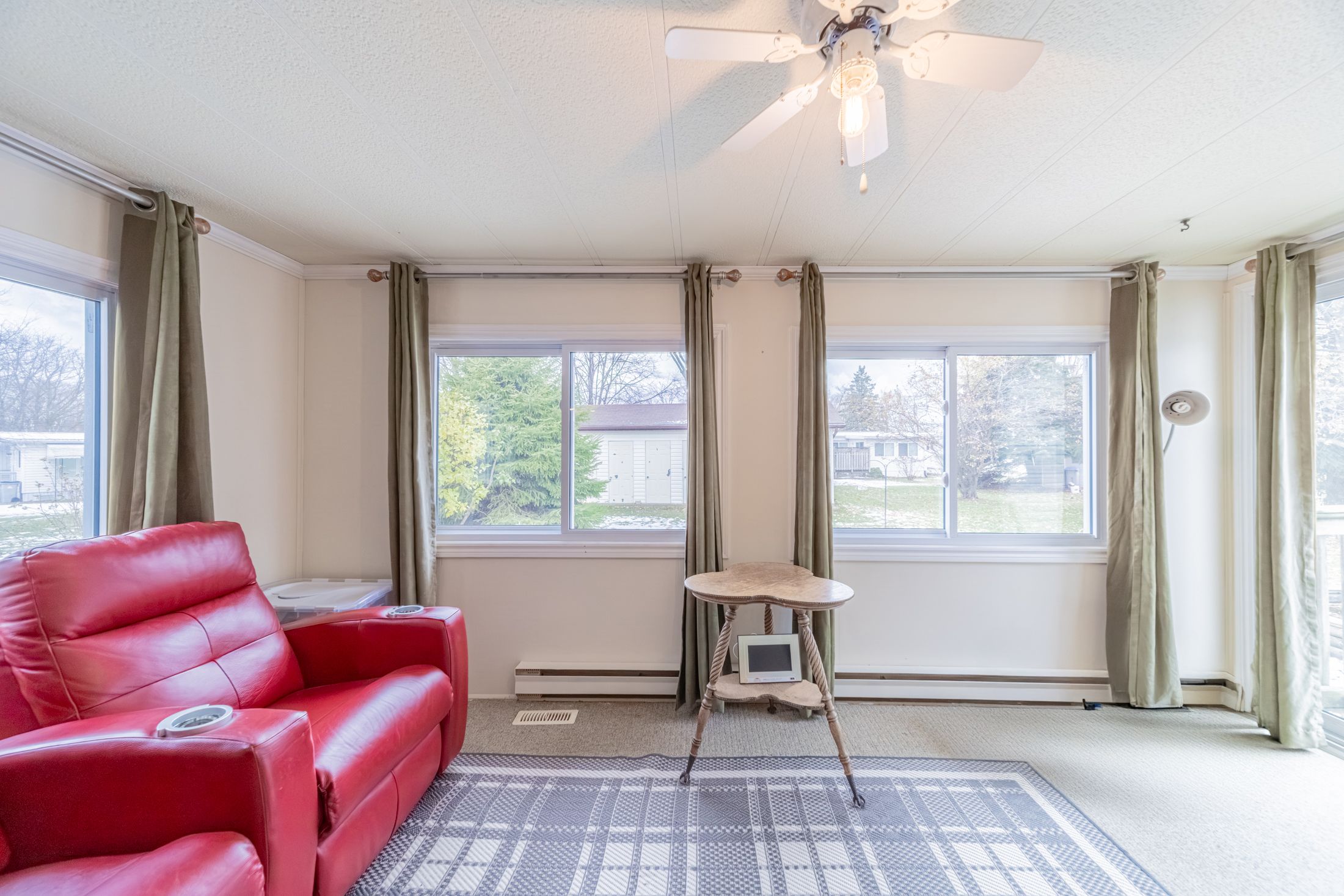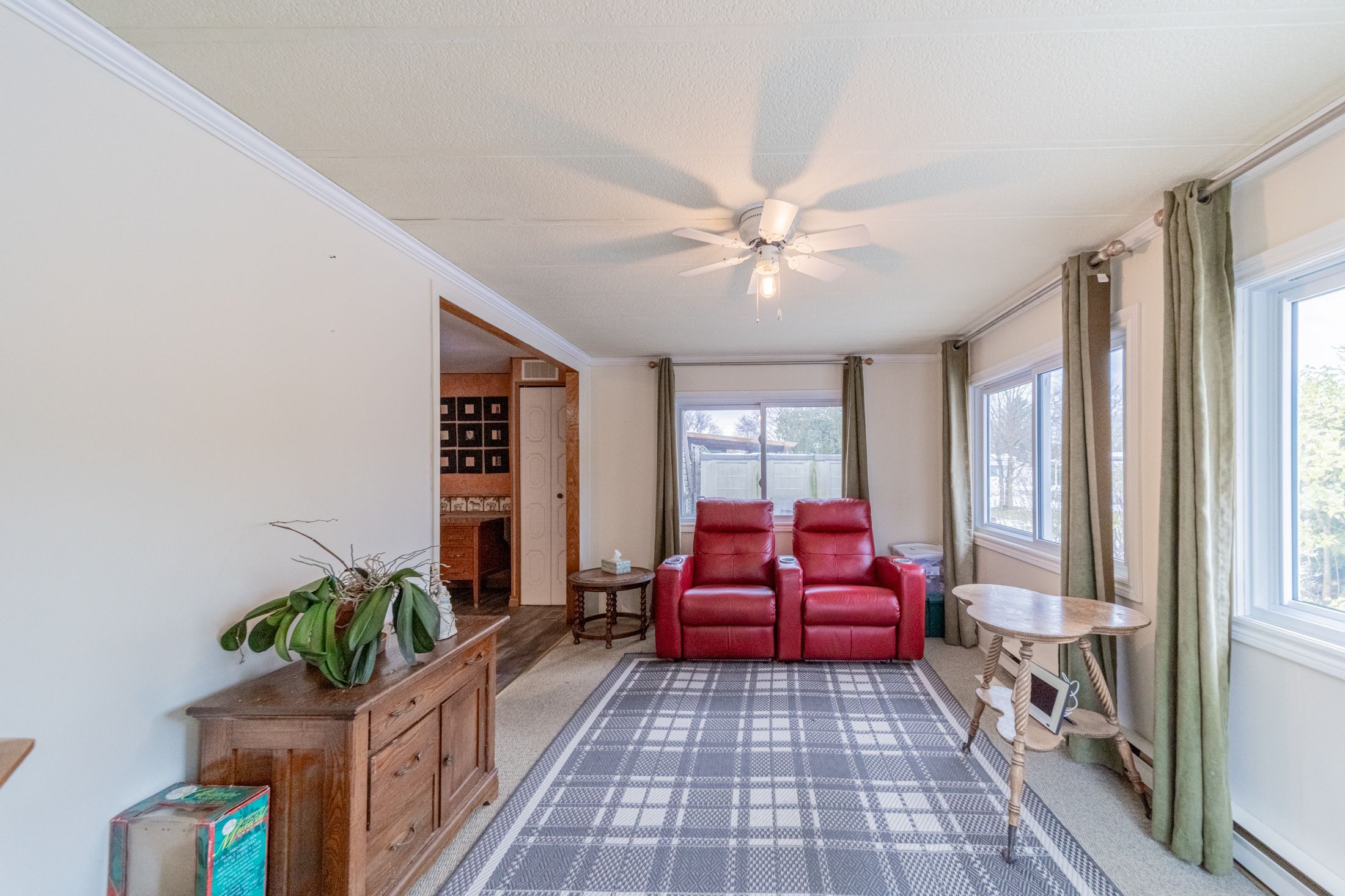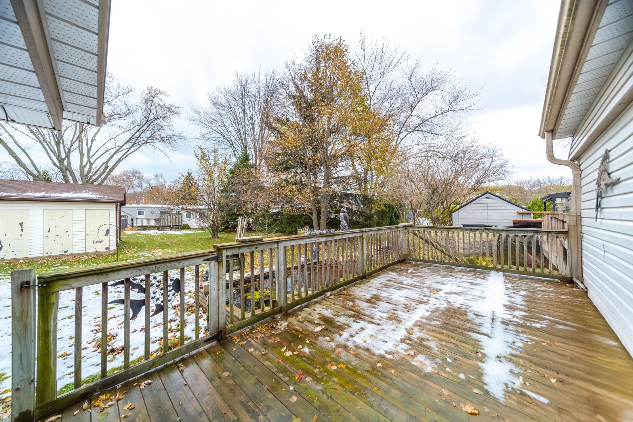 Unreal value in grand bend's sought-after 55+ community of grand cove. Discover a lifestyle where resort-style amenities are abundant and lake huron's world-class beaches and sunsets are just a short walk away. This 1,132 sq ft four-season, fully winterized bungalow offers exceptional comfort and convenience with 2 bedrooms, 2 bathrooms, a formal dining room, cozy family room with fireplace and custom timber and glass built-ins, and a bright sunroom with glass sliding doors leading to a spacious back, deck perfect for entertaining. The crisp white galley kitchen truly stands as the heart of the home, complete with an adjacent laundry area and rear entrance. A large primary suite includes a walk-in closet and a updated 4-piece bathroom. Thoughtful updates enhance the property, including living/dining/kitchen flooring, primary bathroom, and more. All appliances are included, making this an easy move-in opportunity. Enjoy a garden shed and common storage lockers outback to accommodate your storage needs . Grand cove provides an incredible lineup of amenities: a security gate, heated saltwater pool, community centre with full kitchen, fitness facility, library with internet, billiards, darts, dance floor, shuffleboard, bocce, lawn bowling, tennis, pickleball, woodworking shop, hiking trails, and a community garden. It's the perfect setting for those seeking both comfort and connection. Just a short stroll to the beach, restaurants, and shopping. Land lease: $850/month + house taxes. A fantastic lifestyle awaits!