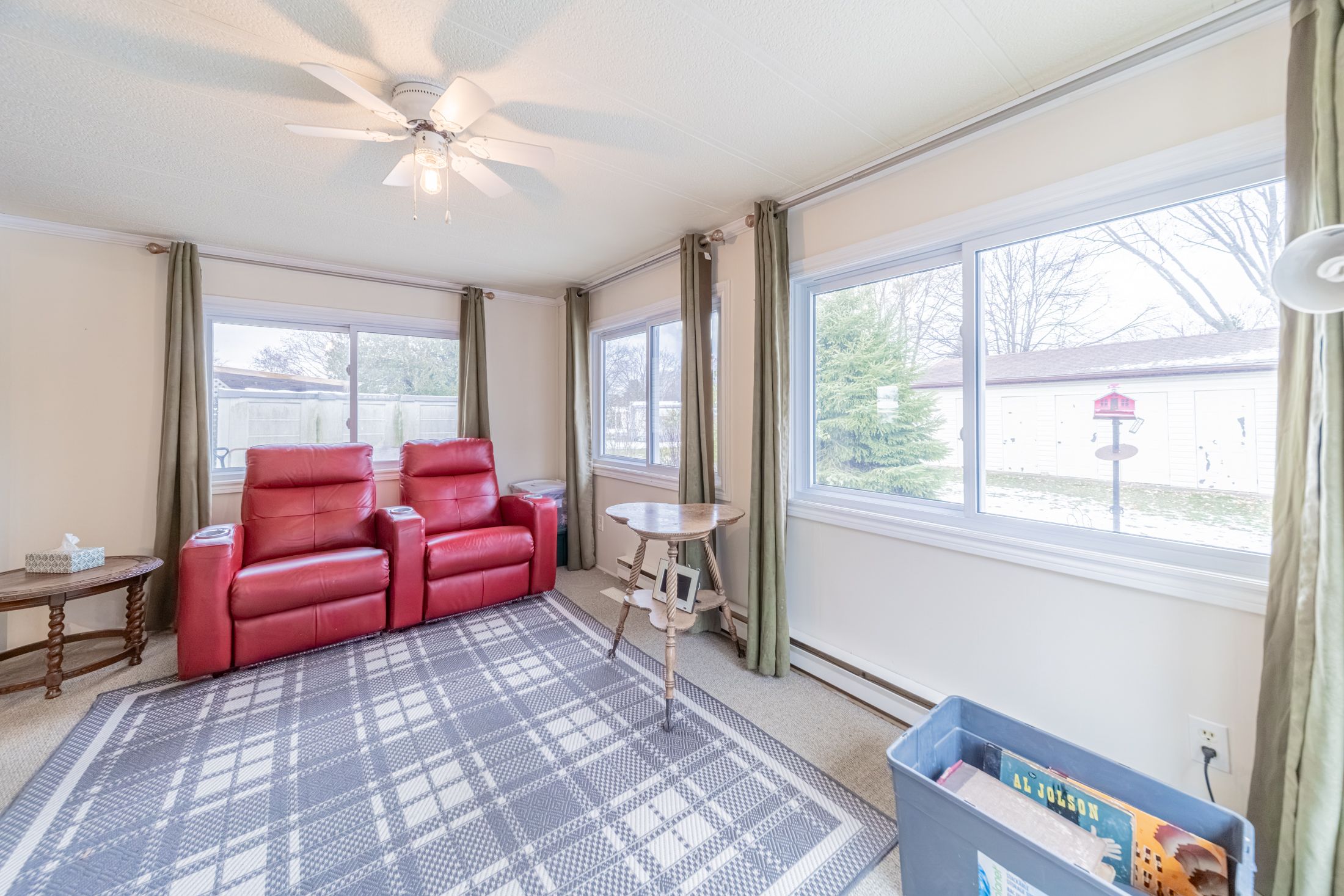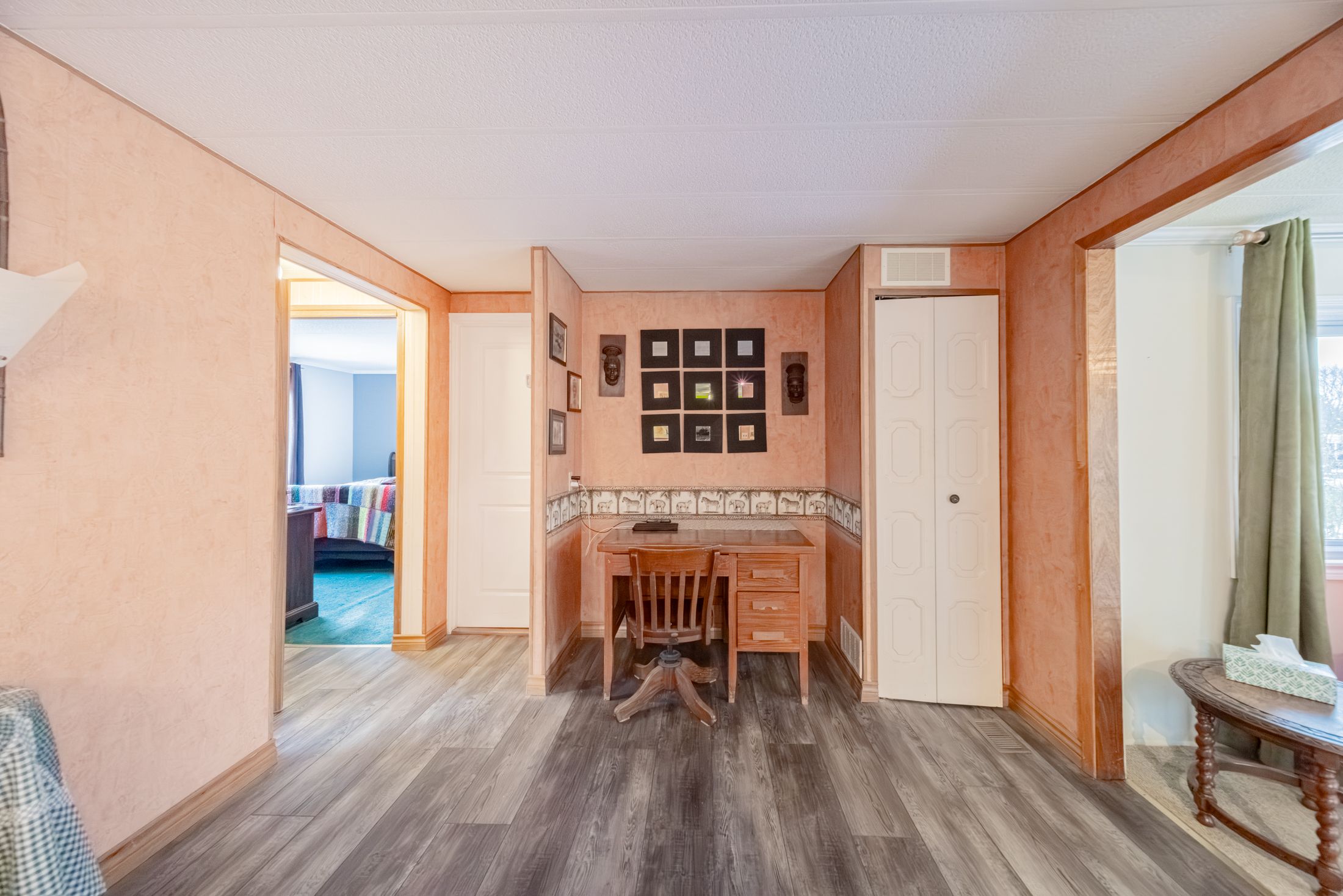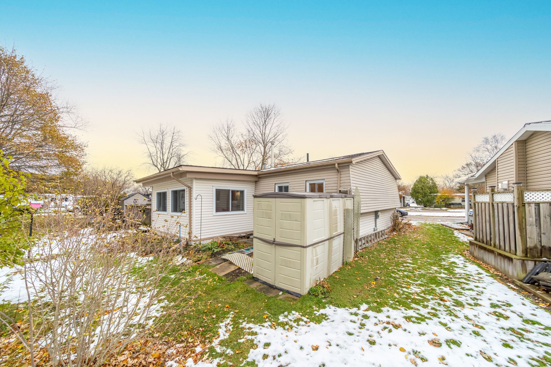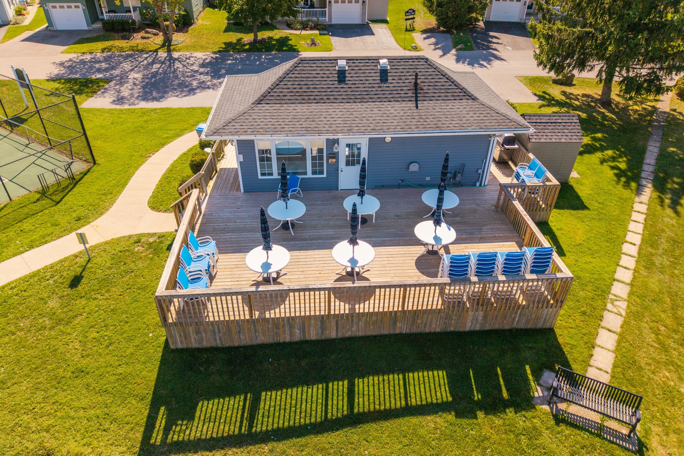 Unreal value in grand bend's sought-after 55+ community of grand cove. Discover a lifestyle where resort-style amenities are abundant and lake huron's world-class beaches and sunsets are just a short walk away. This 1,132 sq ft four-season, fully winterized bungalow offers exceptional comfort and convenience with 2 bedrooms, 2 bathrooms, a formal dining room, cozy family room with fireplace and custom timber and glass built-ins, and a bright sunroom with glass sliding doors leading to a spacious back, deck perfect for entertaining. The crisp white galley kitchen truly stands as the heart of the home, complete with an adjacent laundry area and rear entrance. A large primary suite includes a walk-in closet and a updated 4-piece bathroom. Thoughtful updates enhance the property, including living/dining/kitchen flooring, primary bathroom, and more. All appliances are included, making this an easy move-in opportunity. Enjoy a garden shed and common storage lockers outback to accommodate your storage needs . Grand cove provides an incredible lineup of amenities: a security gate, heated saltwater pool, community centre with full kitchen, fitness facility, library with internet, billiards, darts, dance floor, shuffleboard, bocce, lawn bowling, tennis, pickleball, woodworking shop, hiking trails, and a community garden. It's the perfect setting for those seeking both comfort and connection. Just a short stroll to the beach, restaurants, and shopping. Land lease: $850/month + house taxes. A fantastic lifestyle awaits!
