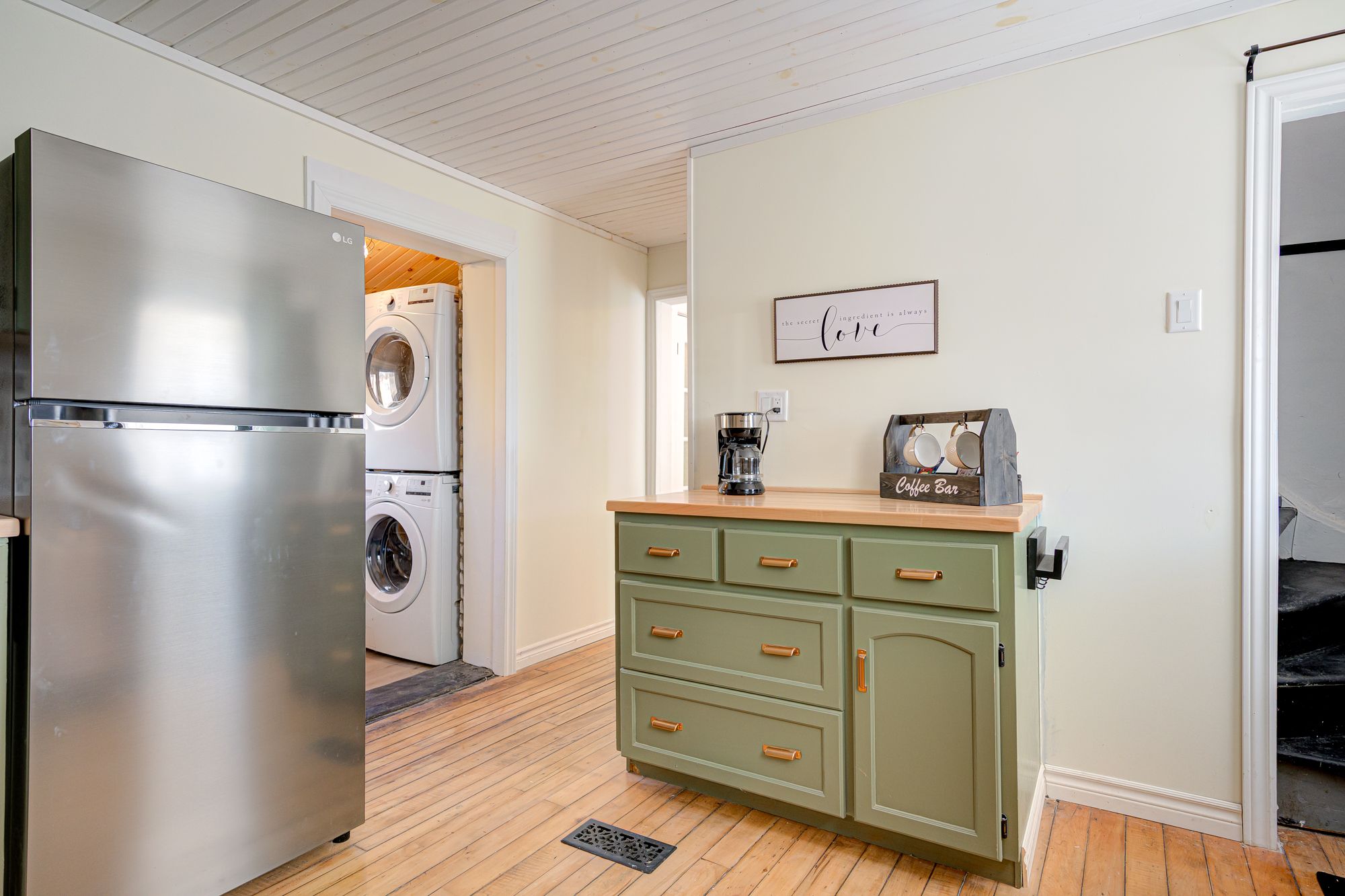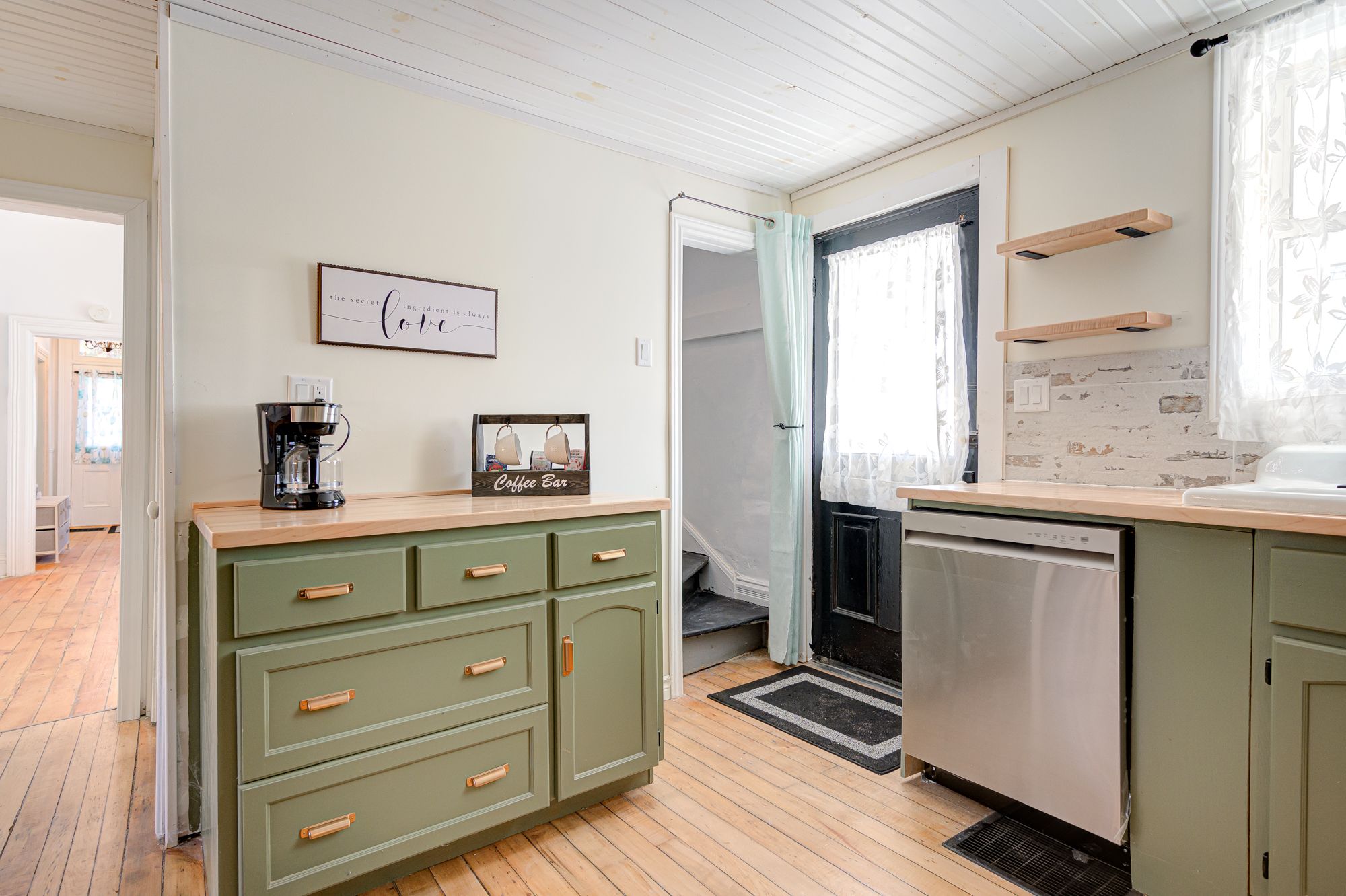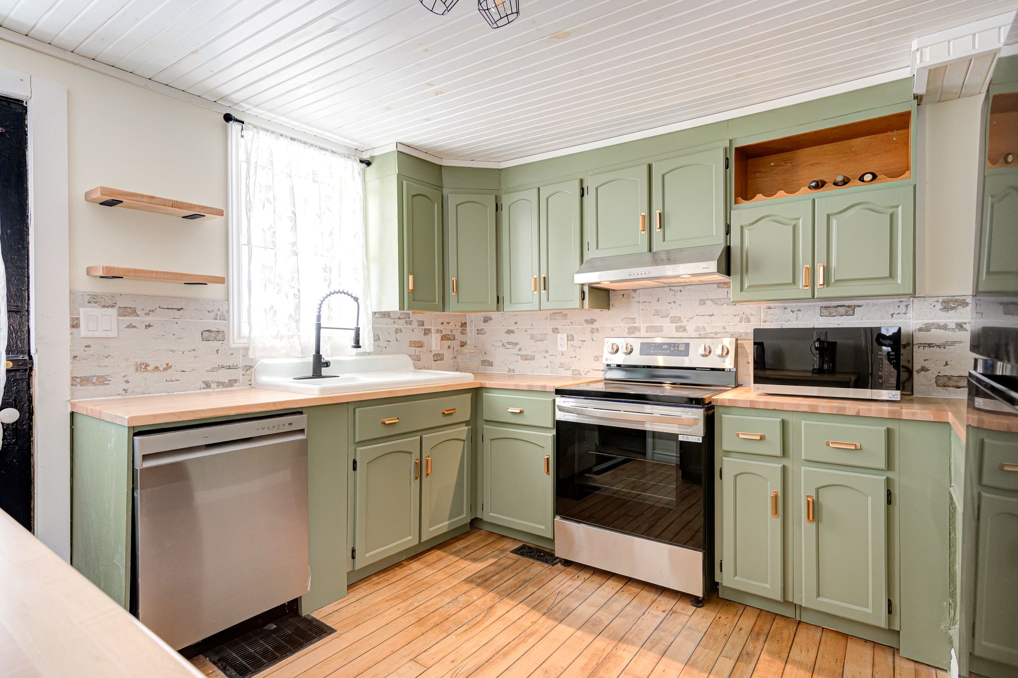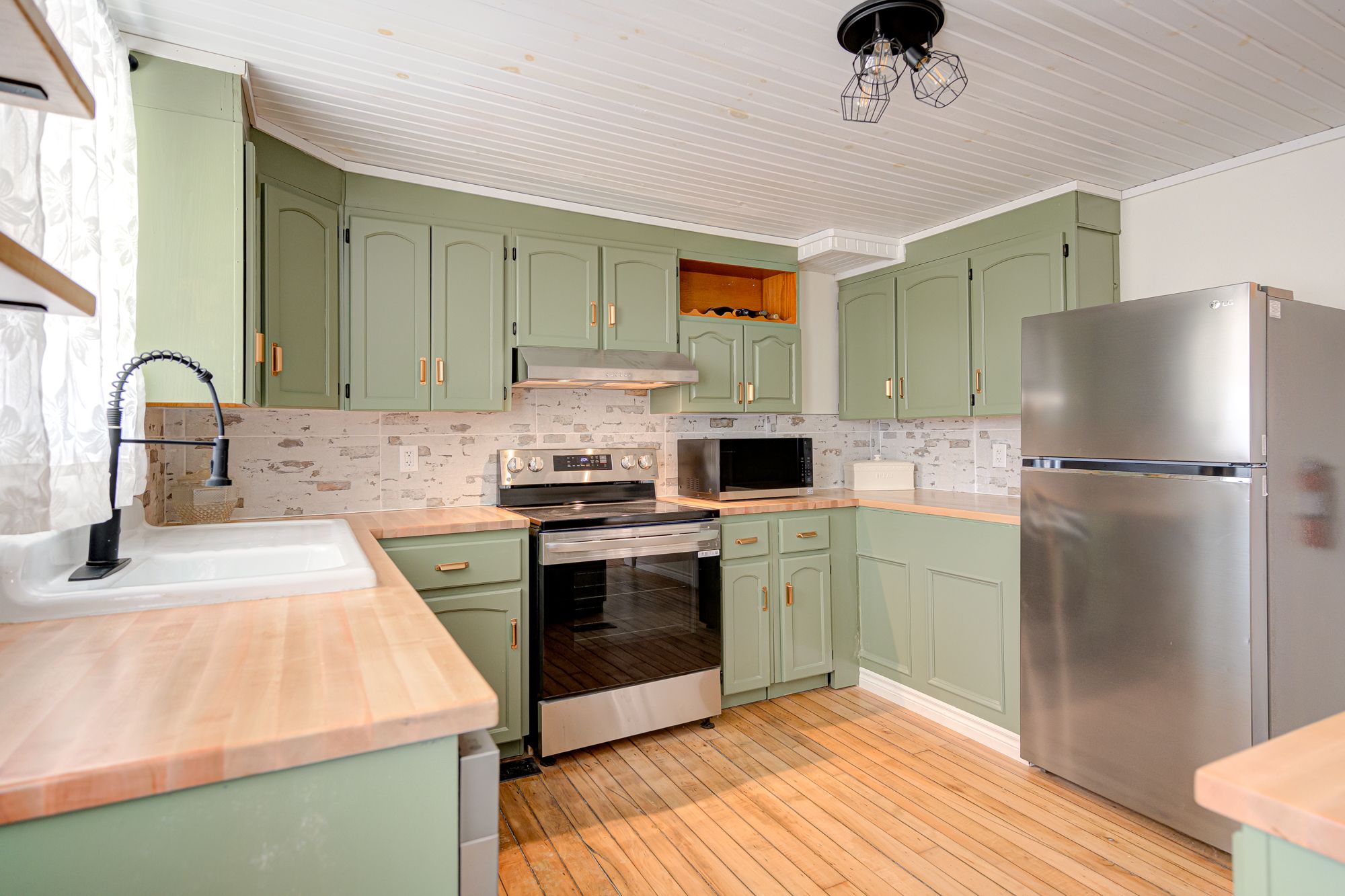 • Chef's dream kitchen with custom butcher block countertops and new appliances.