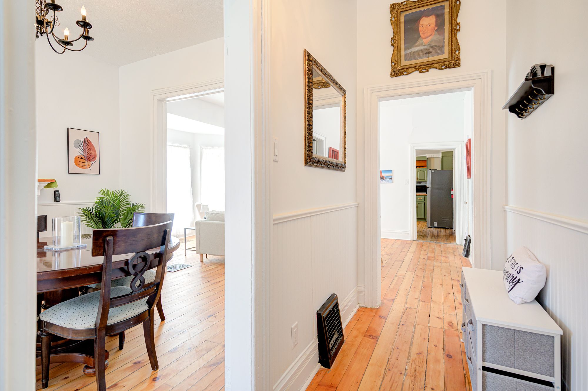 • Refinished hardwood floors and elegant original details throughout.