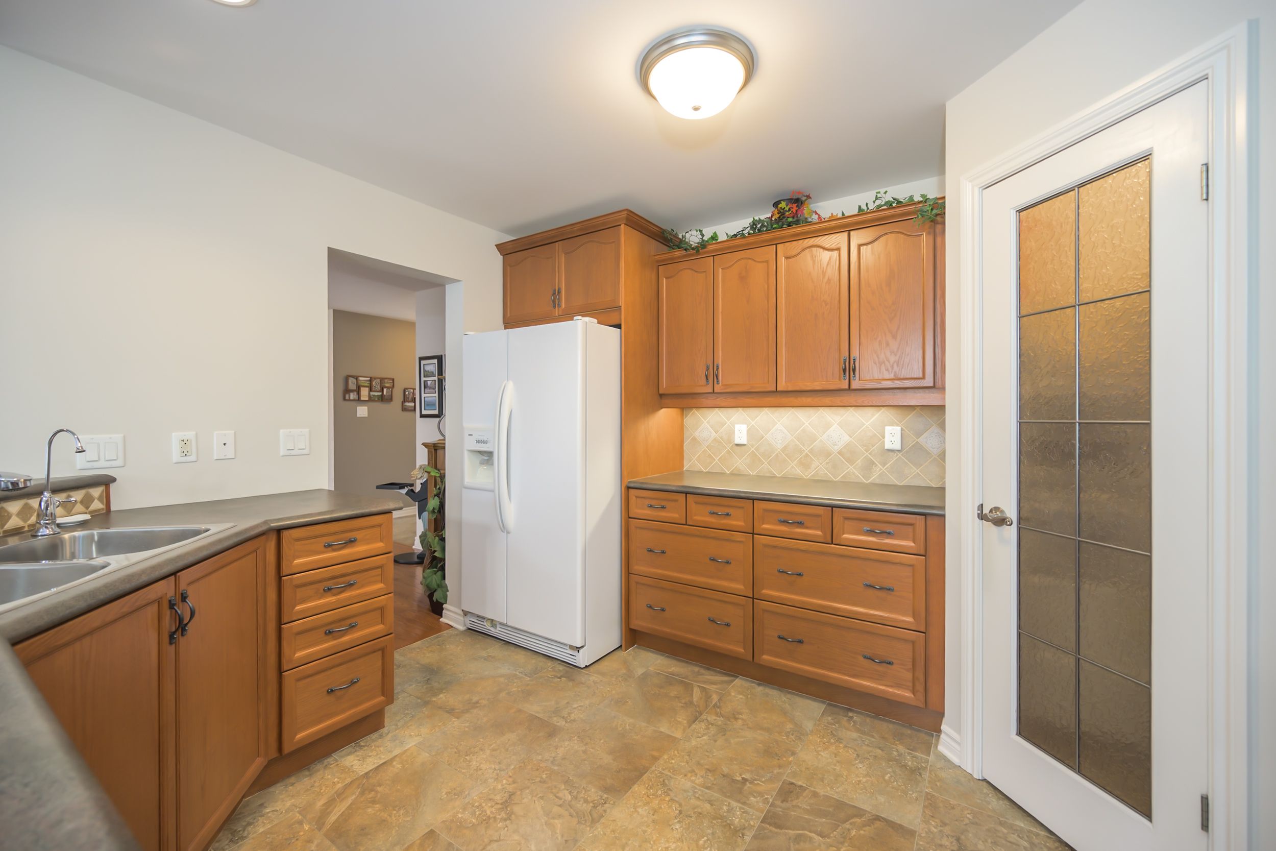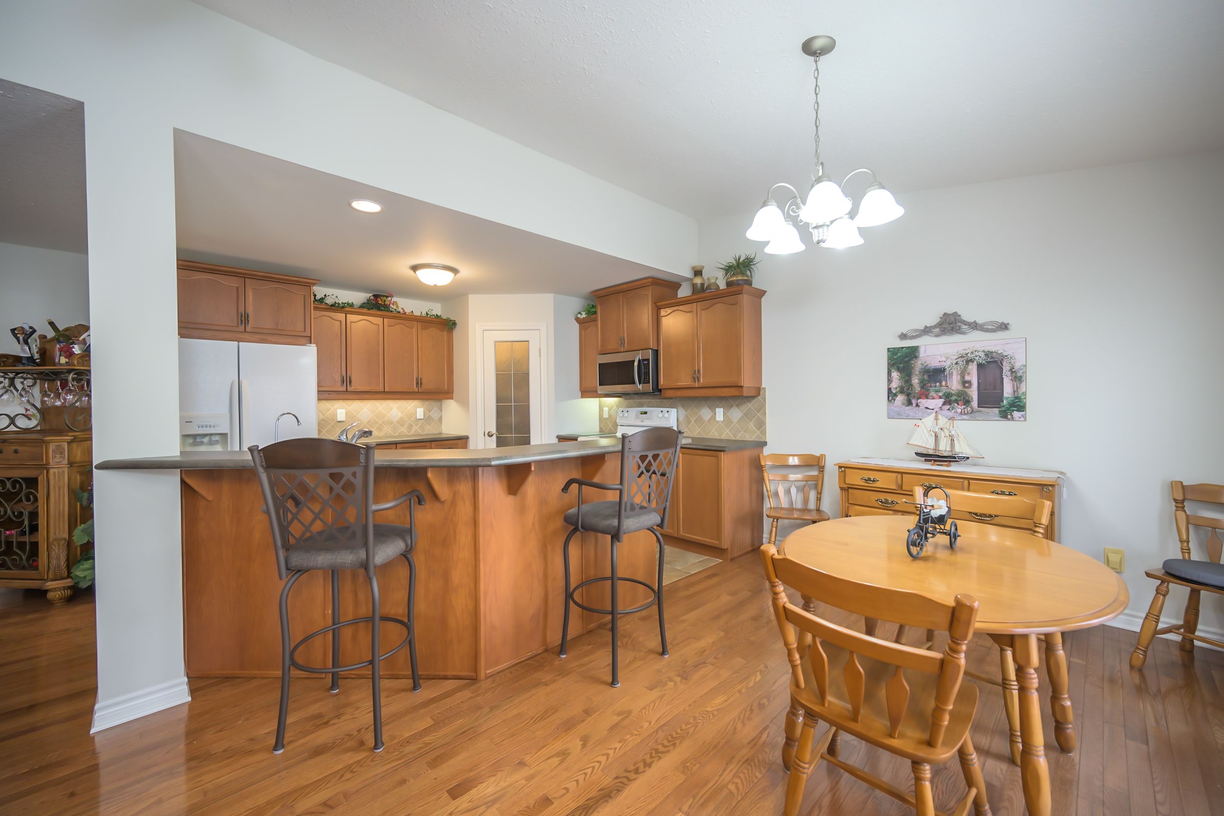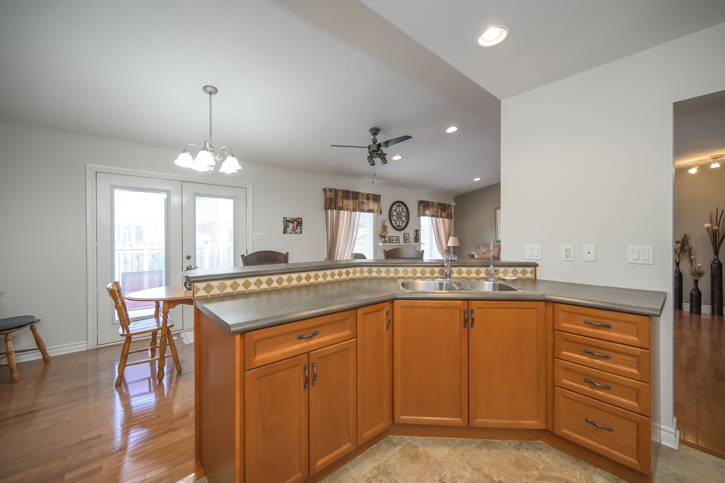 • Spacious kitchen peninsula that overlooks dining and living spaces.