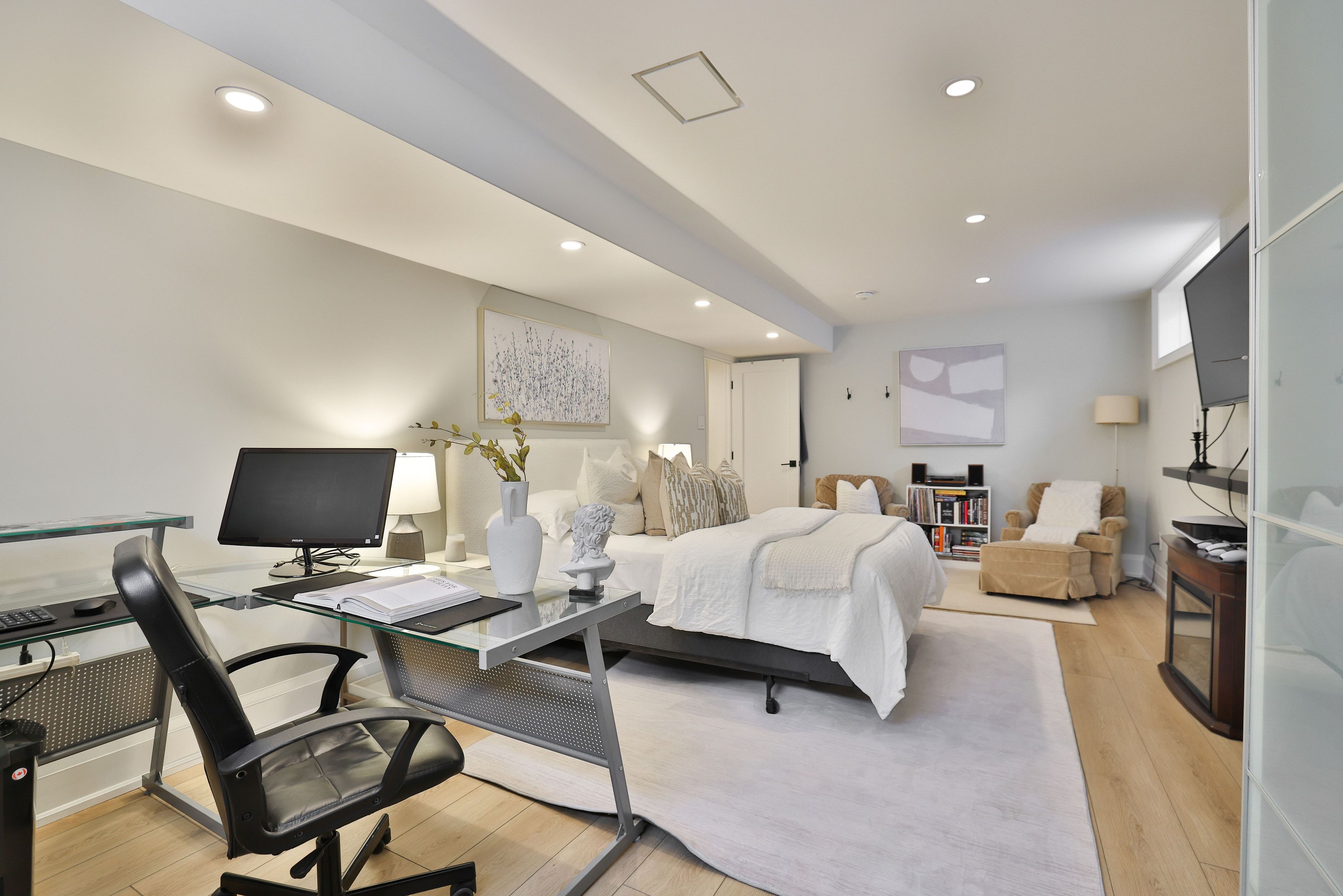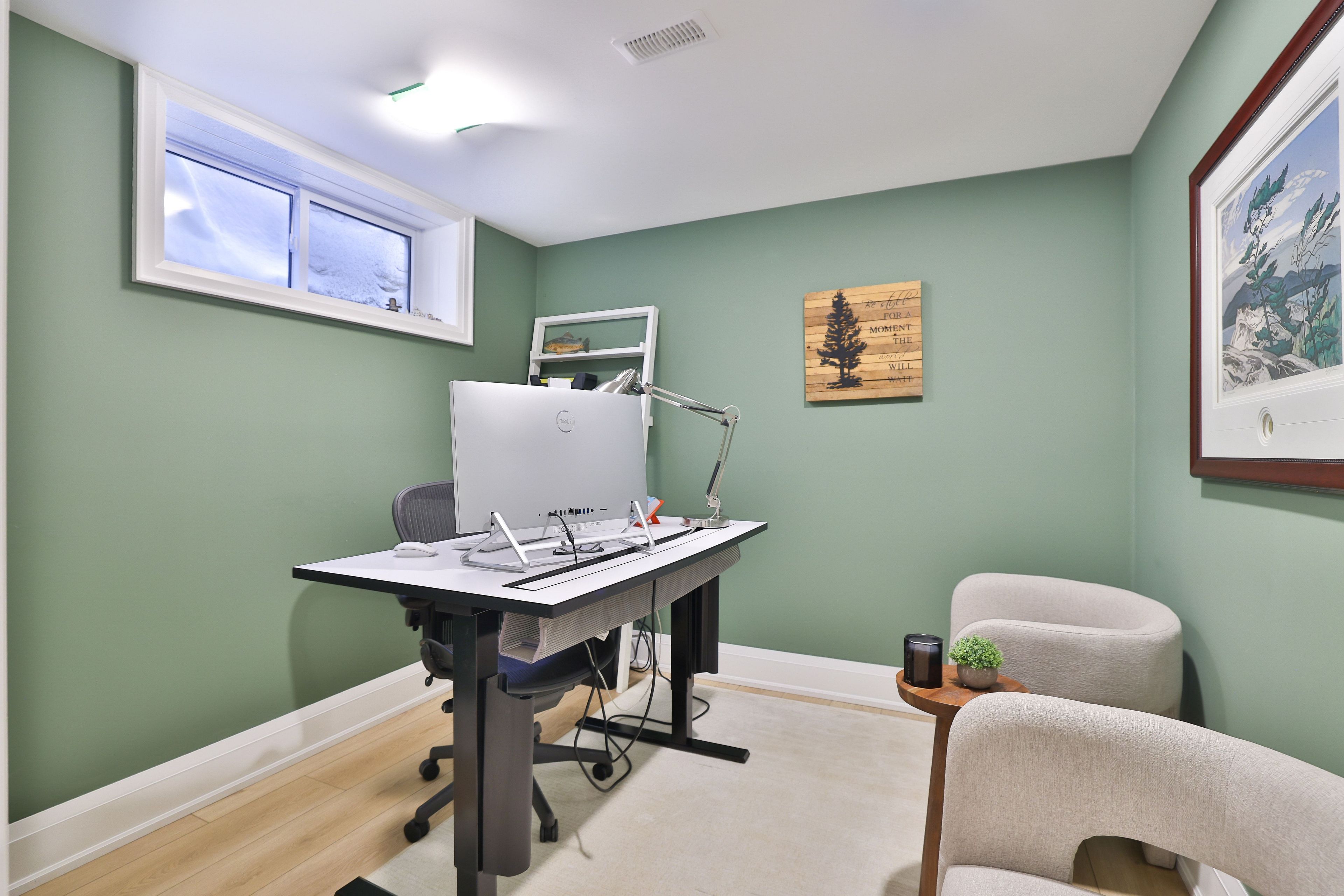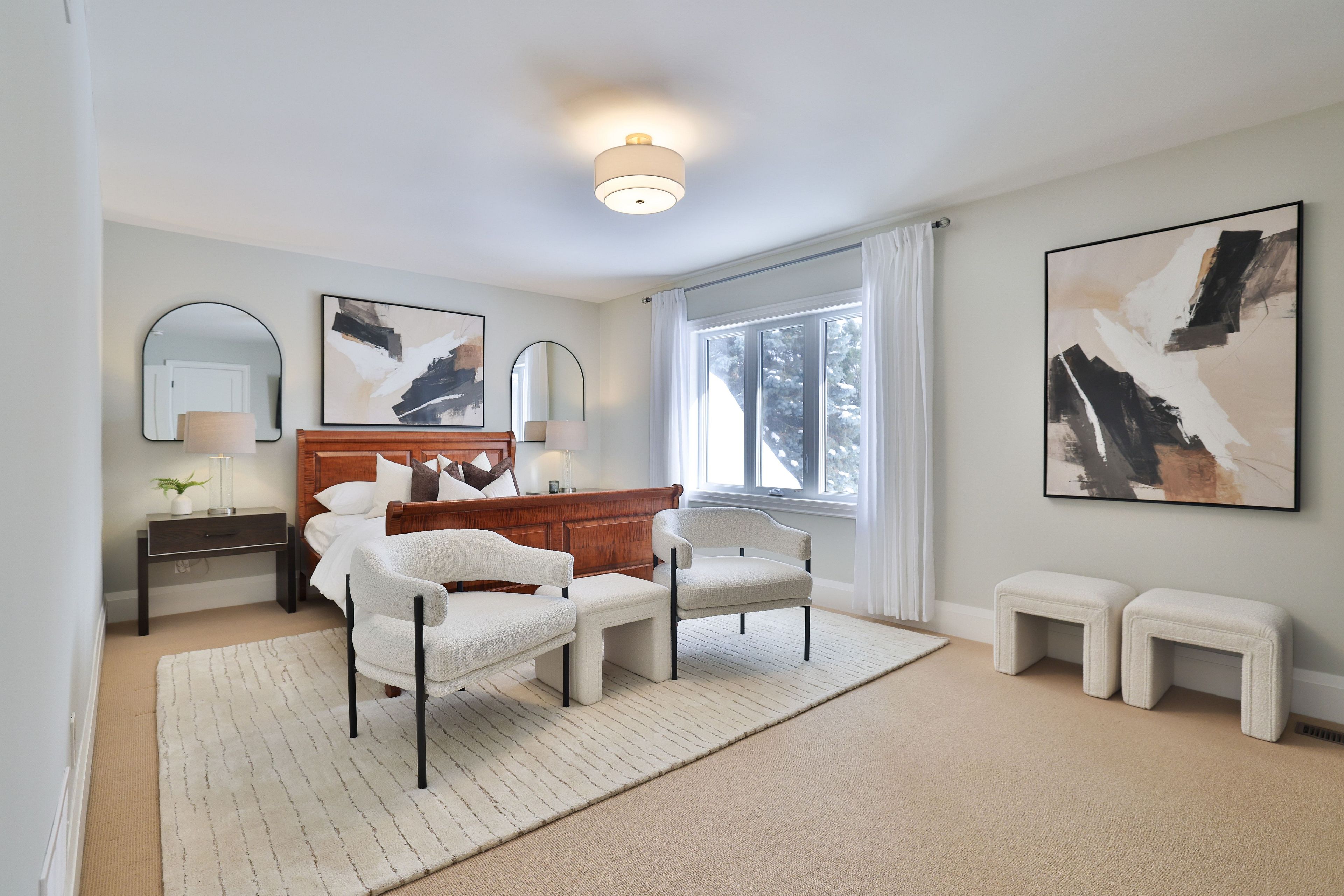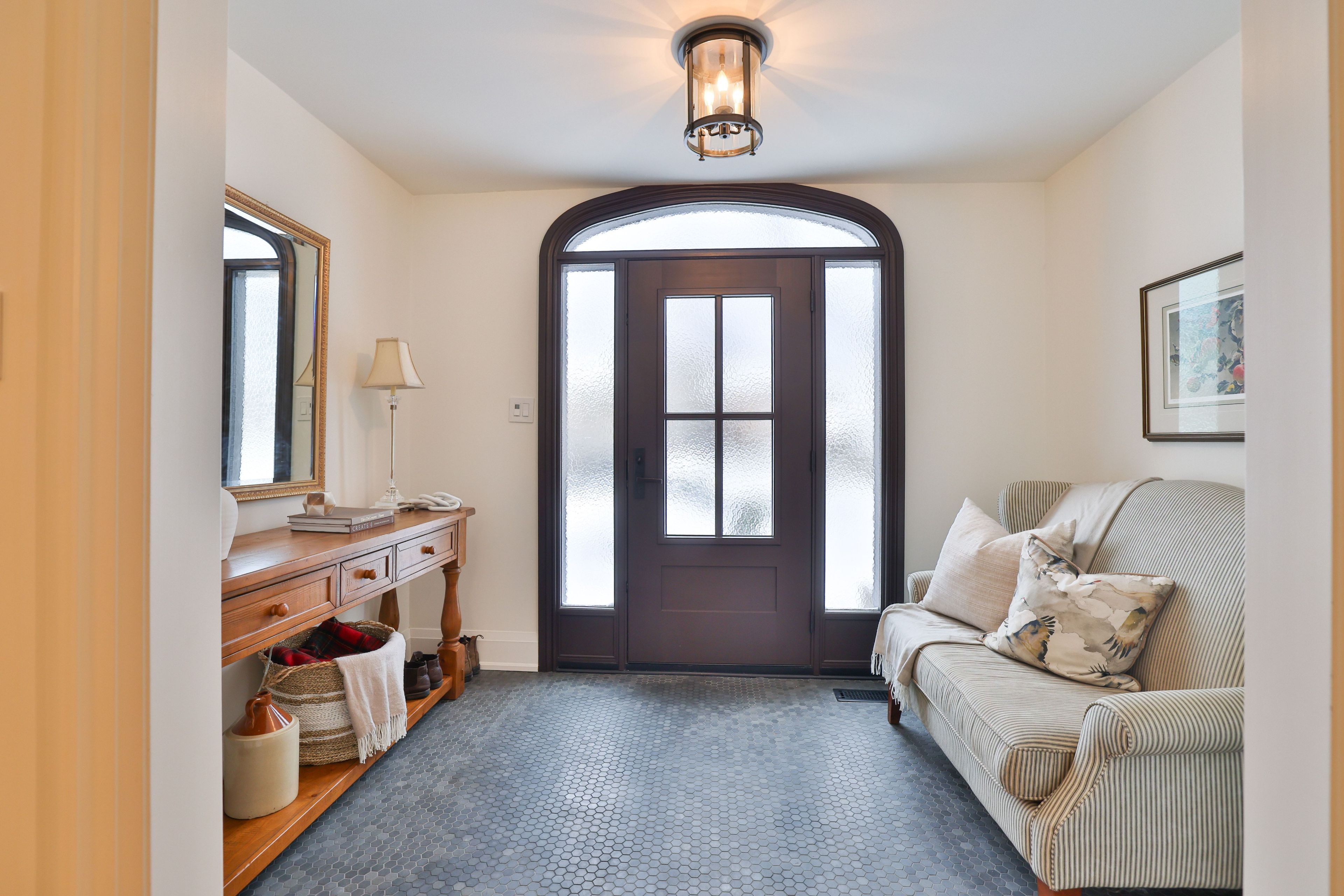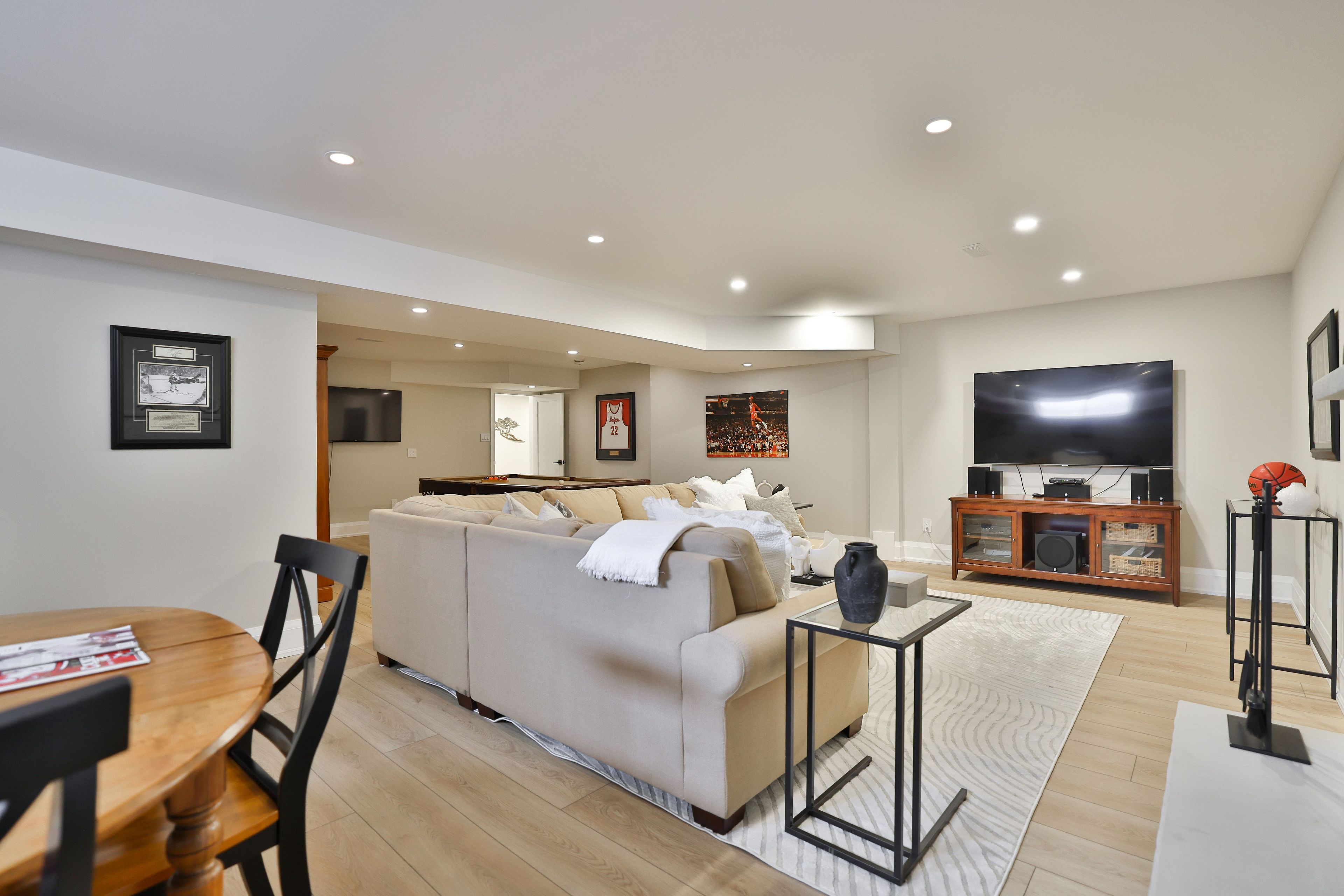 Set on one of south east oakville's premier streets, this extensively renovated residence presents a refined, design-forward family home in an exceptionally private setting. Backing onto a picturesque orchard, the setting feels worlds away. The 141-foot deep, pool-sized lot, with 3,424 square feet of above-grade living space, is ideally suited to both everyday living and entertaining. A striking two-storey entrance hall, fully reimagined during the renovation, features a newly constructed elegant staircase. Just beyond the foyer, a welcoming front sitting area offers an inviting place to gather, flowing naturally into a second seating space adjacent to the kitchen. At the heart of the home, the redesigned kitchen flows seamlessly into the dining area and is anchored by custom cabinetry, quartz countertops, a bespoke tiled oven hood, and premium appliances. The kitchen and dining spaces are unified by a distinctive herringbone-patterned oak hardwood floor, adding warmth and texture, complemented by a wall of windows and glass doors offering views of the backyard and garden beyond. The adjoining family room, enhanced by a cathedral ceiling, connects naturally to the dining area and kitchen and is ideal for relaxed living. The upper level is anchored by a spacious primary suite with a walk-through closet leading to a six-piece ensuite with heated flooring, complemented by three additional bedrooms and a family bathroom. The finished lower level adds flexibility with a spacious recreation room centred around a fireplace, a dedicated gym space, office, an additional bedroom, and a three-piece bathroom. Extensively renovated in 2022, upgrades include new windows, oak hardwood flooring, mechanical systems, electrical, smart-home infrastructure, ev-ready garage wiring, enhanced insulation and new exterior doors. A rare offering blending architectural presence with thoughtful modernization in one of south east oakville's most desirable settings.
