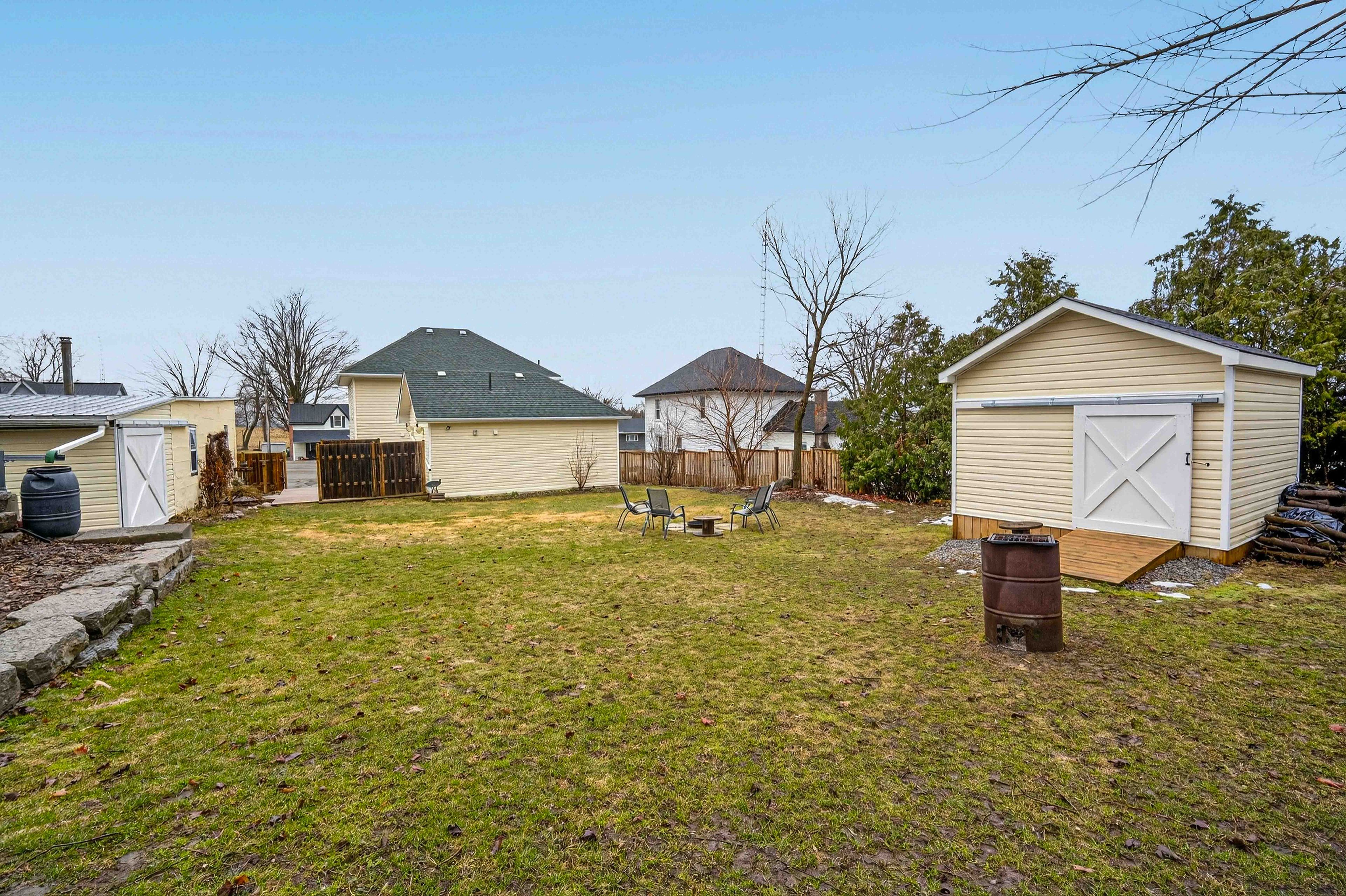 Welcome to this charming century home, where timeless character meets modern convenience. This spacious 4-bedroom, 3-bath home offers plenty of room for everyday living and entertaining. The main floor features a large dining room, eat-in kitchen, comfortable living room, convenient main floor laundry, and a spacious primary bedroom complete with a walk-in closet and full ensuite bathroom. Upstairs, you'll find additional bedrooms, including one currently used as a workout room, along with another full bathroom, offering lots of space for family, guests, or a home office. Step outside and enjoy the outdoor living space, complete with a large deck perfect for barbecuing and patio dining, a cozy fire pit, and a sizeable storage shed with a sliding barn door. A standout feature of the property is the separate heated 35 ft. X 30 ft. Shop, offering two doors facing the main road-one standard garage door and one loading dock-height door suitable for pickup trucks-along with a barn door from the backyard and dedicated office space. This versatile, year-round space is ideal for a home business, workshop, or extra storage. The property offers plenty of parking with both front and back street access. Conveniently located just minutes from highway 115, this home offers an easy commute toward toronto while still enjoying the space, function, and charm this unique property has to offer.