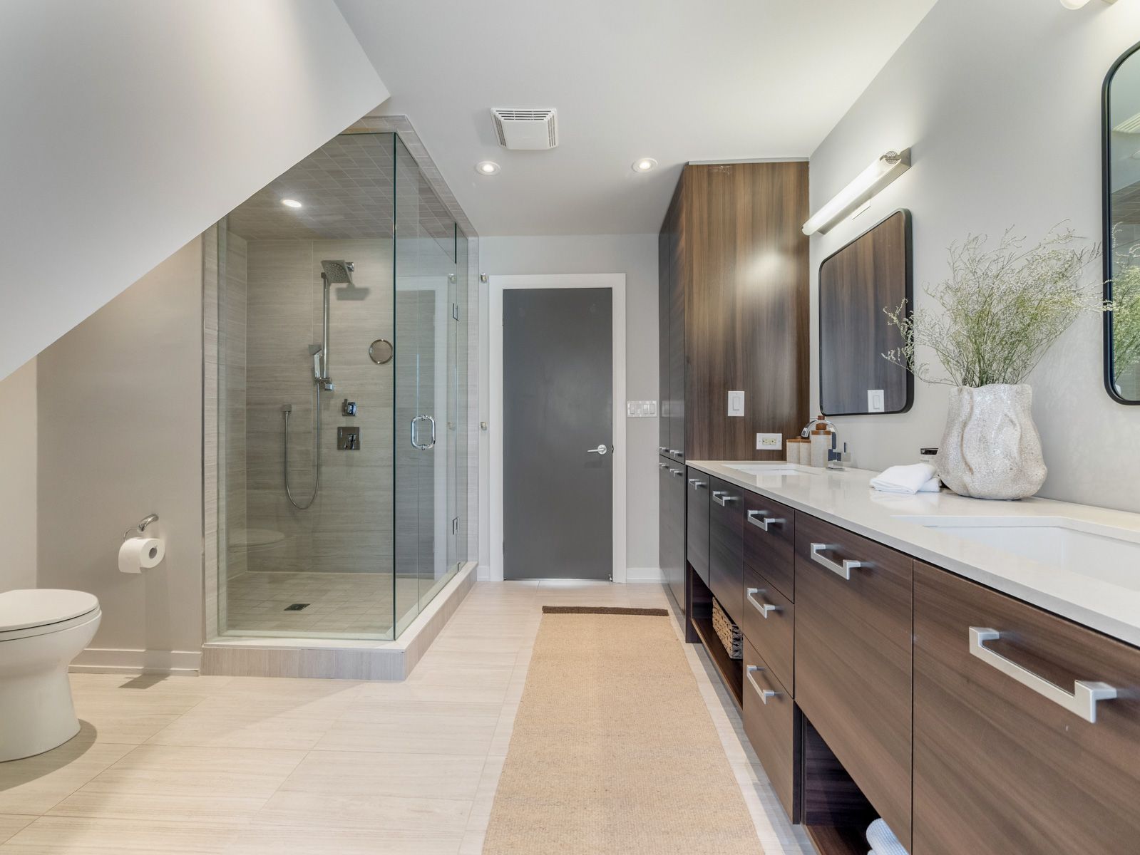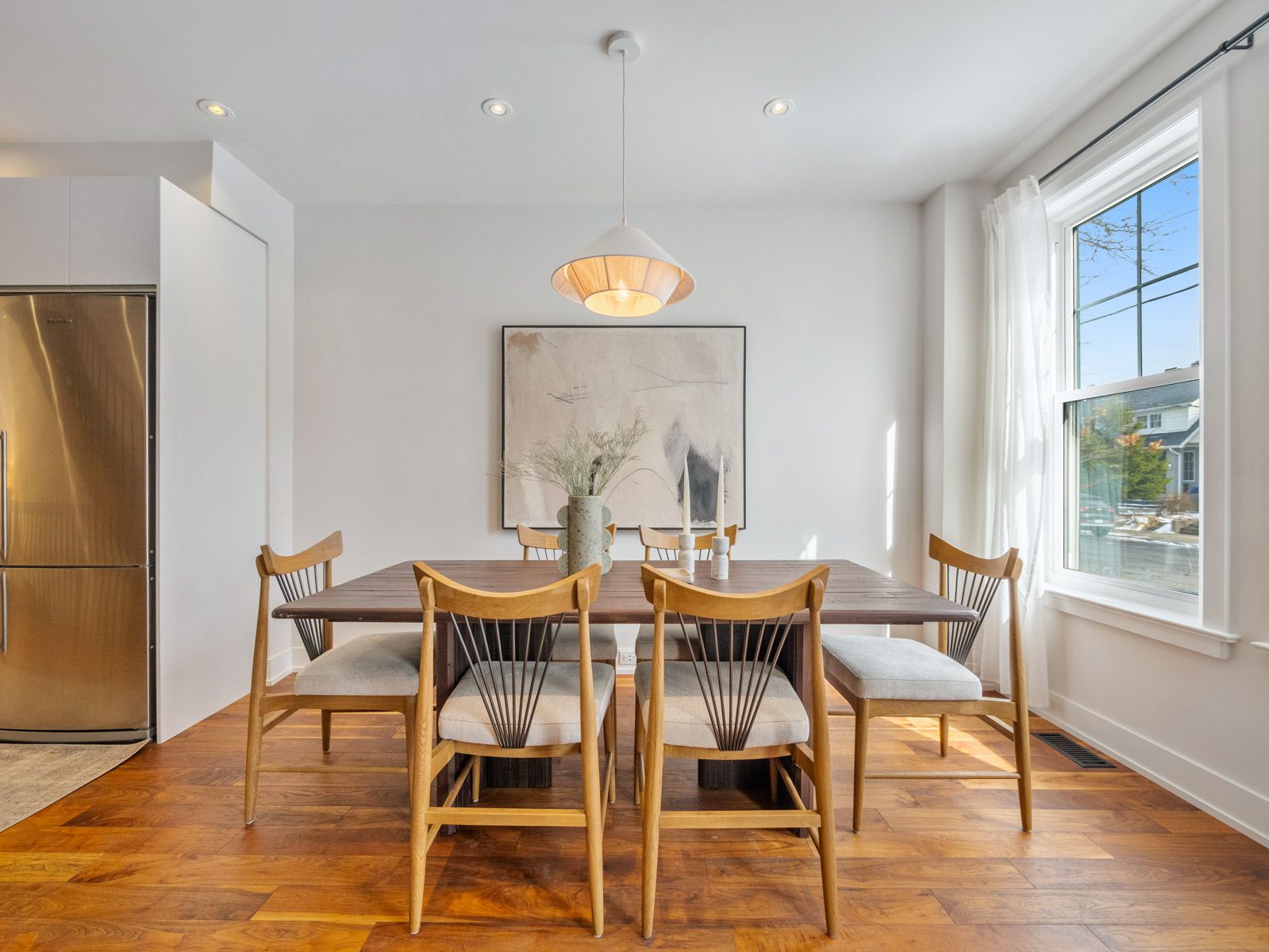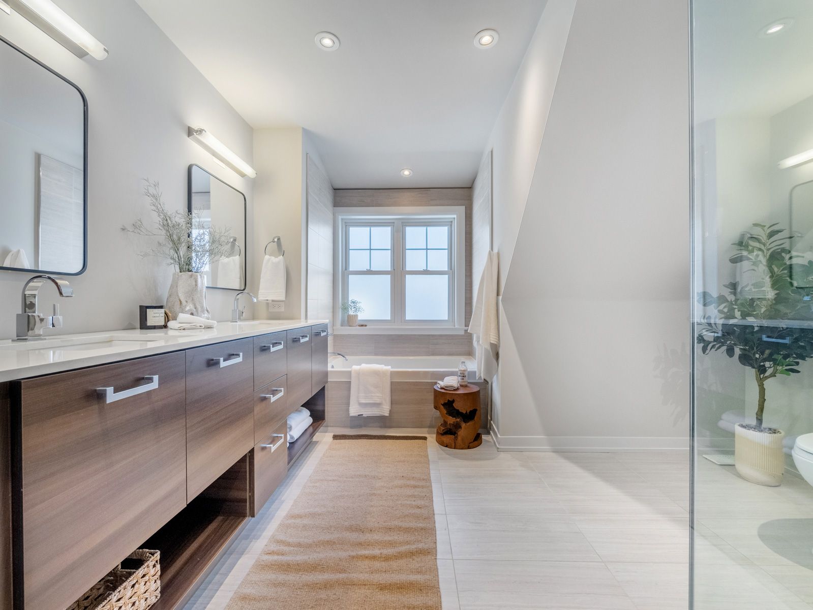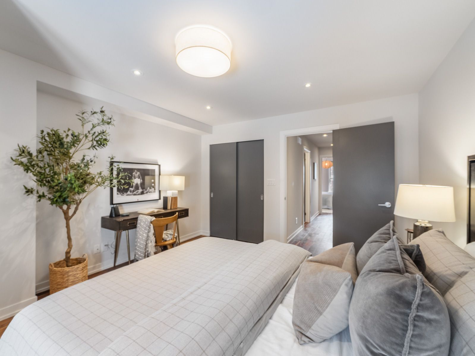 Steps to everything kingston road village has to offer, with adam beck ps (french immersion) at the top of the street, this home offers all the conveniences of a new home! The open concept main floor features a spacious family room anchored by a gas fireplace with a walk-out to the back deck, the modern kitchen features high end appliances including a 5 burner gas range, aeg wall oven, blomberg stainless fridge and panelled bosch dishwasher, a generous & bright dining room as well as a sizeable front hall closet. The second floor houses two large bedrooms and a family sized bathroom with double sinks - making bed time with multiple kids a breeze! The third floor owner's suite features a spa-worthy ensuite bathroom with double sinks, a soaker tub, glass shower and ample storage along with not one but two walk-in closets! The tall lower level offers a spacious recreation room, a powder room which is tucked away from the living area for privacy and direct access to your 2 owned underground parking spots! That's right, forget about wiping snow off your cars. While this home is completely freehold, you also own two parking spots in the underground parking of the condo building next door - and you have direct access from your basement!