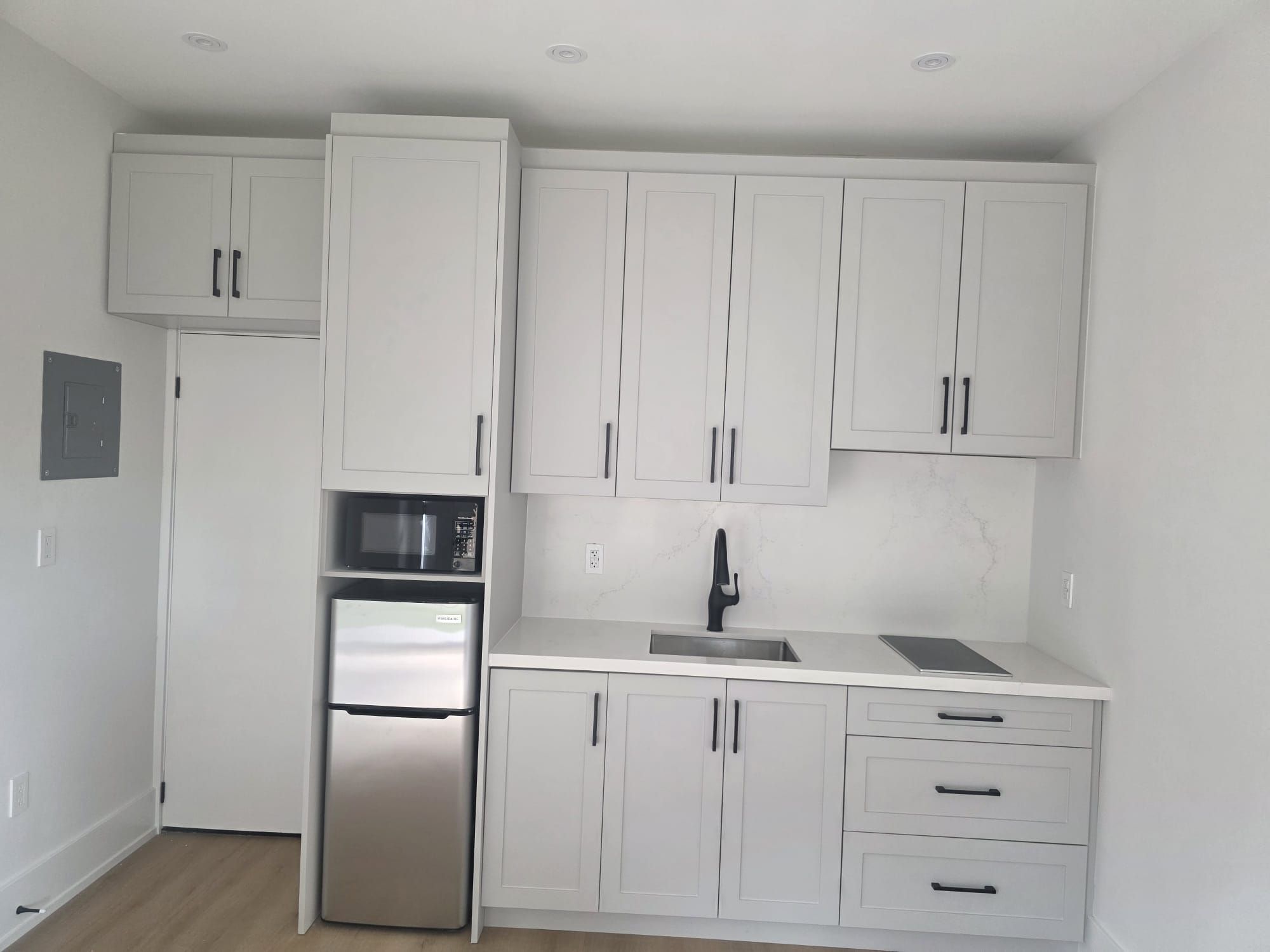 Brand new never lived, garden suite studio, approximately 255 sq feet located in prime alderwood area, all paved, 3pc washroom, kitchen, 12" stove, small fridge, microwave, laundry, vinyl floor, heating and cooling, separate heat pump. Walking distance to the public transportation, school and parking. Thanks for showing.