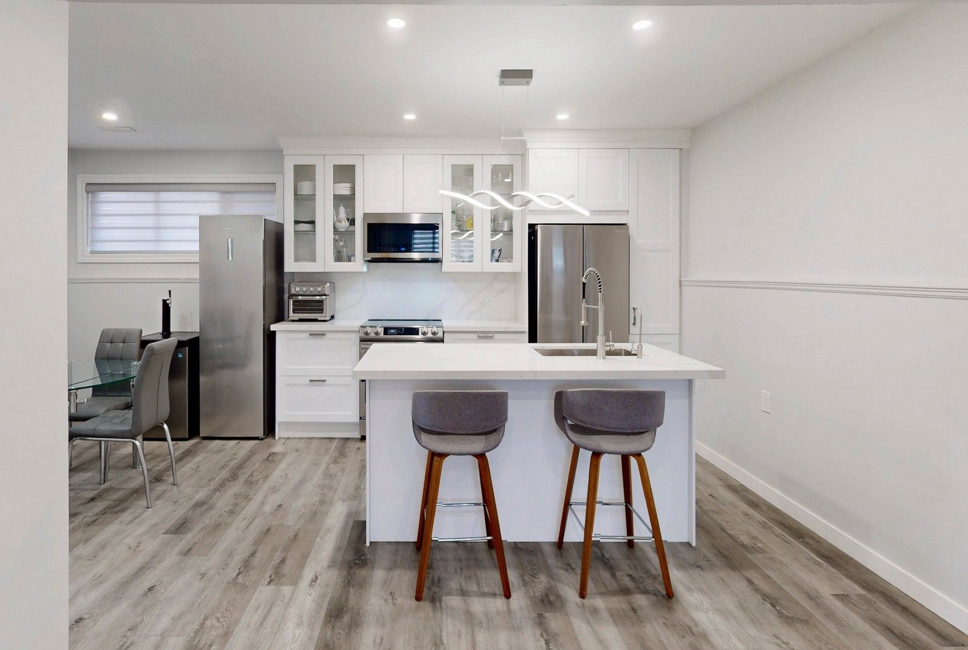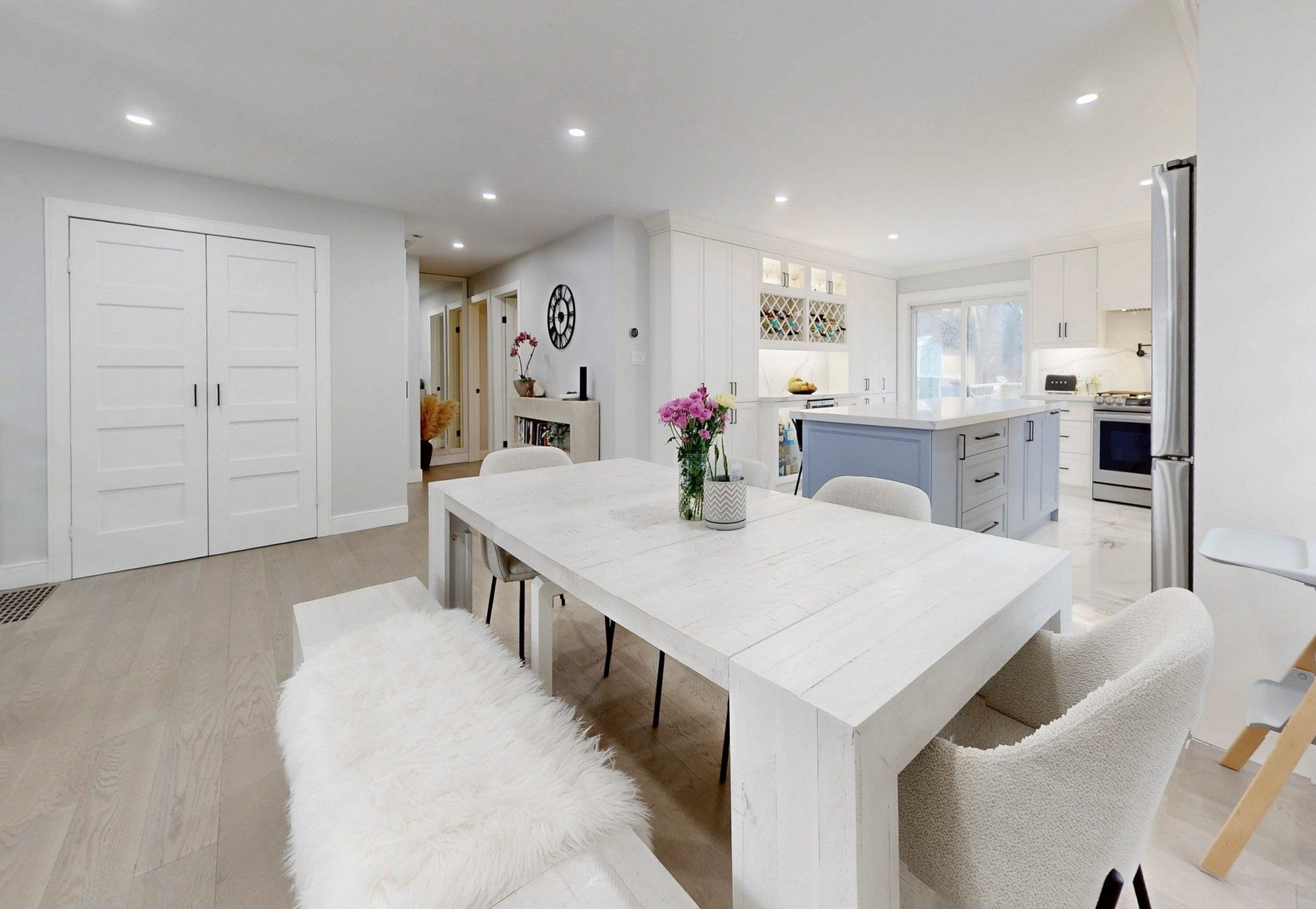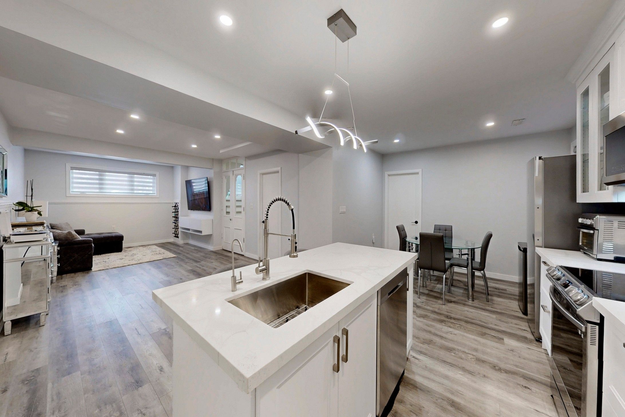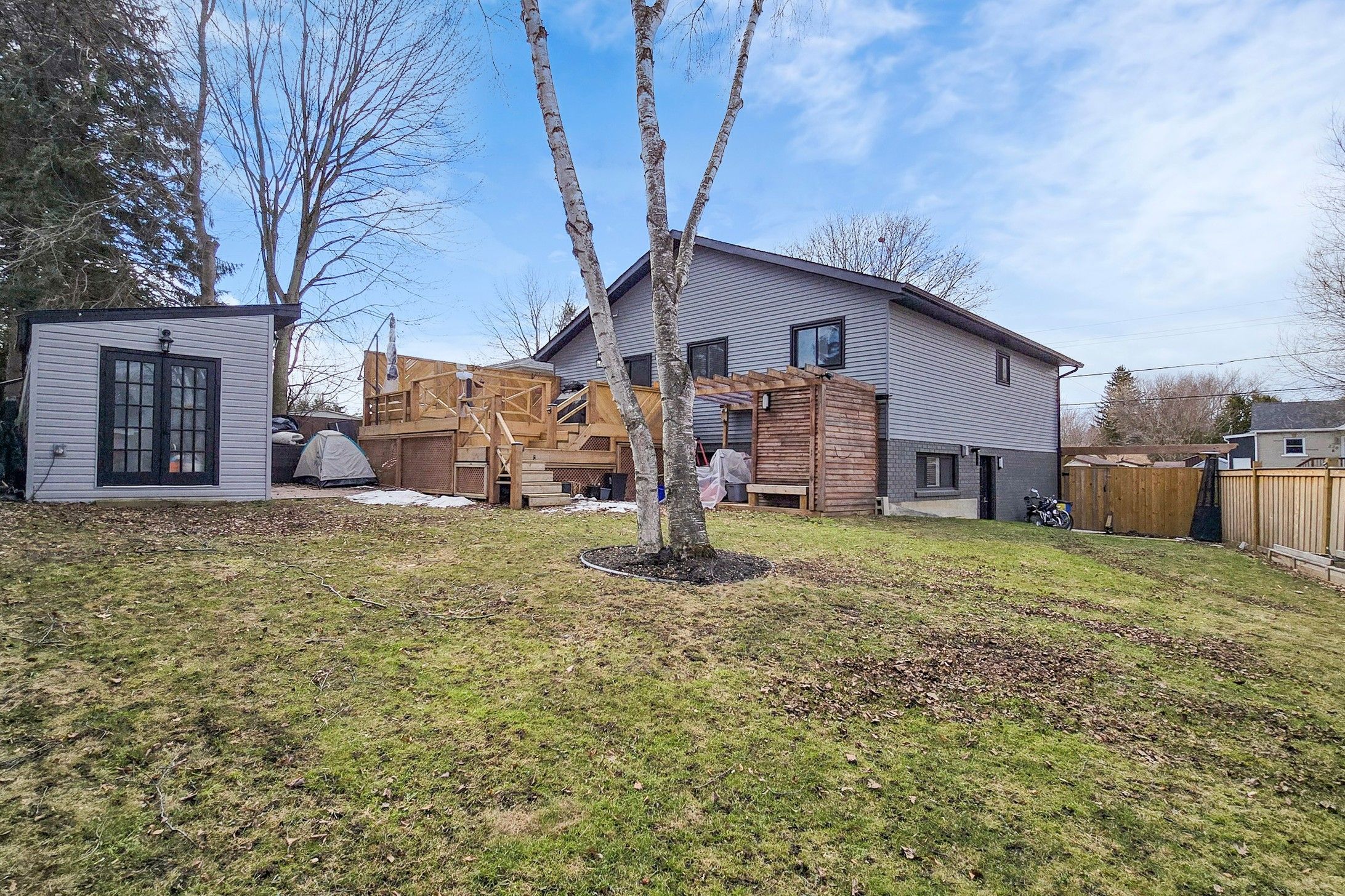 Welcome to this beautifully updated 3+1 bedroom, 2 full bath fully renovated and modern raised bungalow, perfectly situated on a large sun-filled lot, with a stream running along the north side offering a sense of tranquility. Parking for up to five vehicles, a generous backyard, greenhouse, spacious shed with electrical power, and a newly renovated deck (2024). This property is designed for both relaxation and functionality. Step inside to discover a thoughtfully designed open-concept main floor where style meets comfort. The custom open concept kitchen is a true showstopper, featuring luxurious finishes, quartz countertops, crown molding, gas range, pot filler, bar fridge, built-in wine rack, and a large island with an integrated breakfast bar-ideal for casual meals or entertaining guests. The seamless flow into the dining and living areas is accented by engineered hardwood flooring throughout creating a warm and inviting atmosphere. Unwind in the spa-inspired modern 3-piece bathroom complete with heated floors, dual sinks, and a spacious walk-in shower-your personal retreat at the end of the day! The professionally finished lower level offers incredible versatility with a separate ground-level entrance, high ceilings, and above-grade windows that flood the space with natural light. This level includes a large recreation room, an additional bedroom, 3 piece bathroom, and a modern kitchen with updated stainless steel appliances, making it perfect for multi-generational living or excellent income potential. A rare opportunity to own a home that truly combines comfort, elegance, and flexibility in a serene natural setting.