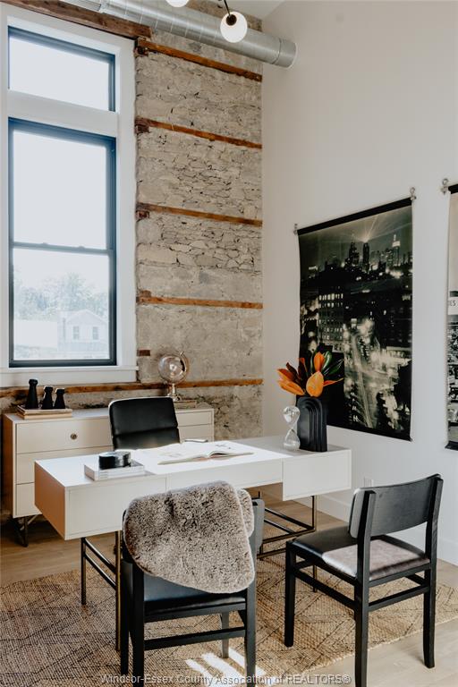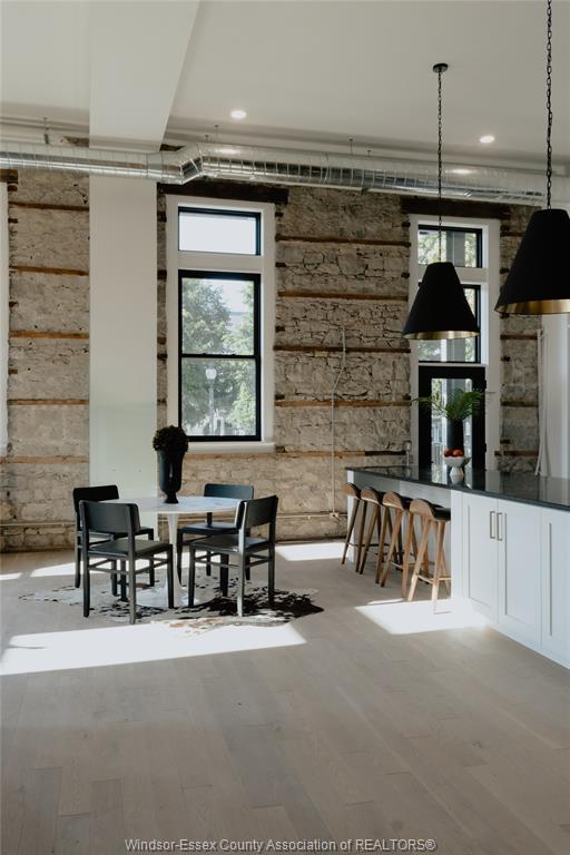 Welcome to the 1988 sq ft ottawa model at the highly anticipated lofts at st. Anthony. Enjoy the perfect blend of old world charm & modern luxury with this unique loft style condo. Featuring gleaming engineered hardwood floors, quartz counter tops in the spacious modern kitchen featuring large centre island and full appliance package. 2 spacious bedrooms including primary suite with walk in closet and beautiful 4 pc bathroom. In suite laundry. Bright airy living room with plenty of windows. Private balcony with bbq hook up and additional terrace off the primary bedroom. This one of a kind unit features soaring ceilings & plenty of original exposed brick and stone. Situated in a prime amherstburg location walking distance to all amenities including amherstburg's desirable downtown core. Don't miss your chance to be part of this stunning development.