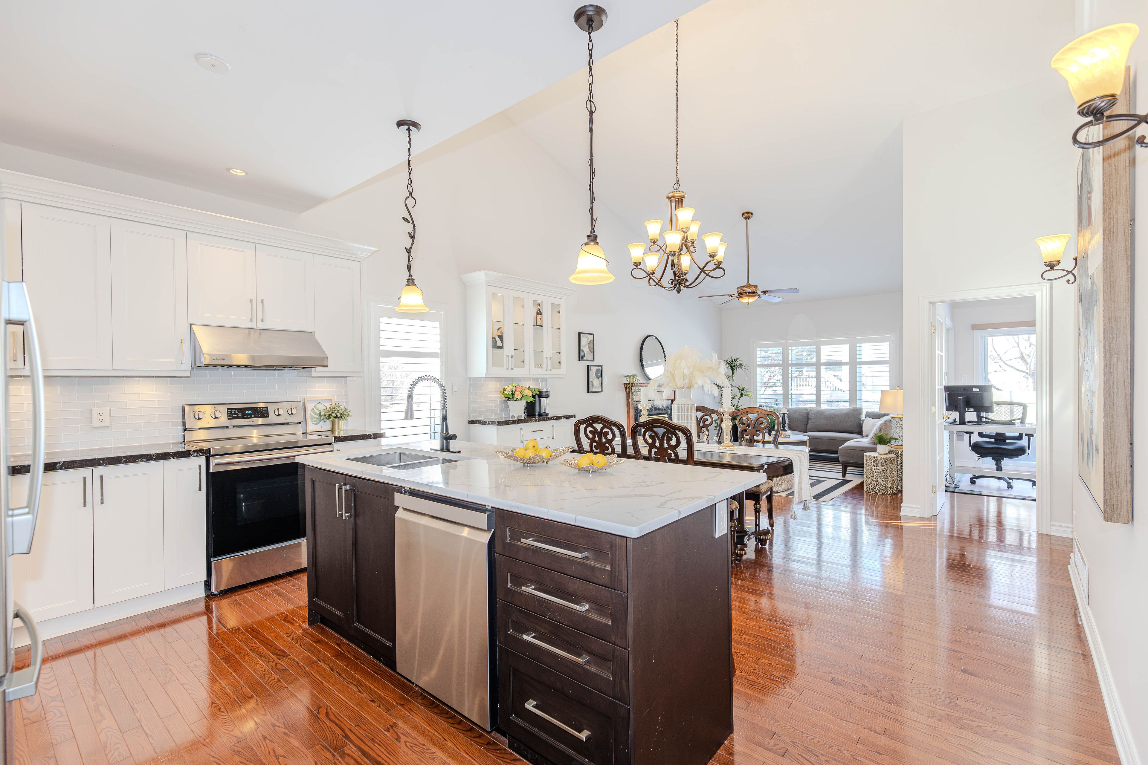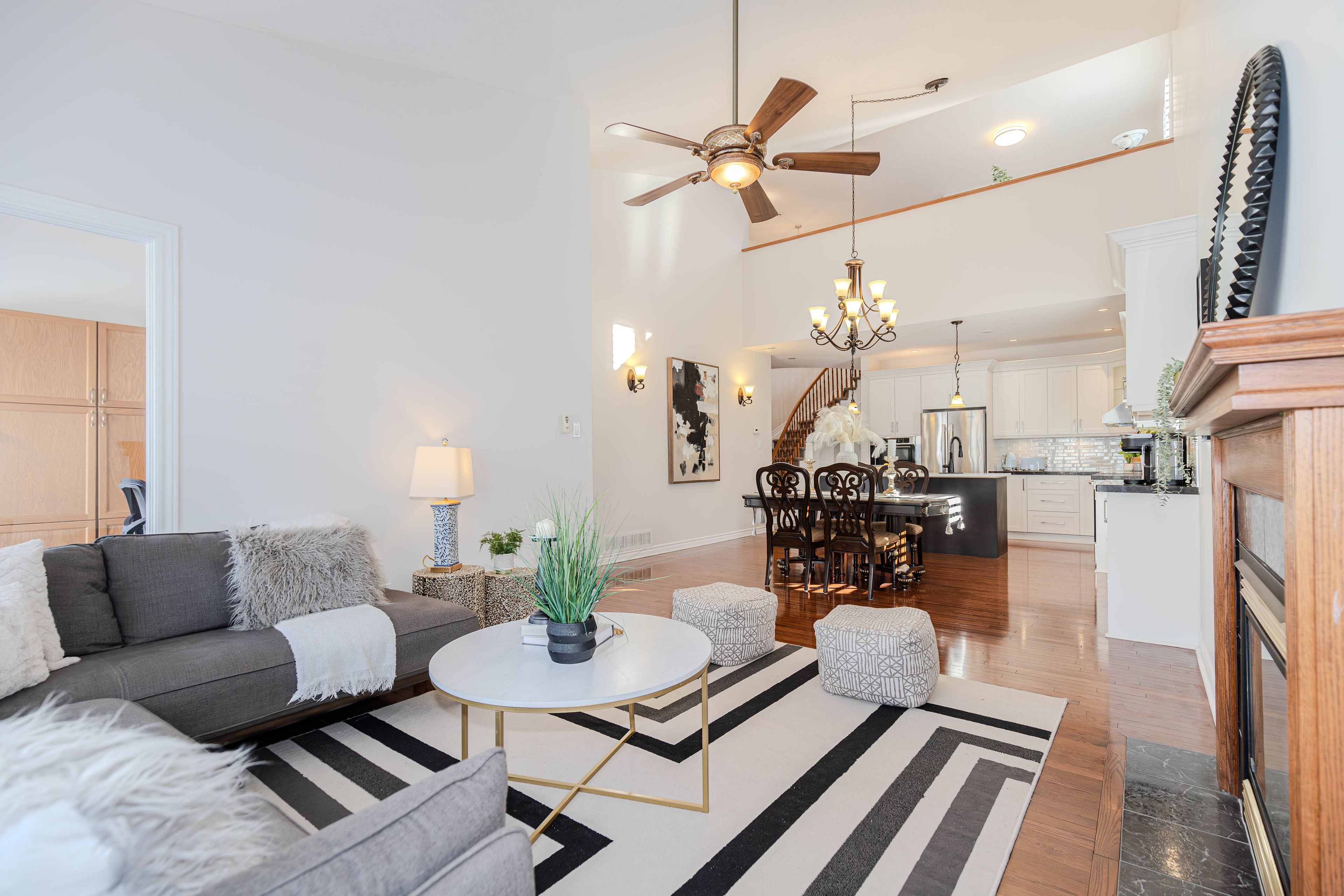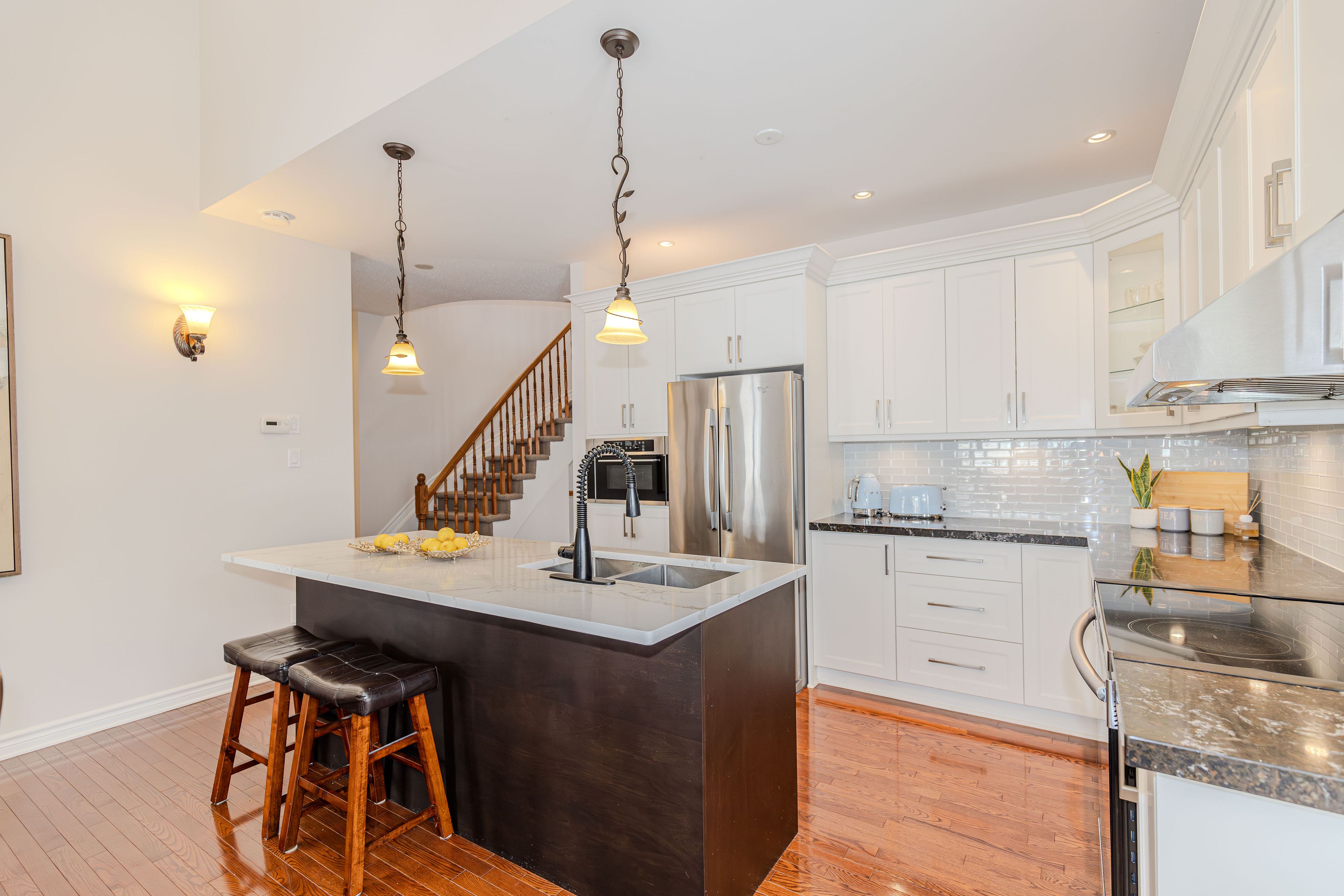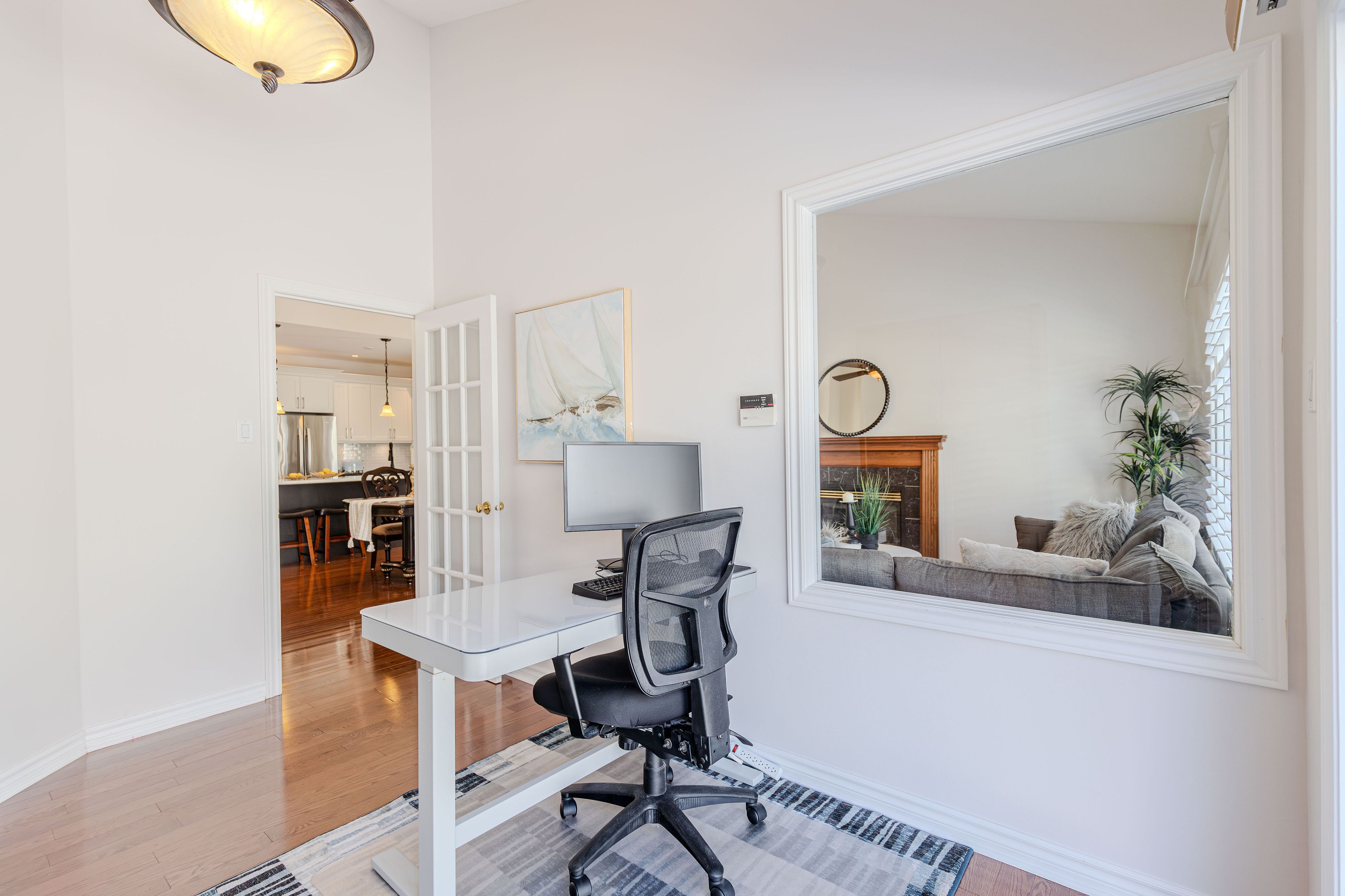 A rare found bunglow - 2386 sq. Ft. Above grade plus 1140 sq. Ft. Finished basement. It offers 4-bedroom, 4-bathroom with a double car garage, this move-in ready home located in a great location and has been freshly painted . The main floor features over 9-foot ceilings, hardwood flooring throughout, and a well-appointed open-concept layout. The renovated kitchen (2018) is both elegant and functional, highlighted by a quartz breakfast bar and a generous eating area that flows seamlessly into the spacious family room with a gas fireplace ideal for everyday living and entertaining. The combined living and dining rooms offer a polished, well-proportioned space suited for hosting and relaxation. The primary bedroom serves as a private retreat, complete with a ensuite and walk-in closet. Completing the main level are a generous second bedroom, a full bathroom, a sunlit home office, and a convenient mudroom/laundry room. Upstairs, the loft level feels like its own private floor and continues the hardwood flooring, offering a spacious bedroom, and a versatile open area perfect for a reading nook or a homework and tutoring space for children, with the flexibility to be easily converted into an additional enclosed room if desired. The fully finished basement provides outstanding versatility, featuring an oversized bedroom, a dedicated dance or studio space, a fitness area, a family media room, and abundant storage ready to be tailored to suit a variety of lifestyles. Outdoors, enjoy a fully fenced backyard offering privacy and functionality, complete with a patio and bbq area perfect for relaxed summer gatherings and casual outdoor enjoyment. Recent updates include: fresh paint throughout (2026), kitchen (2018), roof (2019), furnace (2021), hot water tank (2021), interlock driveway (2022), dishwasher (2022), and dryer (2022). An exceptional opportunity to own a distinctive bungalow th impressive living space and extensive updates-a must-see home.