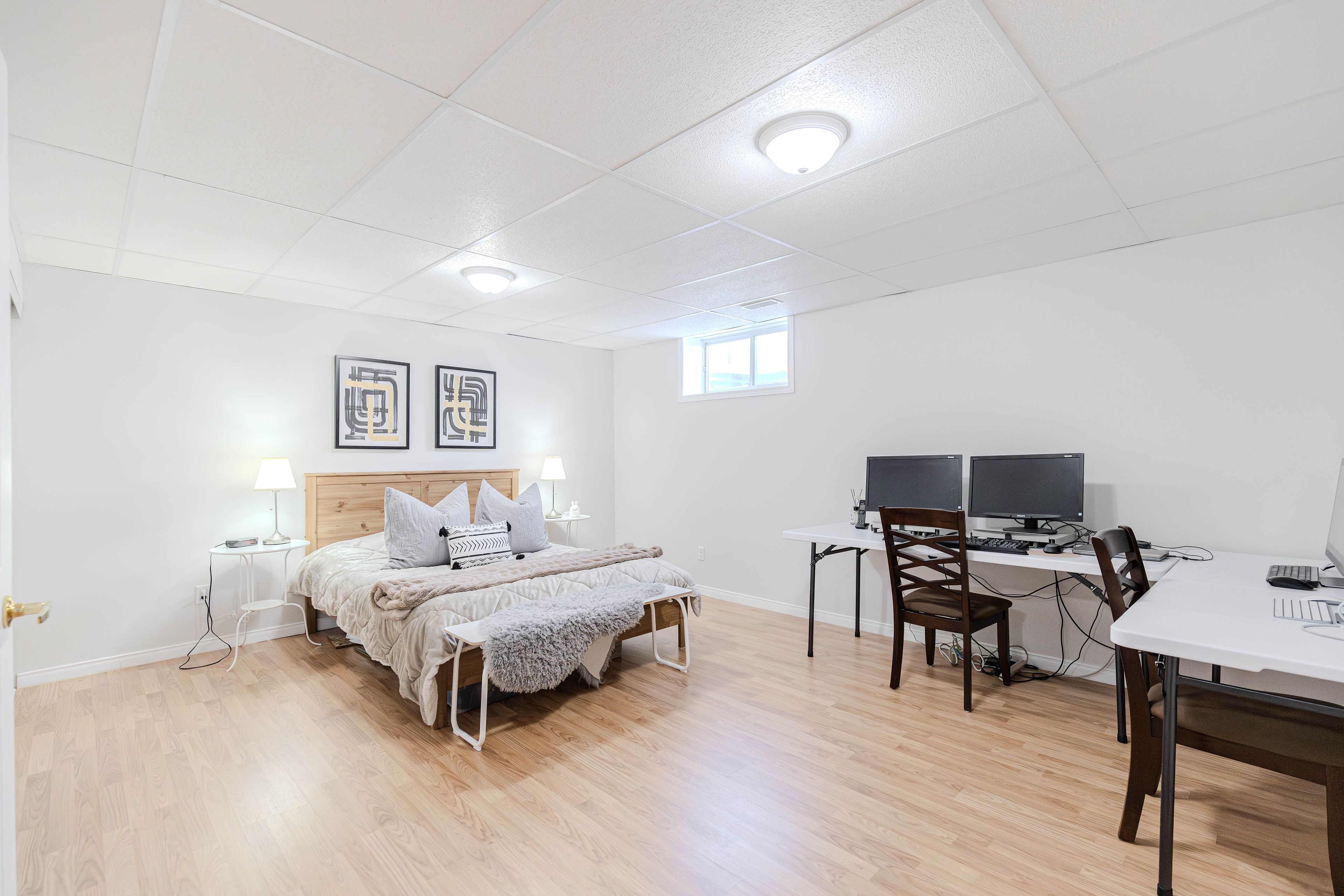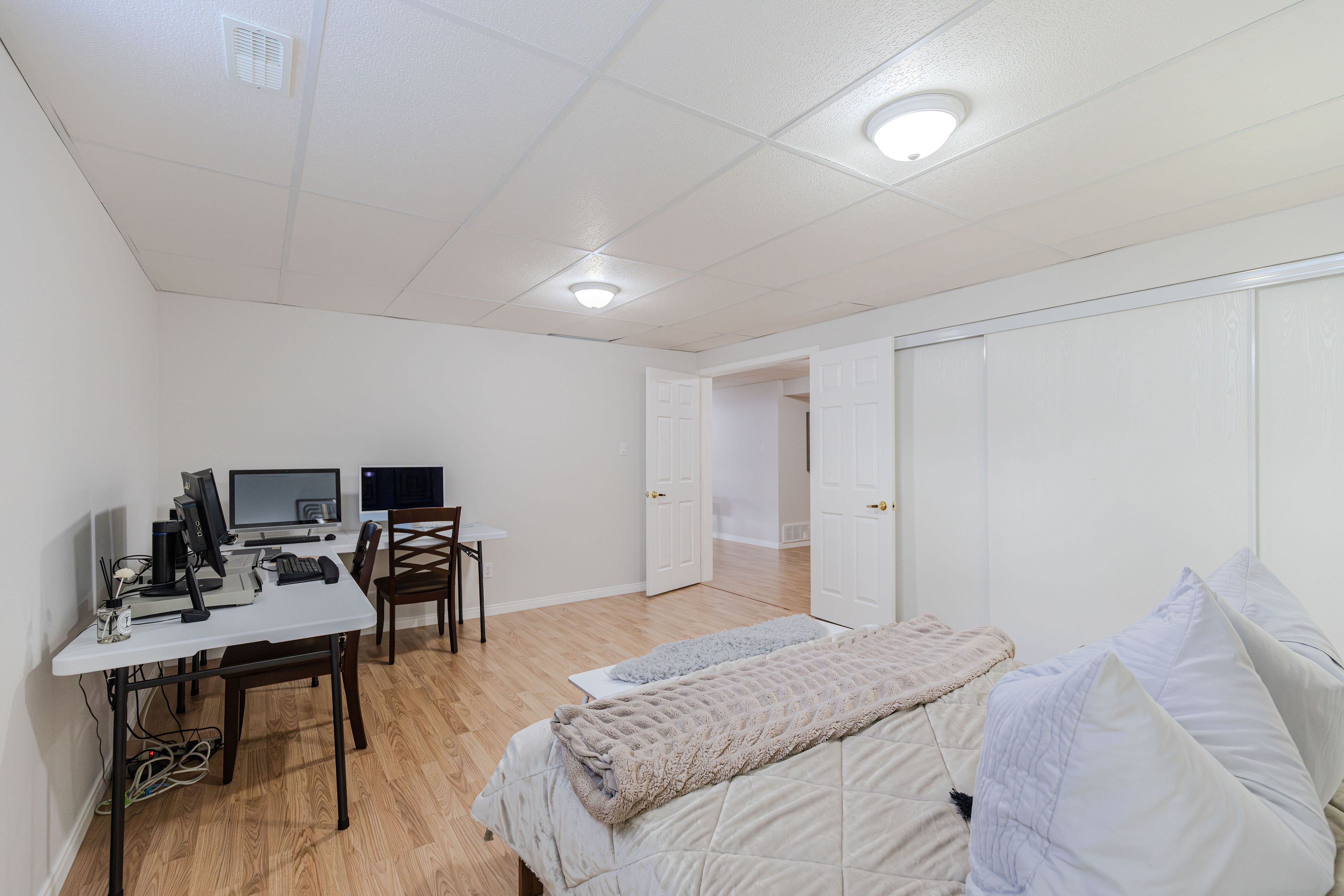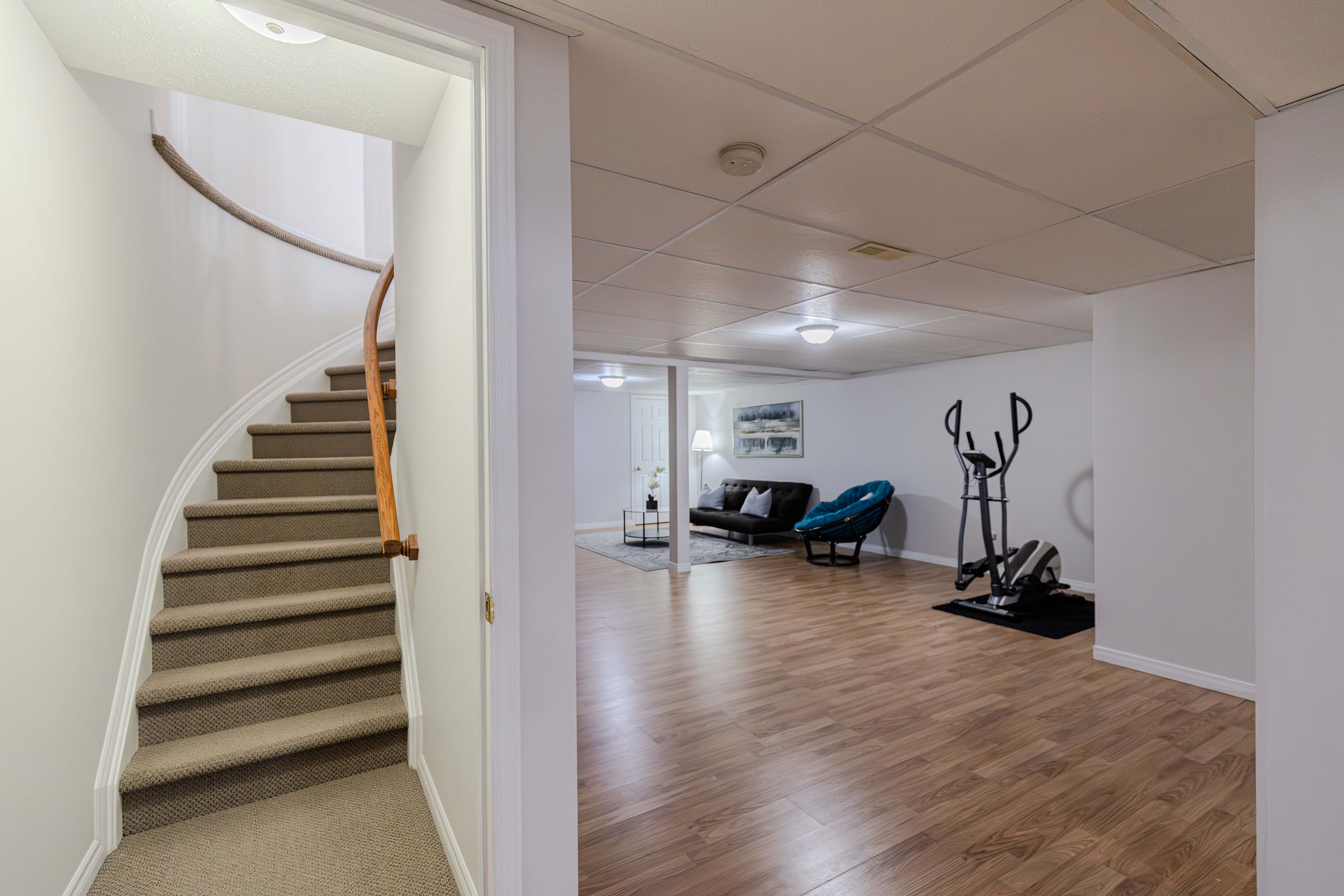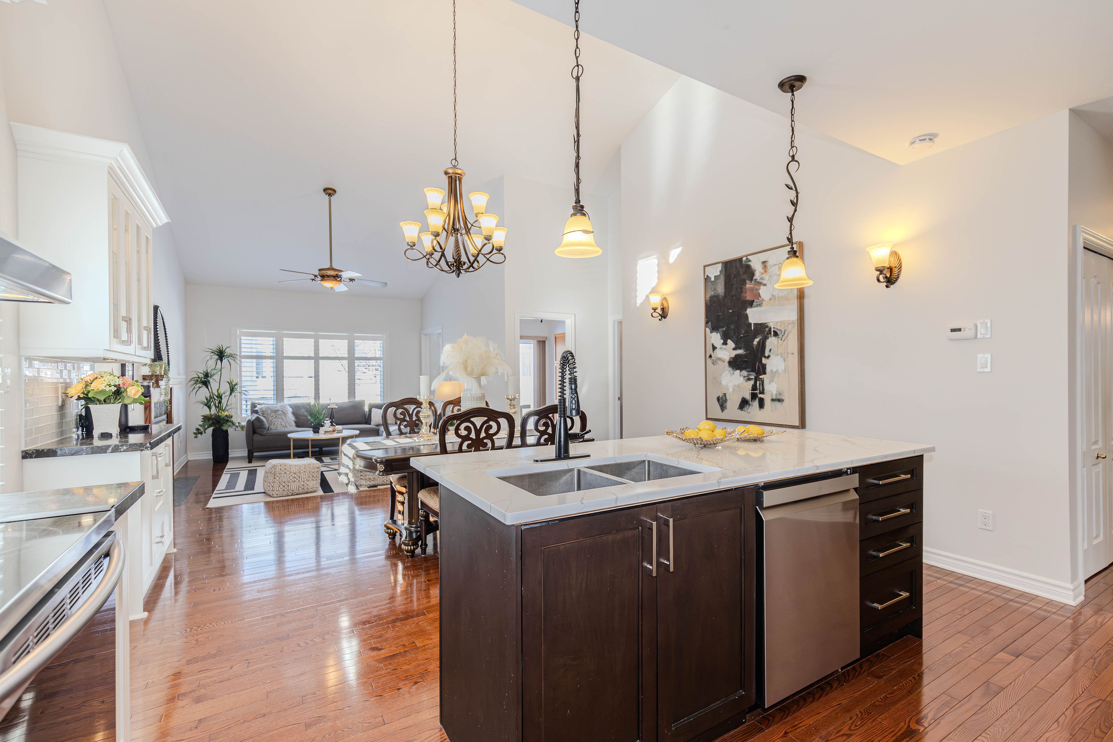 A rare found bunglow - 2386 sq. Ft. Above grade plus 1140 sq. Ft. Finished basement. It offers 4-bedroom, 4-bathroom with a double car garage, this move-in ready home located in a great location and has been freshly painted . The main floor features over 9-foot ceilings, hardwood flooring throughout, and a well-appointed open-concept layout. The renovated kitchen (2018) is both elegant and functional, highlighted by a quartz breakfast bar and a generous eating area that flows seamlessly into the spacious family room with a gas fireplace ideal for everyday living and entertaining. The combined living and dining rooms offer a polished, well-proportioned space suited for hosting and relaxation. The primary bedroom serves as a private retreat, complete with a ensuite and walk-in closet. Completing the main level are a generous second bedroom, a full bathroom, a sunlit home office, and a convenient mudroom/laundry room. Upstairs, the loft level feels like its own private floor and continues the hardwood flooring, offering a spacious bedroom, and a versatile open area perfect for a reading nook or a homework and tutoring space for children, with the flexibility to be easily converted into an additional enclosed room if desired. The fully finished basement provides outstanding versatility, featuring an oversized bedroom, a dedicated dance or studio space, a fitness area, a family media room, and abundant storage ready to be tailored to suit a variety of lifestyles. Outdoors, enjoy a fully fenced backyard offering privacy and functionality, complete with a patio and bbq area perfect for relaxed summer gatherings and casual outdoor enjoyment. Recent updates include: fresh paint throughout (2026), kitchen (2018), roof (2019), furnace (2021), hot water tank (2021), interlock driveway (2022), dishwasher (2022), and dryer (2022). An exceptional opportunity to own a distinctive bungalow th impressive living space and extensive updates-a must-see home.