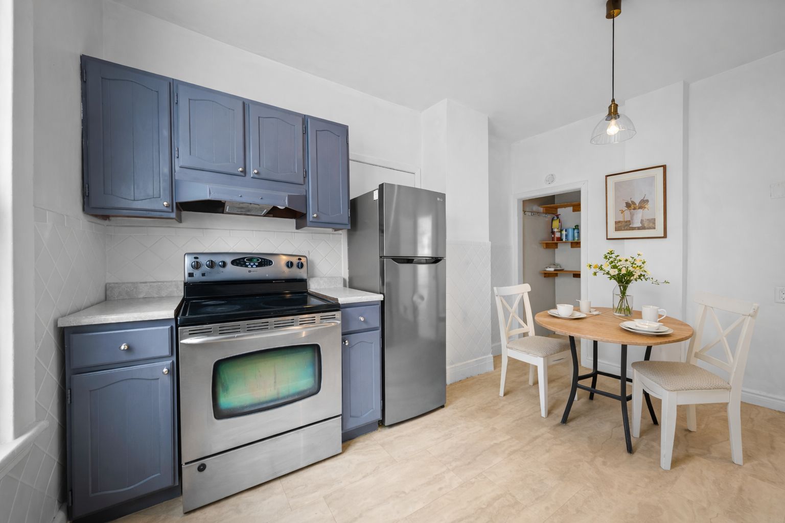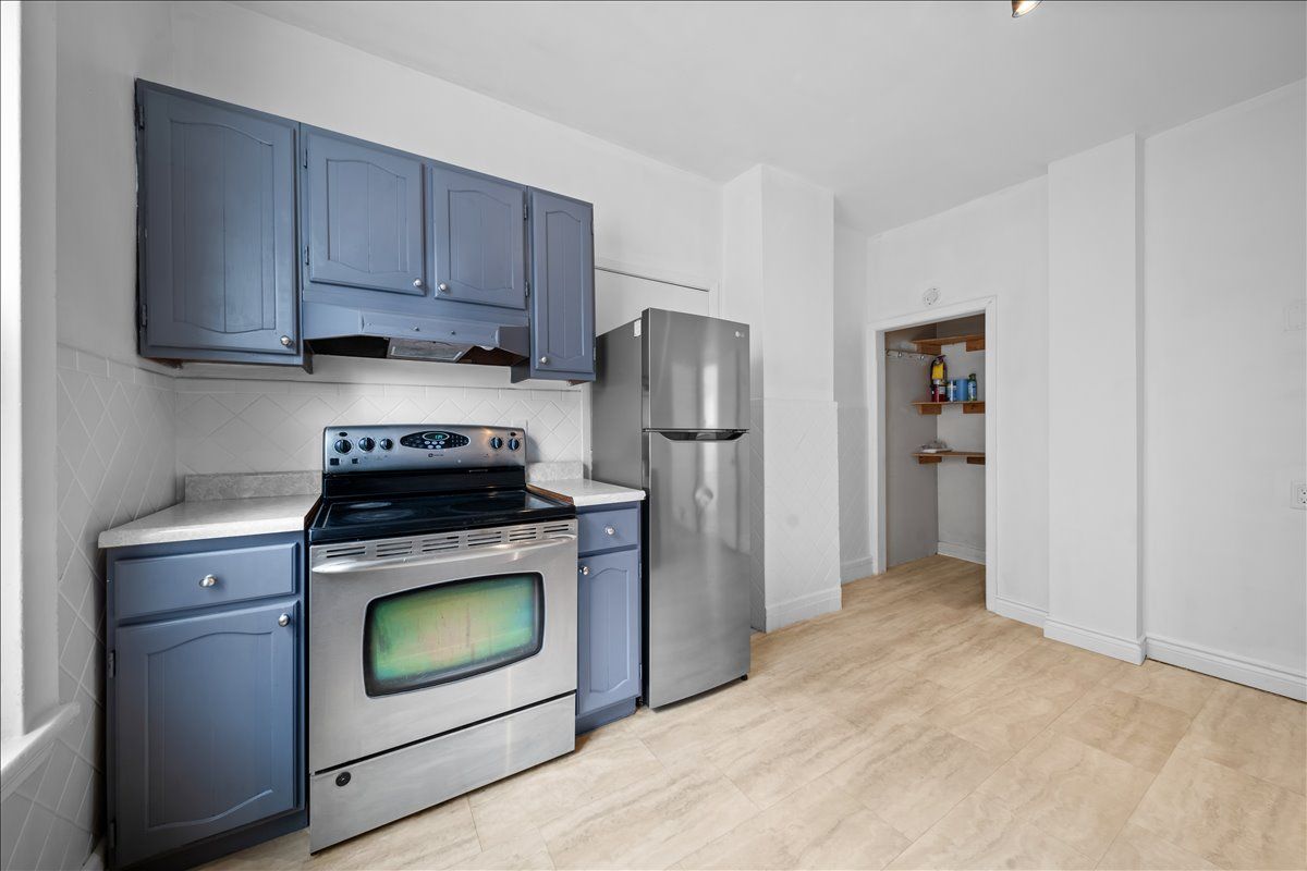• Eat-in kitchen with ample counter space and cabinetry.