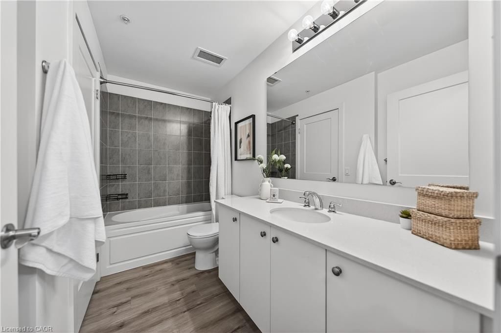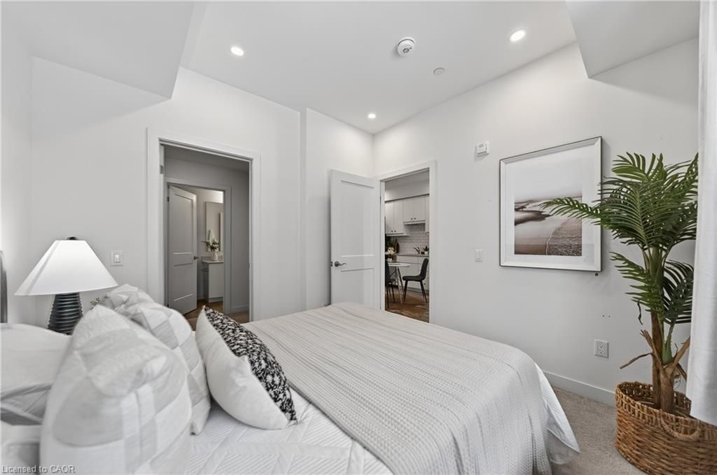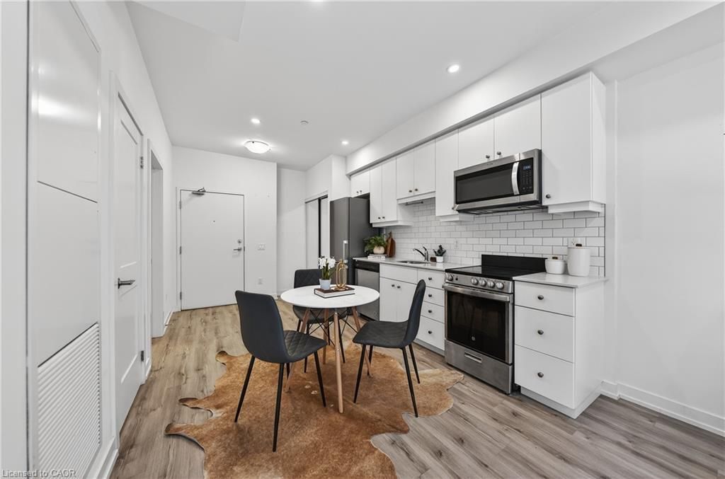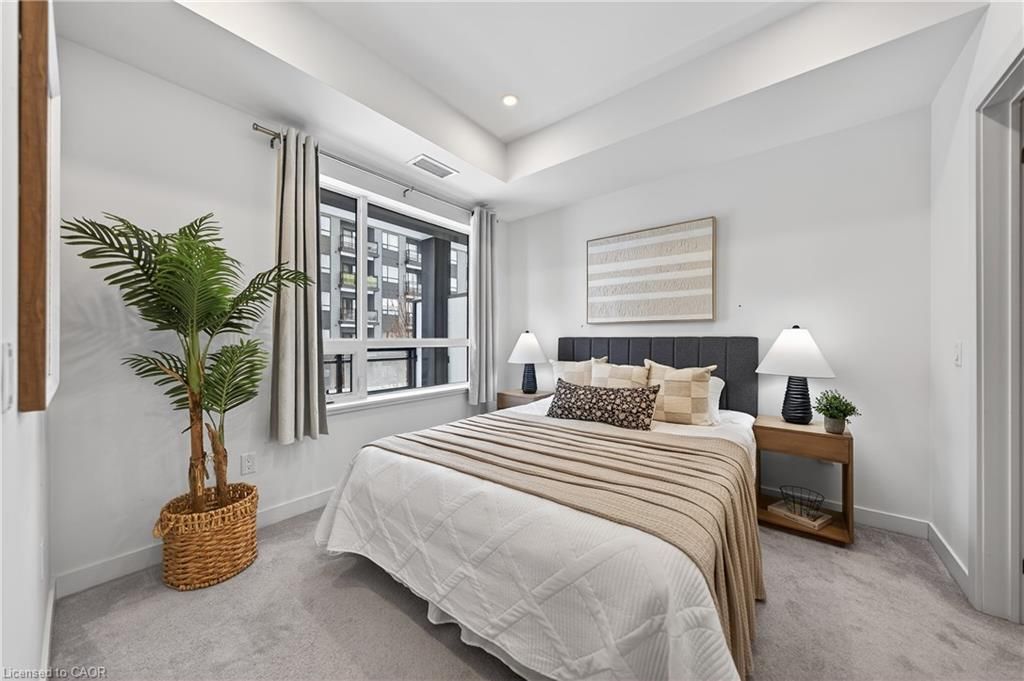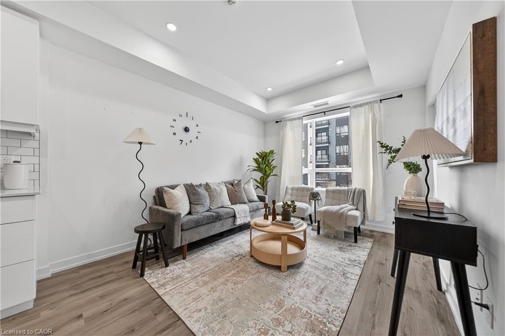 Available may 1st! Discover low-maintenance, modern living in the heart of waterloo. Unit 210at the blackstone is a bright, airy 1-bedroom, 1-bath condo offering 573 sq ft of comfortable space. Tall ceilings and built-in blinds enhance the open-concept layout. The kitchen is equipped with stainless steel appliances, durable stone countertops and a contemporary tile backsplash, flowing into the cozy living area with walkout to a private balcony - perfect for morning coffee or evening relaxation. The carpeted bedroom includes a roomy walk-in closet and the 4-piece bathroom is well-appointed. Practical conveniences include in-suite laundry, a storage locker and one underground parking space. The building elevates daily living with plentiful amenities: rooftop terrace with bbqs, exercise room, courtyard with bbq and firepit, party/study room, bike room and visitor parking. Ideally situated close to conestoga mall, grocery stores, restaurants (including browns socialhouse), st. Jacobs market, walking trails and public transit. Ideal for professionals or anyone seeking a well-located, amenity-rich rental in waterloo.