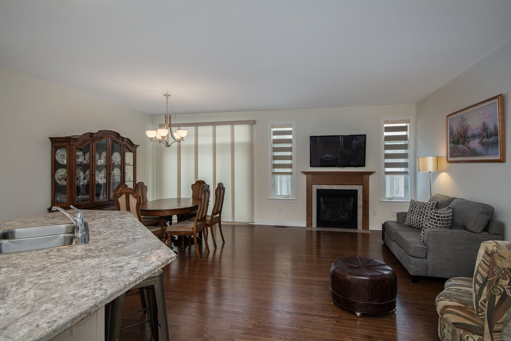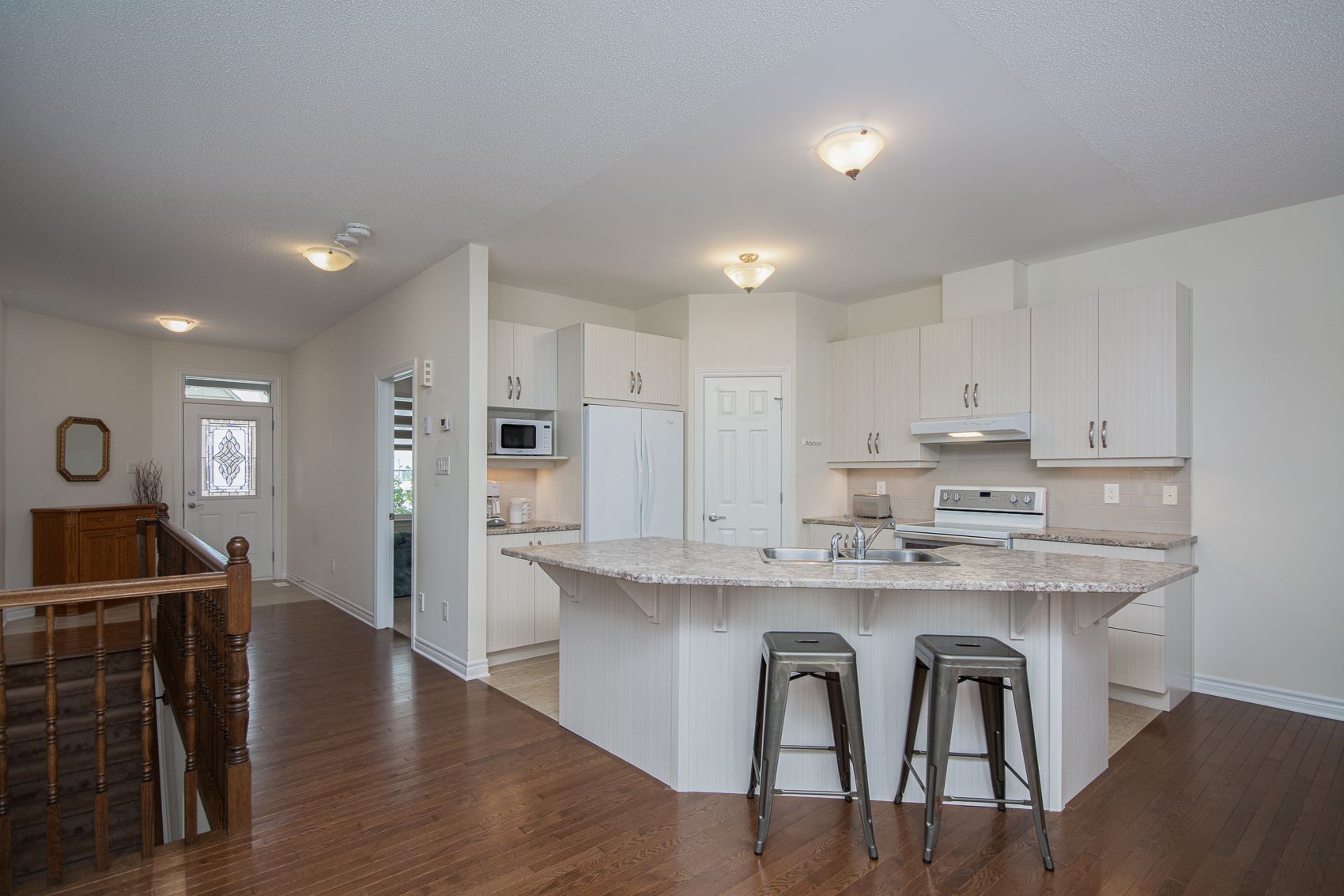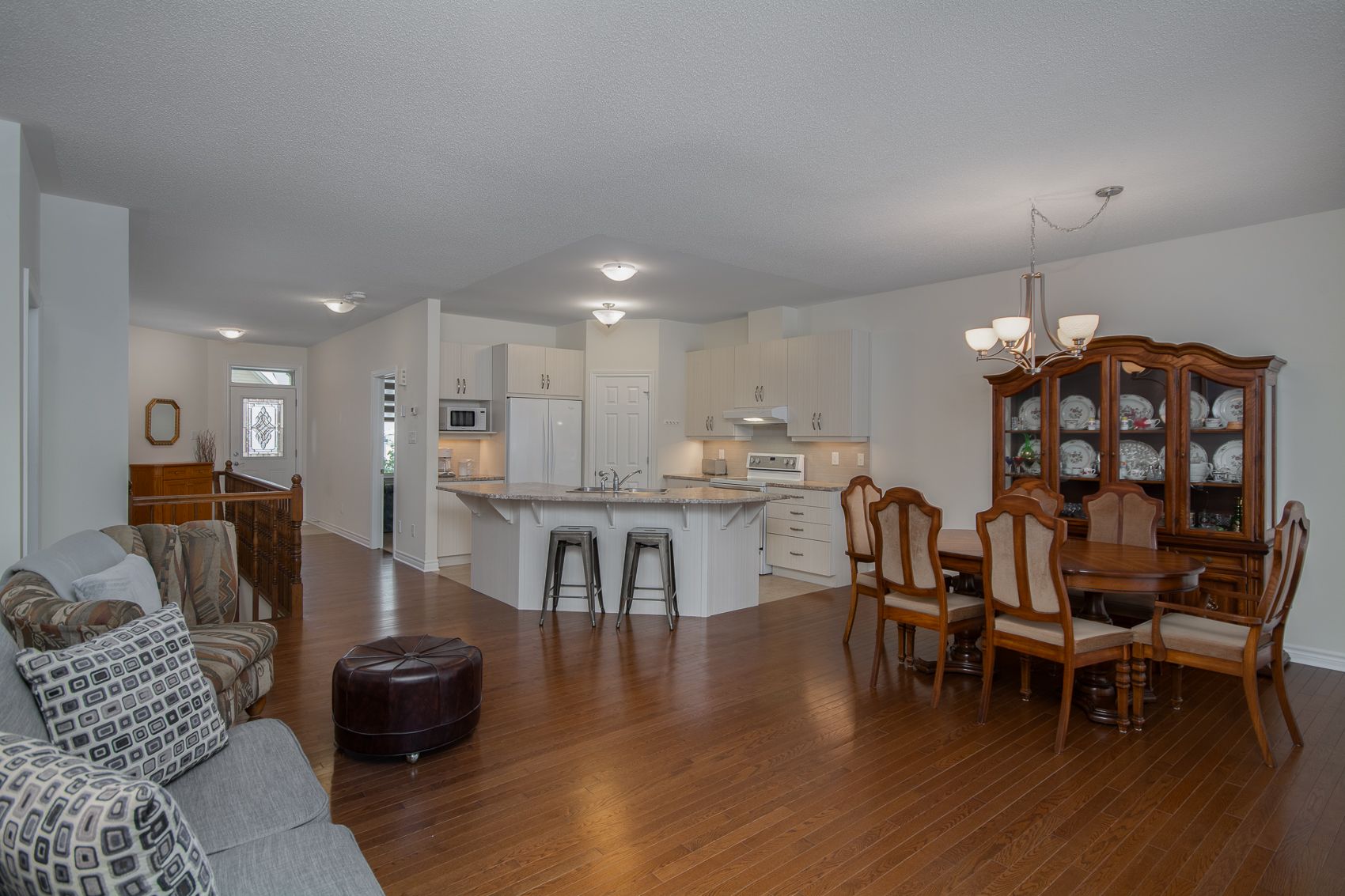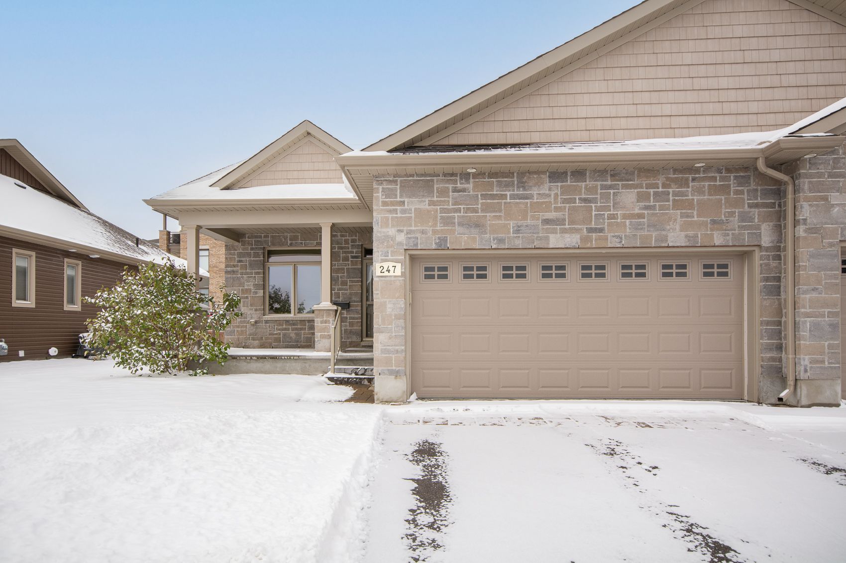 Welcome to 247 shinny avenue - a beautiful bungalow in emerald meadows, stittsville. This impeccably maintained bungalow offers exceptional main-floor living in the highly sought-after emerald meadows community. Designed with comfort, style, and convenience in mind, this home features a bright, open layout and thoughtful updates throughout. Step inside to a spacious foyer that opens into an inviting living and dining area filled with natural light. The modern kitchen offers clean white appliances, ample cabinetry, and a functional layout perfect for cooking and entertaining. The adjoining family room includes large windows and a warm, welcoming atmosphere-ideal for relaxing at the end of the day. The main floor also features a generously sized primary bedroom with a walk in closet, along with an additional bedroom that provides flexibility for guests, a home office, or hobbies. A well-appointed full bathroom completes the main level. The professionally finished lower level expands the home to over 2,000 square feet of living space, featuring a large recreation room, a full bathroom, a third bedroom, and plenty of storage. Perfect for entertaining, working out at home, or creating the ultimate media retreat. Outside, enjoy a beautifully landscaped lot with a backyard, ideal for outdoor dining, gardening, or simply unwinding. An attached garage and expanded driveway offer convenient parking. Located just minutes from parks, walking paths, schools, transit, and all of stittsville's amenities, 247 shinny avenue delivers an exceptional lifestyle in one of ottawa's most desirable neighbourhoods. A rare bungalow opportunity in emerald meadows-book your private showing today! Chattels included: 50', 65' lcd tvs and standup freezer.
