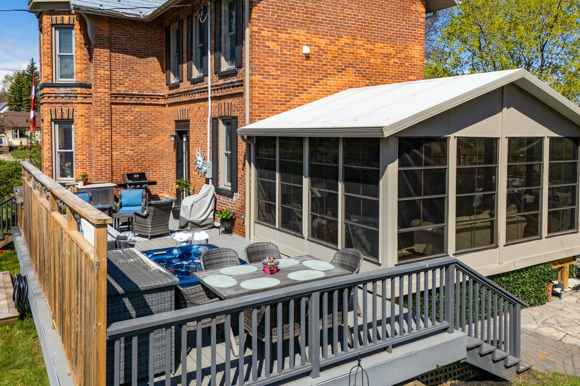 Beautiful brick home with coach house in meaford - over 3,800 sq ft of living space! This stunning brick home in the heart of meaford offers the perfect blend of character, space, and versatility. With over 3,800 sq ft of total living space, including a 1,600 sq ft coach house, this property is ideal for families or multi-generational living. The main home features 3 bedrooms, 2 bathrooms, spacious principal rooms, a bright well planned kitchen, and warm, inviting living areas. Enjoy the private backyard oasis complete with a hot tub, perfect for entertaining or relaxing after a day on the trails. The fully detached coach house includes an additional 3 bedrooms and 2 bathrooms, offering a private space for guests and family. With its own entrance and complete amenities, it adds options and flexibility to suit your lifestyle. Located within walking distance to downtown shops and restaurants, the harbour, and meaford's scenic waterfront! Enjoy nearby trails, golf courses, skiing, and recreation - right at your doorstep. Live the southern georgian bay lifestyle with space to relax, room to grow, and a vibrant community at your doorstep, where small-town charm meets year-round adventure in meaford!