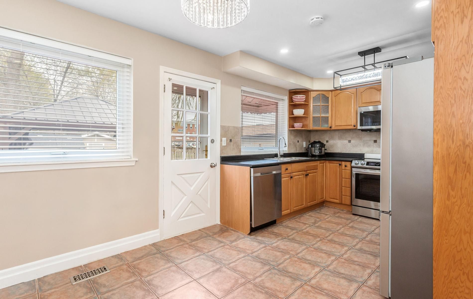• Bright main level with a sun-filled living area and eat-in kitchen.