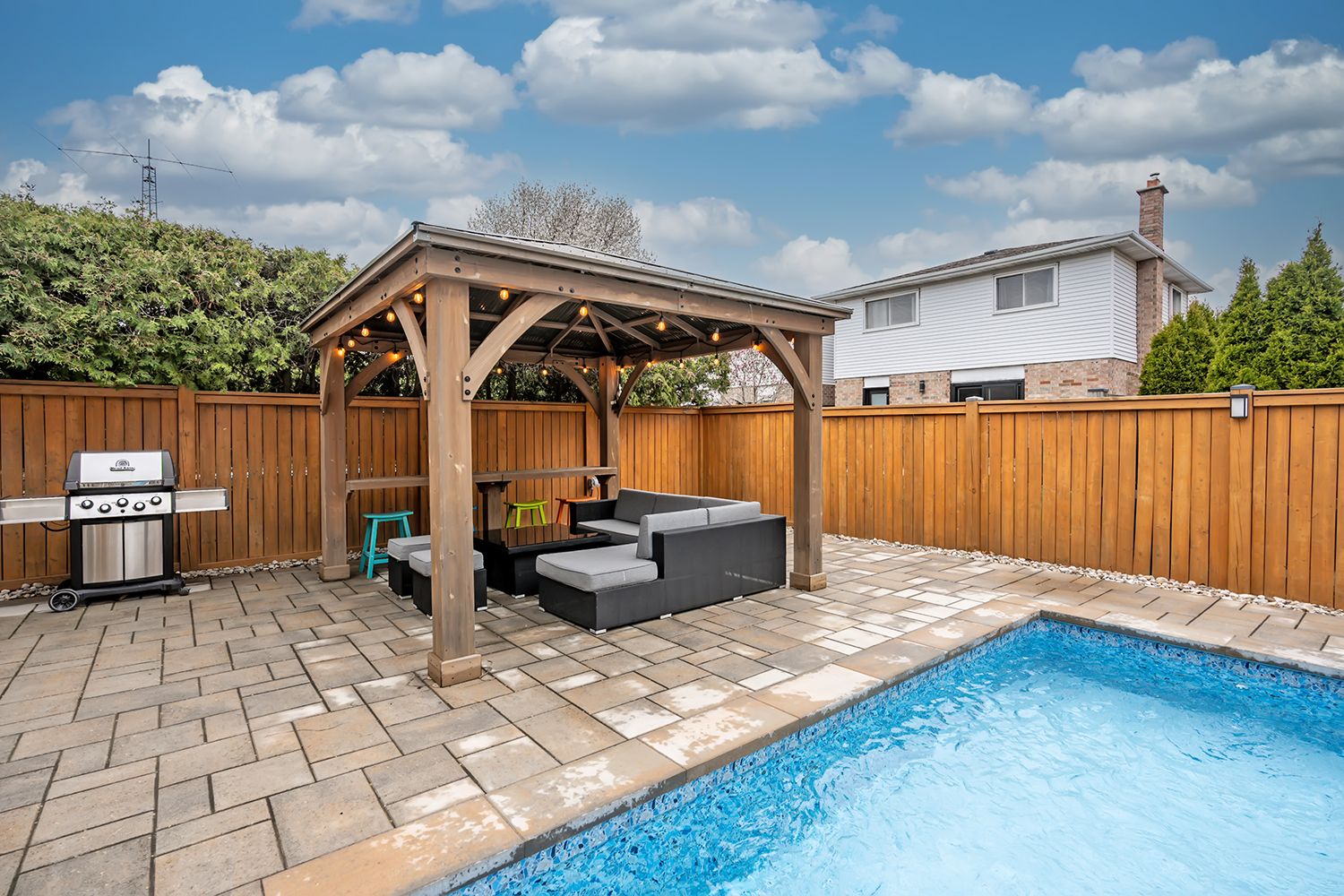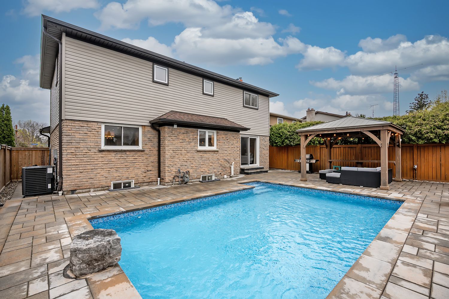 Beautiful family home with backyard oasisthis fully updated 4+1 bedroom, 3. 5 bathroom home offers over 3,000 sqft of finished living space and is located in sought-after brant hills, a quiet, family-friendly neighbourhood known for its parks, schools, and strong sense of community. The bright and spacious main level features a functional layout with an updated kitchen complete with white cabinetry, stainless steel appliances, quartz countertops, and a large island that seamlessly flows into the formal living and dining areas. The welcoming family room features a fireplace and patio doors leading to the private, fully fenced backyard oasis with heated inground saltwater pool, expansive interlock patio, and covered gazebo with seating and bar area, designed for outdoor living. The main level also offers a powder room and laundry room with convenient access to the double car garage. Upstairs you'll find a generously sized primary retreat with walk-in closet and a beautifully updated spa inspired ensuite featuring a double vanity and glass shower, along with 3 additional well-sized bedrooms and a 4pc bathroom. The finished basement is a standout, offering a full home theatre setup with projector and screen, custom bar area, additional bedroom, full bathroom, and flexible space for a home office, gym or growing family needs. With a double car garage, ample parking and a location close to parks, and everyday amenities, this is a complete move-in ready home in one of burlington's most established communities.