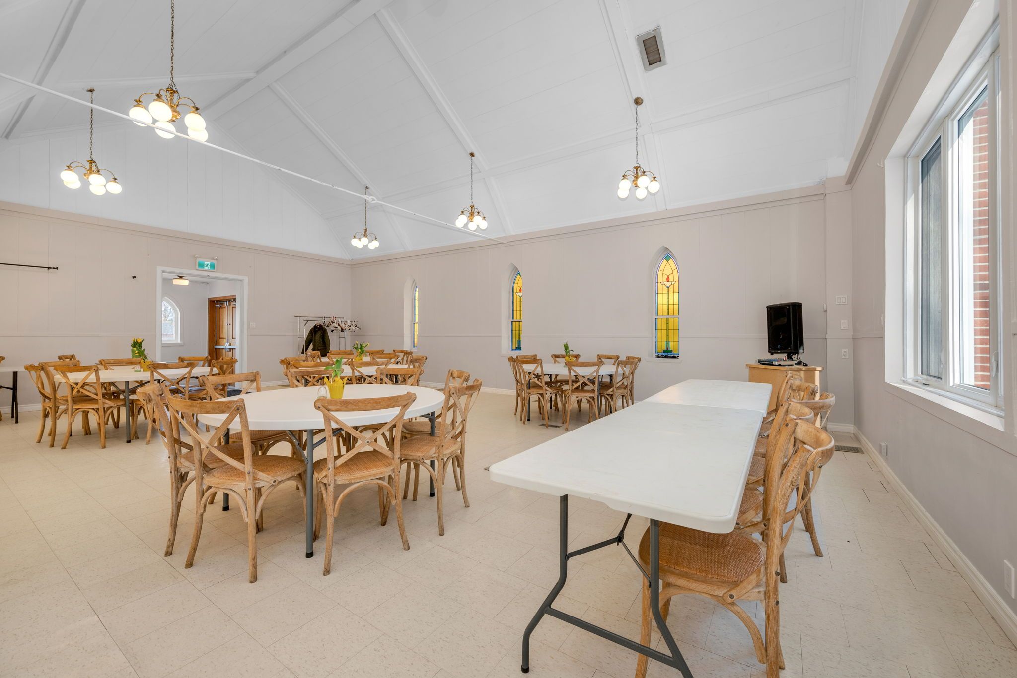 Welcome to this impressive piece of history that dates back to 1867! Currently being operated as the an event center. (business not for sale-see separate listing ). This building is for sale and offers someone many unique opportunities to run a business or a place of worship with the current zoning. For many years it was a church however the beautiful space is a great opportunity to convert to a residence with a minor variance or use as an event space etc. This serene space is soft with the glow of the stain glass windows that flank the main floor. Soaring cathedral ceilings add to the angelic aura, while the lower level impresses with a kitchen, office area, washrooms and a dressing room. Exquisite light fixtures hang in the main hall, all on dimmers, allowing the space to be set for all occasions. Perfect for a place of worship, event space for music recitals, weddings, parties, meetings, xmas office events and more. Nestled next to a stunning wall of rock and greenery makes for an idyllic exterior celebration area, and a gorgeous back drop for those flawless photos. There are two patios, on either side, one facing west, the other east. The church had an extensive renovation in 2018, and has a waterproofed foundation, metal roof, new washrooms, handicap accessible ramp: basement and washroom, new kitchen space in lover lever for catering, newer fencing, newer patios, newer windows and more. 25 minutes from downtown ottawa, this is a destination worth visiting! Parking is available on both sides of the street with no restrictions( never been an issue for the current event planning business occupying the space now). See attachments for allowable uses or call listing agents. 24 hours on all offers.